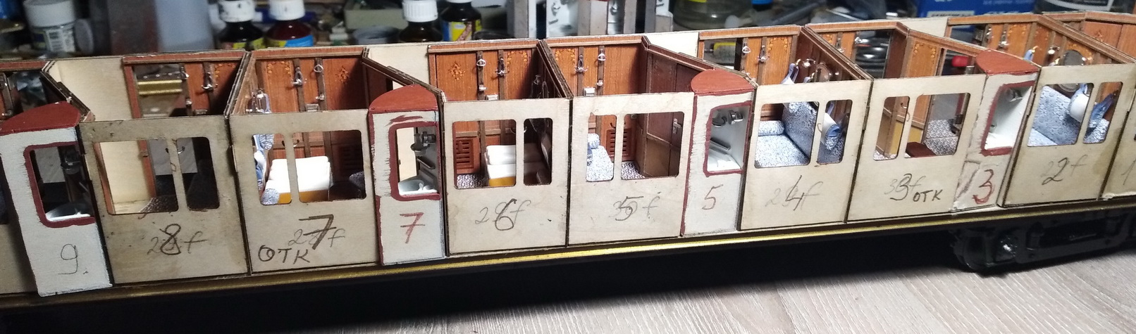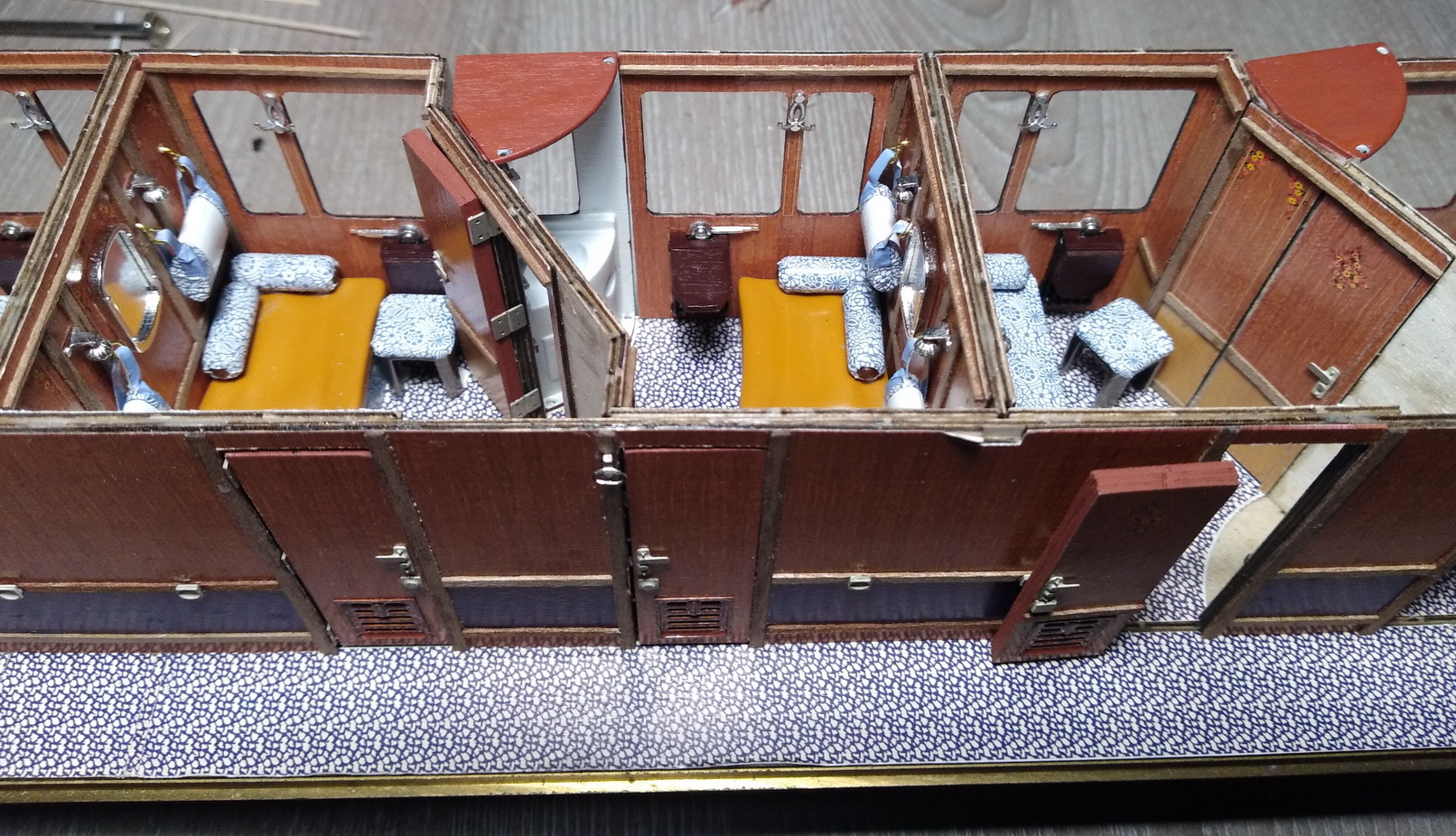 Ну и несколько фото купе на данный момент. Умывальники ещё не приклеены.