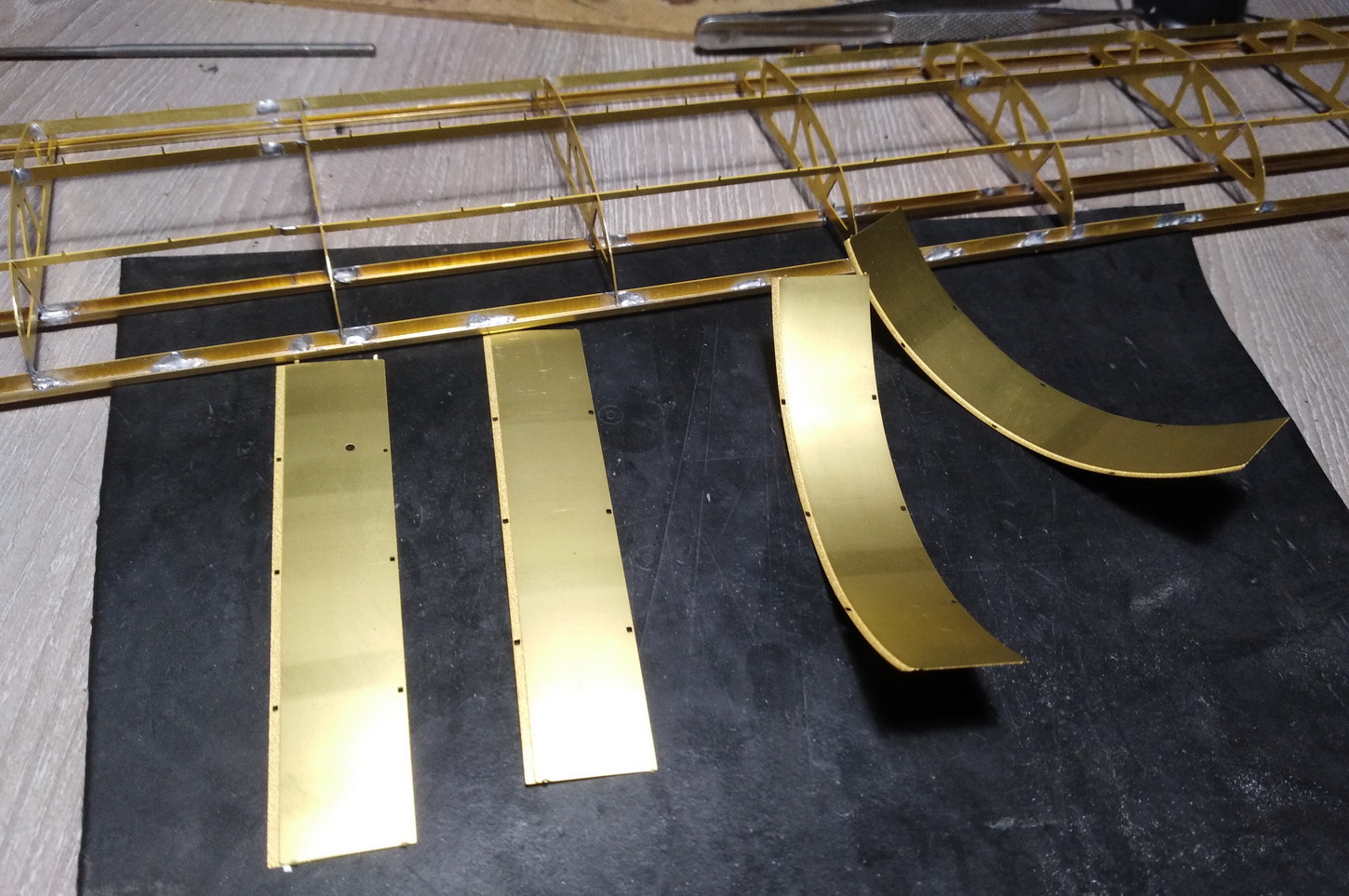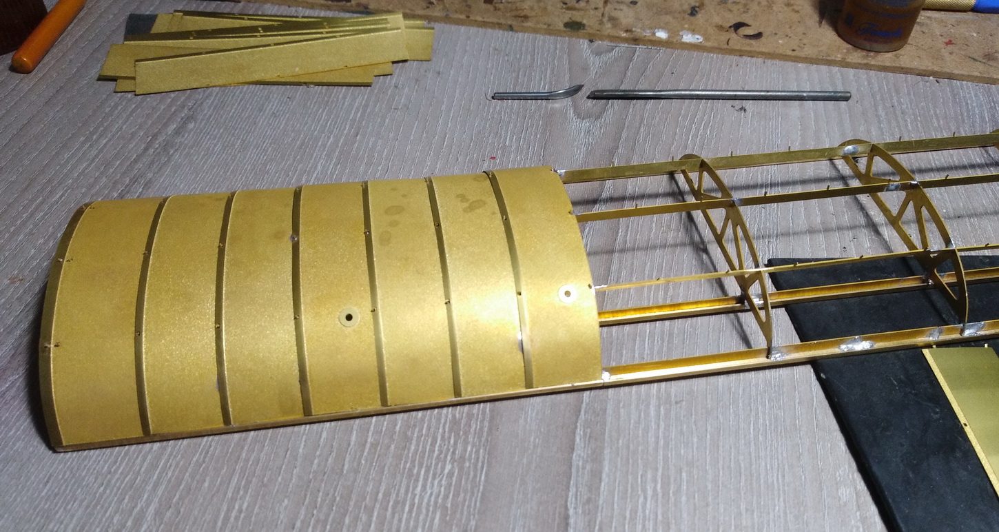 Продолжу. Начал собирать крышу. Сначала рама, примерка на вагон, потом обшивка. Всё на пайку, щели между листами обшивки проливал супером. Далее вентиляция на клей, грунтовка и покраска.