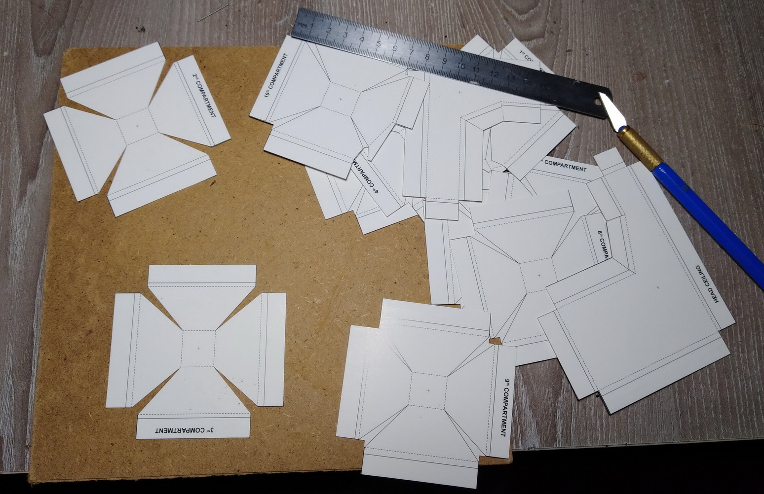 Багажные полки купе, таблички на раму вагона (заготовки).