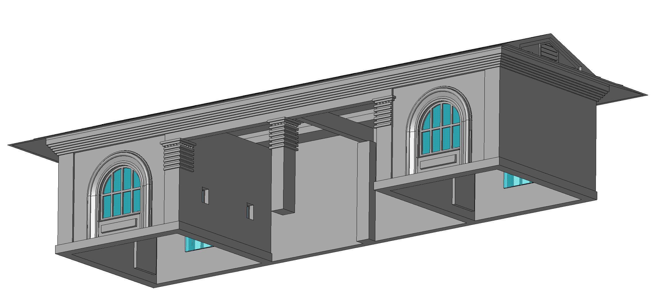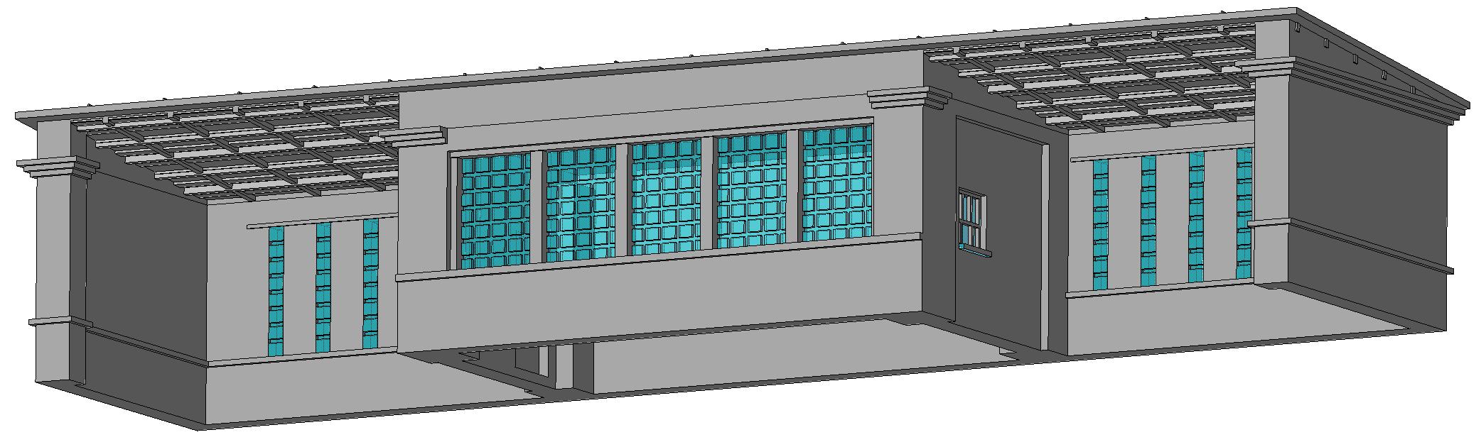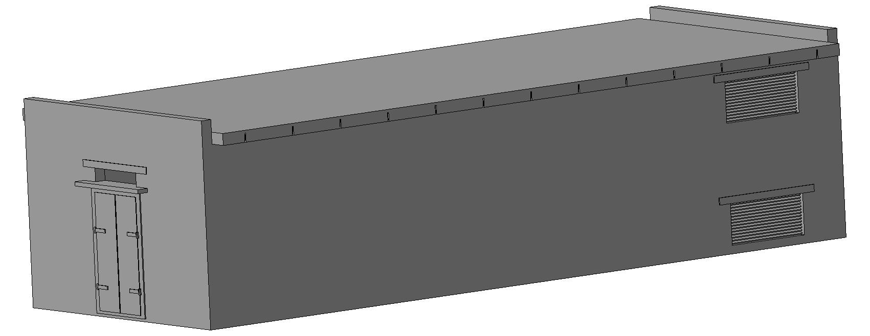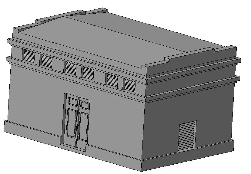 Здание возводилось из рядового белого кирпича, конструкция крыши - плоская односкатная из типовых плит перекрытия.Гидроизоляция крыши из мягких материалов - рубероид. Размеры:137,35ммХ54,00ммХ35,00мм