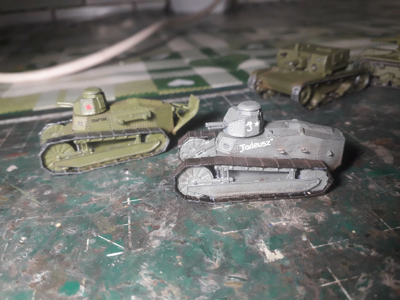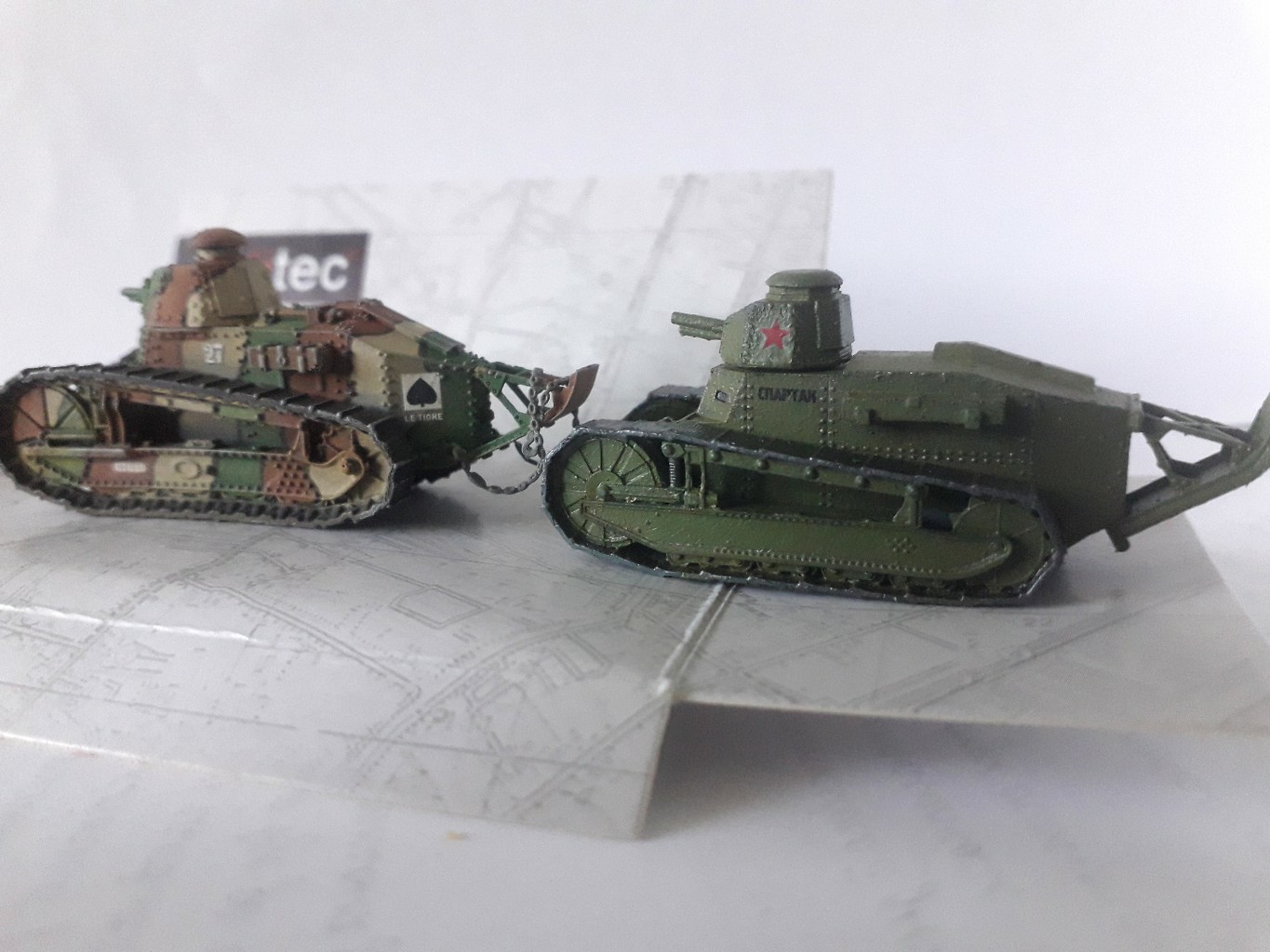 Всем доброго дня. Мои пять копеек. Виленовские Ft 17 в виде по мотивных первых советских Рено и республиканского танка с польским экипажем. Вдали зд печатные АТ 1 и ранний Т 26