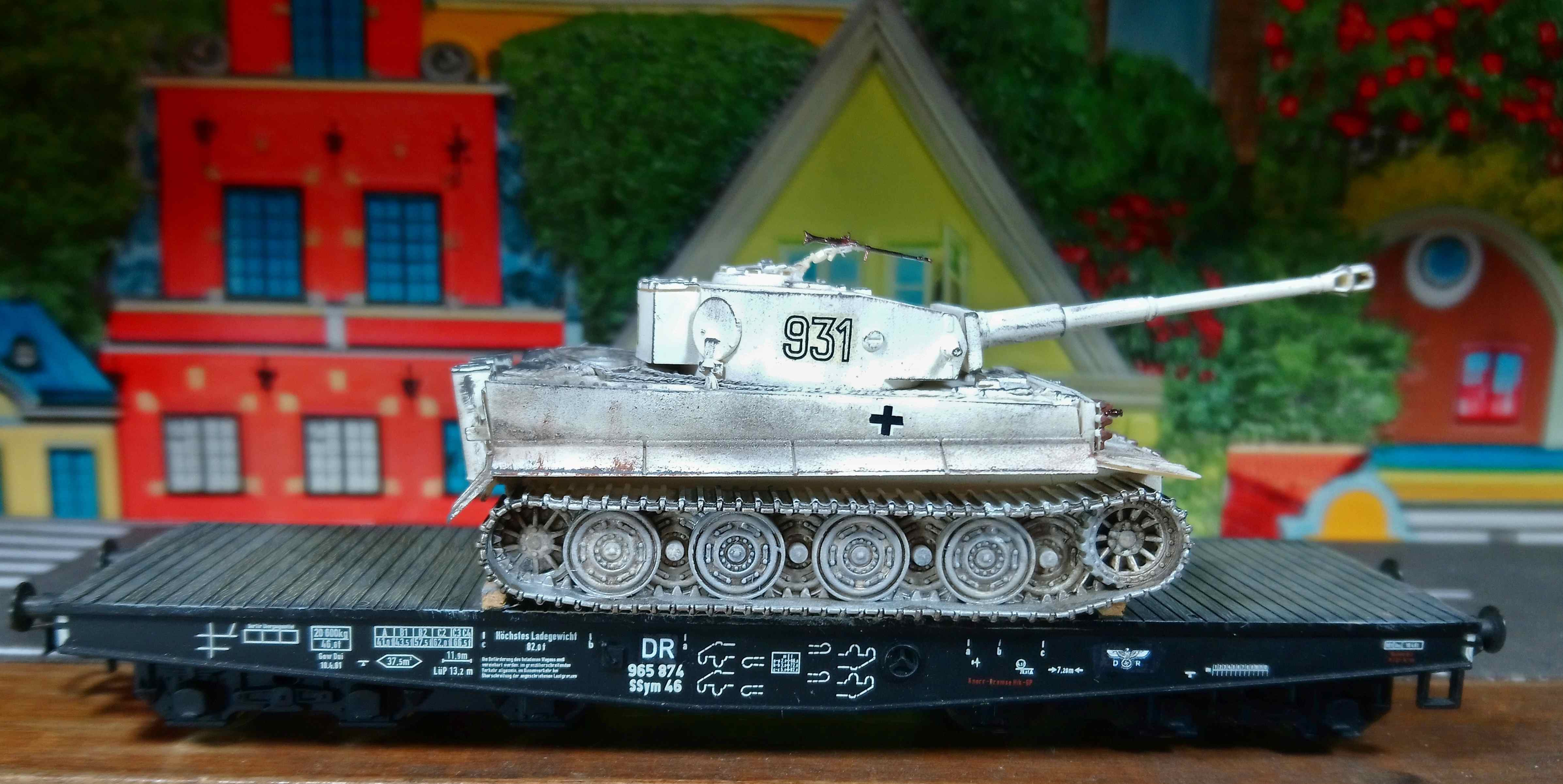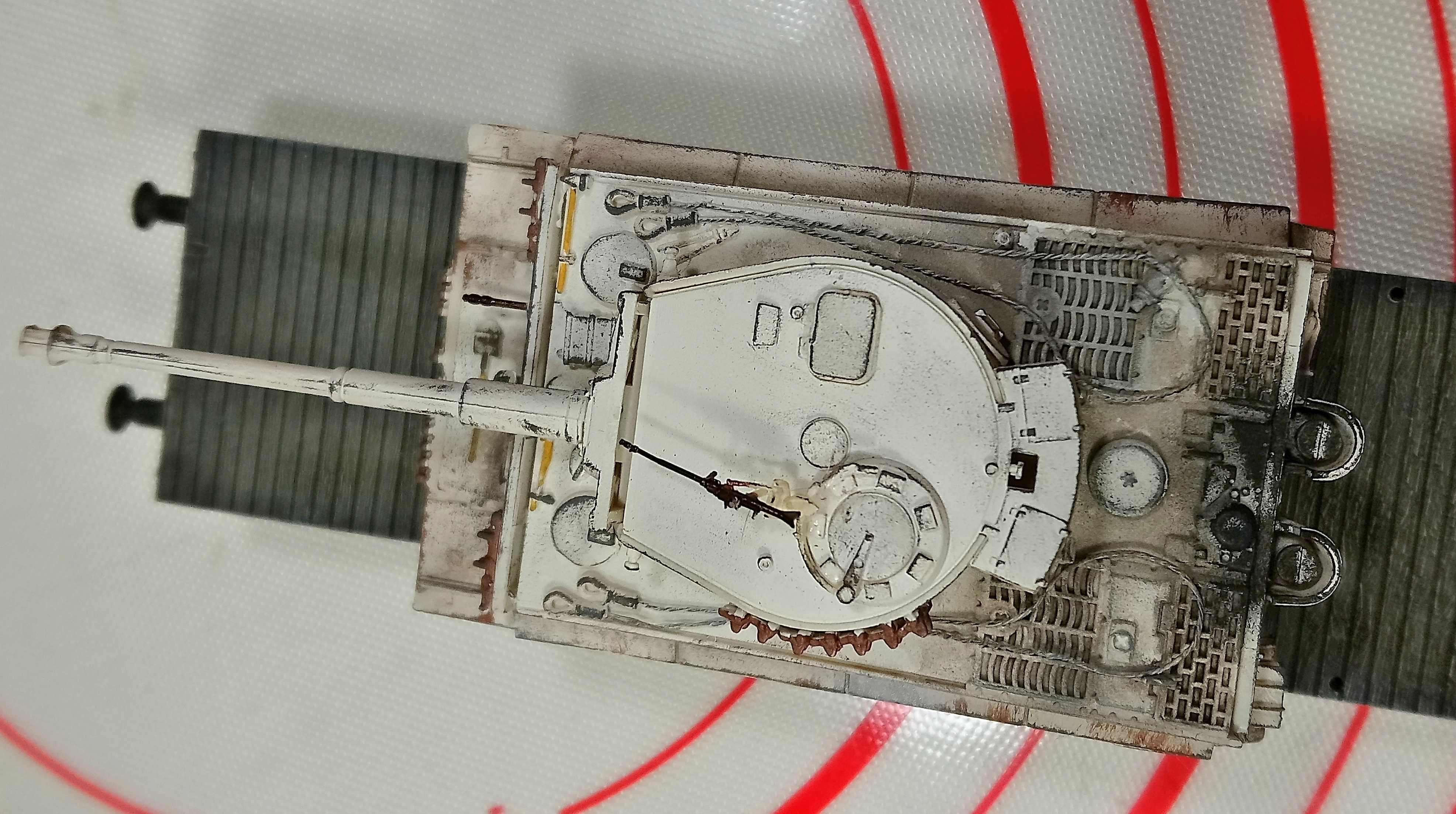 Ранний тигр с боевыми повреждениями и потерями обвеса.Отсутствует ящик на башне,один каток
