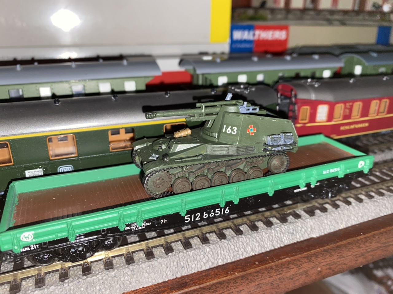 Таки да,есть начинания по составу с техникой.Воть.Вагон Роко,техника уже людская,Роко-минитанкс. Единственный ньюанс безжизненные цвета и предательски желтая техника.Исправил.