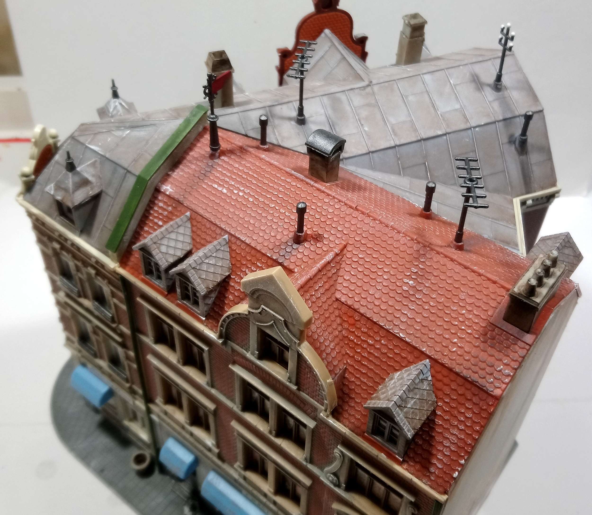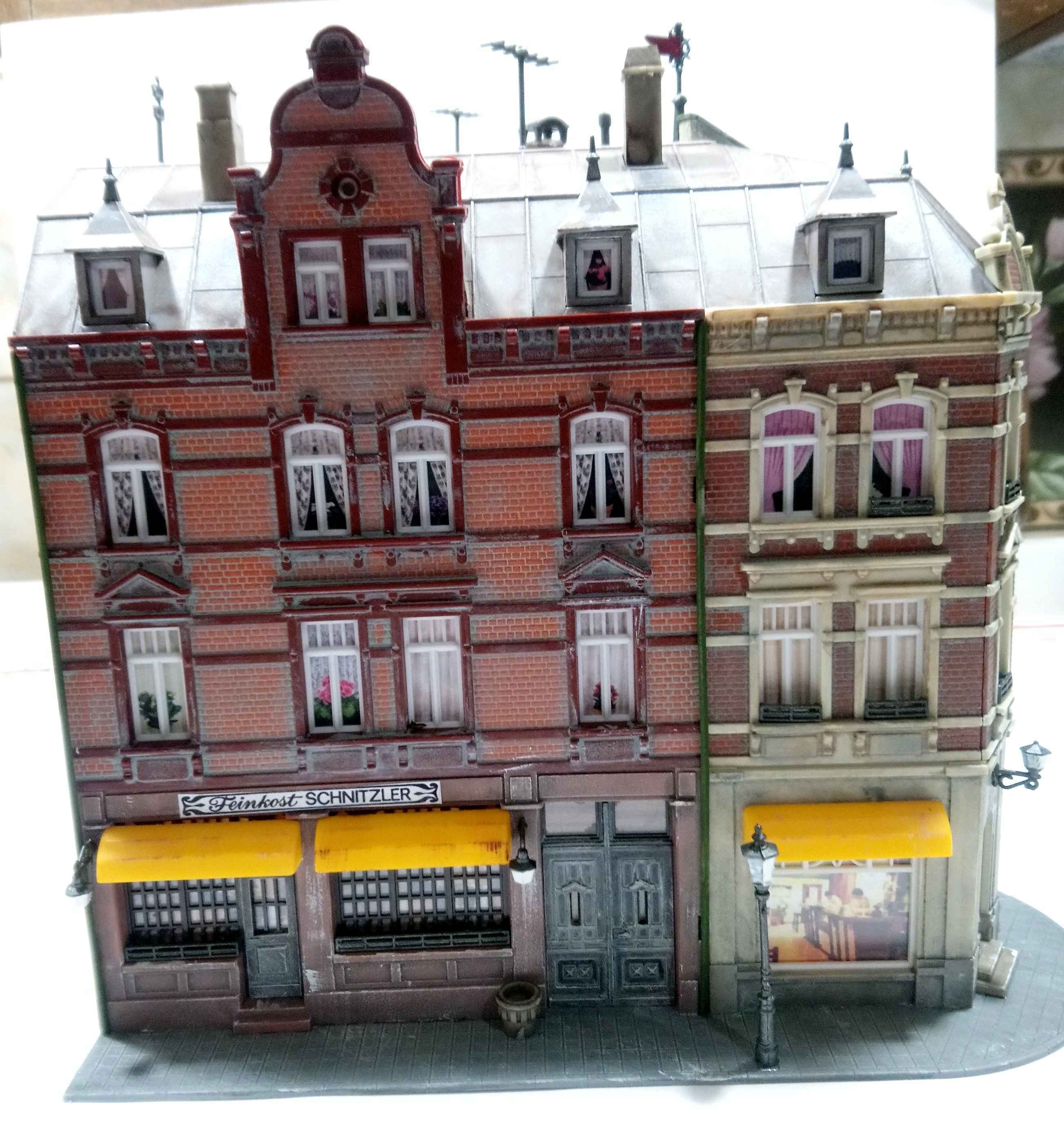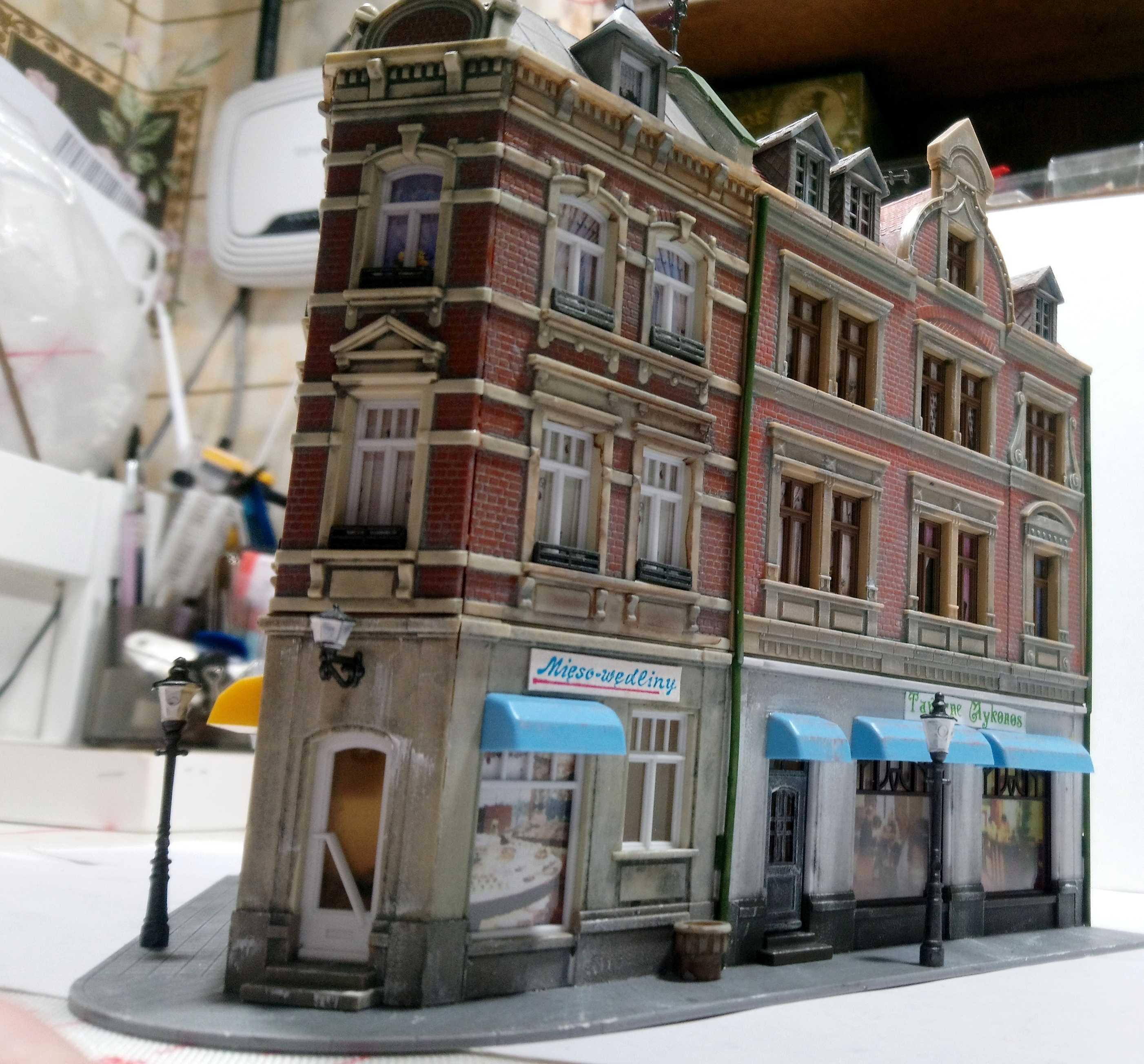 Пришлось местами проклеивать.После высеринга и сборки результат получился таким. Реально шикарная немецкая архитектура!Эффектное, крупное здание.Самое большое на макете.
