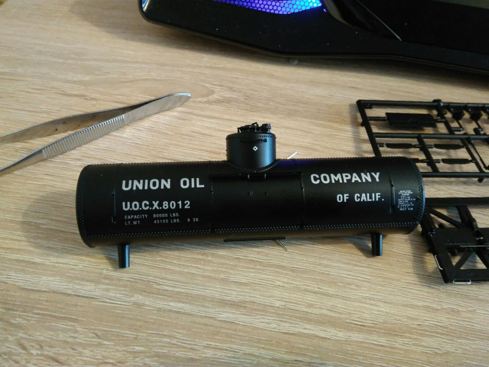 Есть у меня немного американских моделей, причём много китов но собранных увы не мною. Довольно редки они в наших краях. Но таки пару я купил. В данном случае модель цистерны фирмы Proto.