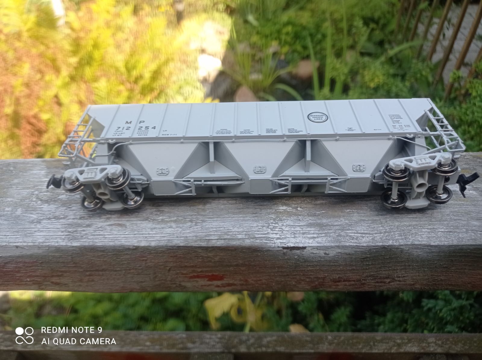 Также из хлама в порыве страсти собрал пару вагонов, не претендующих на что либо но мне понравившихся. Особенно жалко, не комплект по вагону с силуминовым дном. Облоя было многовато но это модели 60х годов выпуска и заслуживающие уважения с точки зрения изготовителей. Детали прекрасно ходят, особенно двери. Телеги поставил не родные. Родные должны были быть подпружинены. А накладные должны были быть впечатляющими. Я видел несколько таких вагонов собранных более мастеравитыми американцами. Но пока так. Может где и попадутся родные детали.