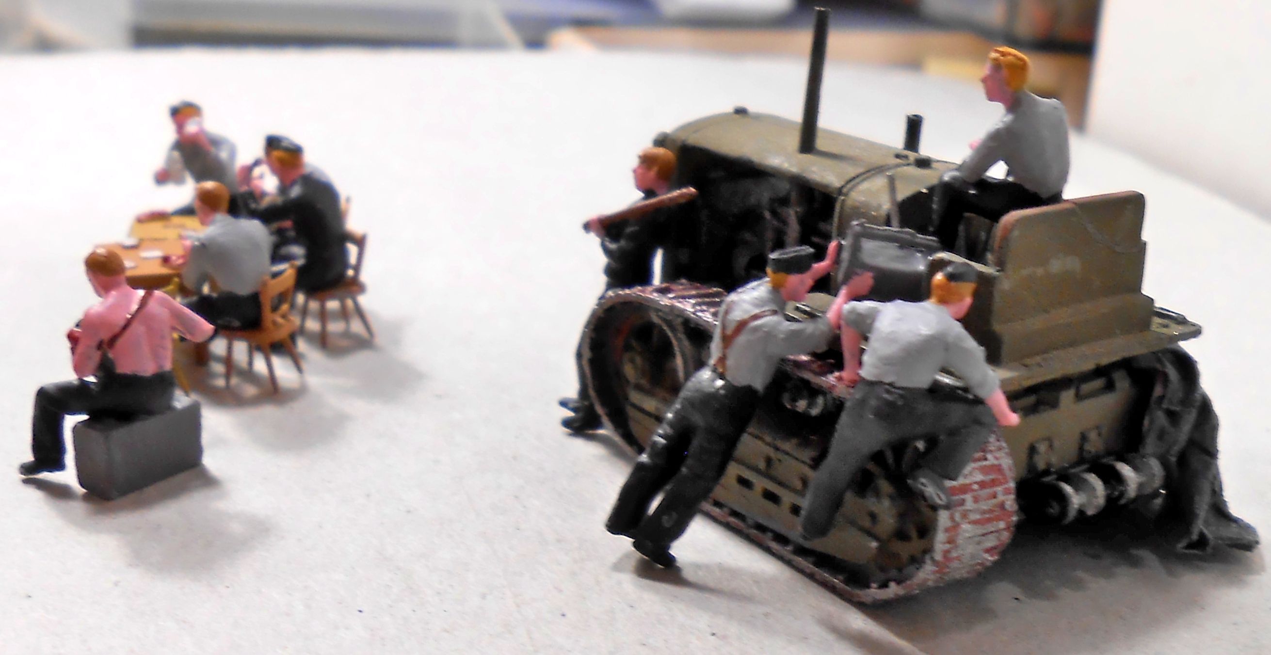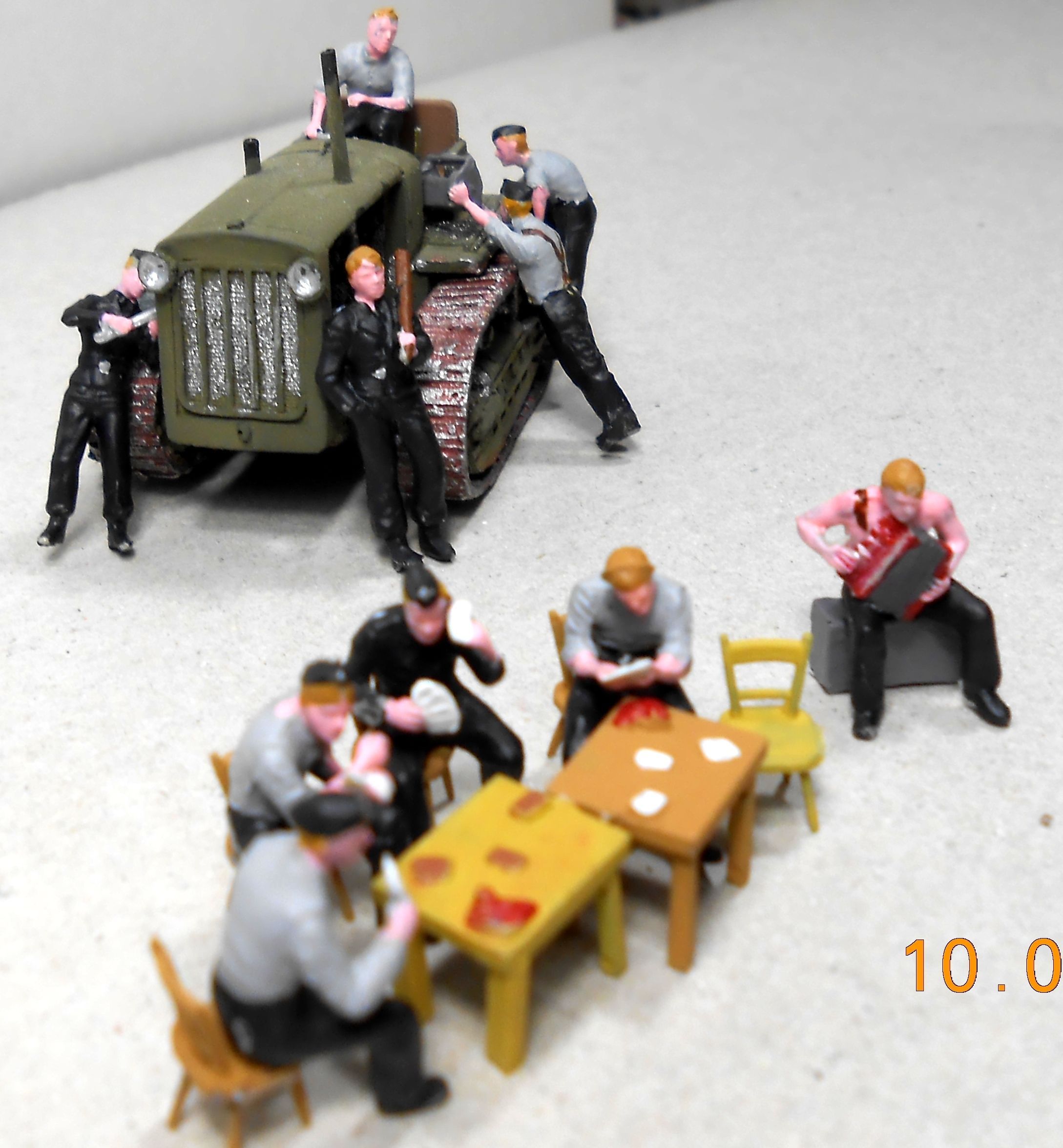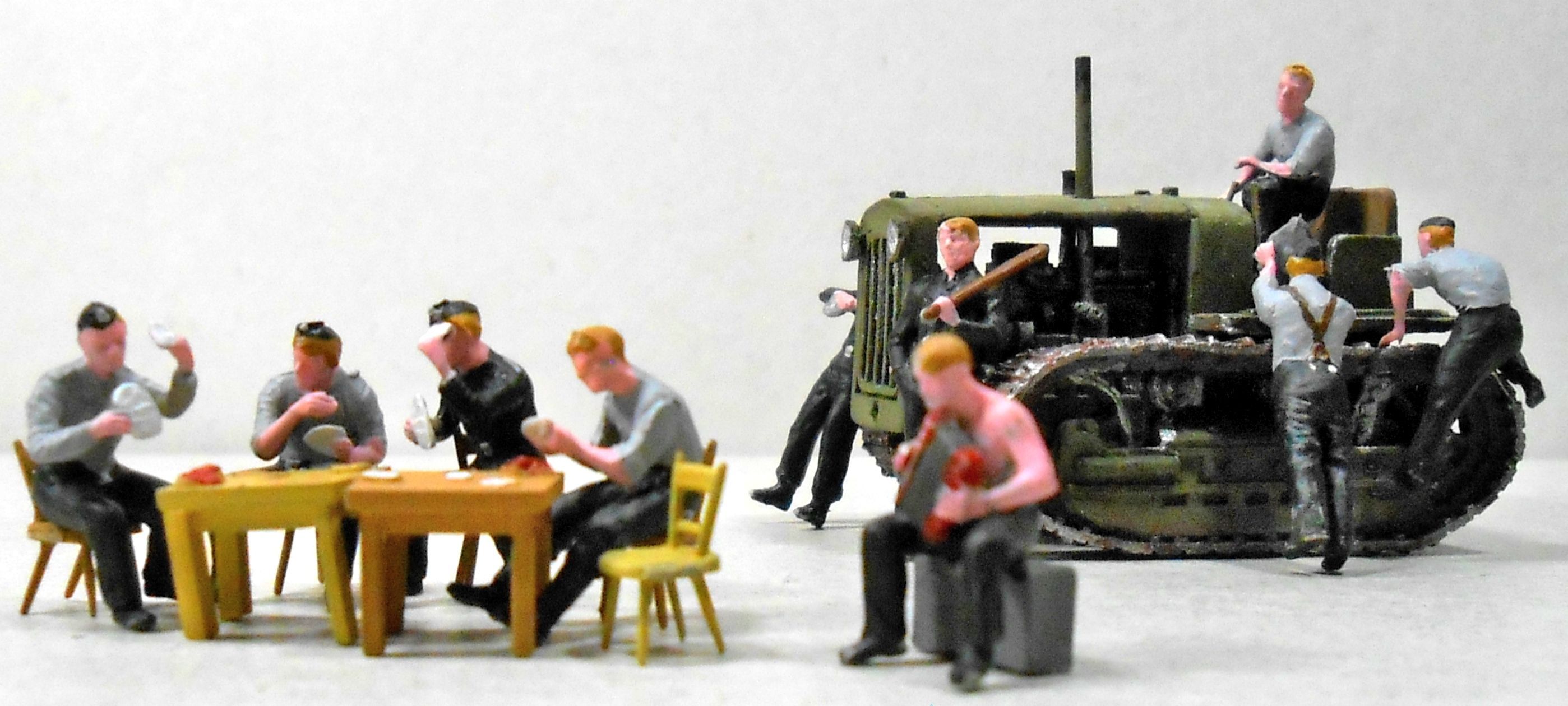 Очередной набор для сборки.Немецкие танкисты на привале, от Preiser.Масштаб Н0. В наборе 20 человек,два стола с имитацией жратвы на нем и набор стульев.
