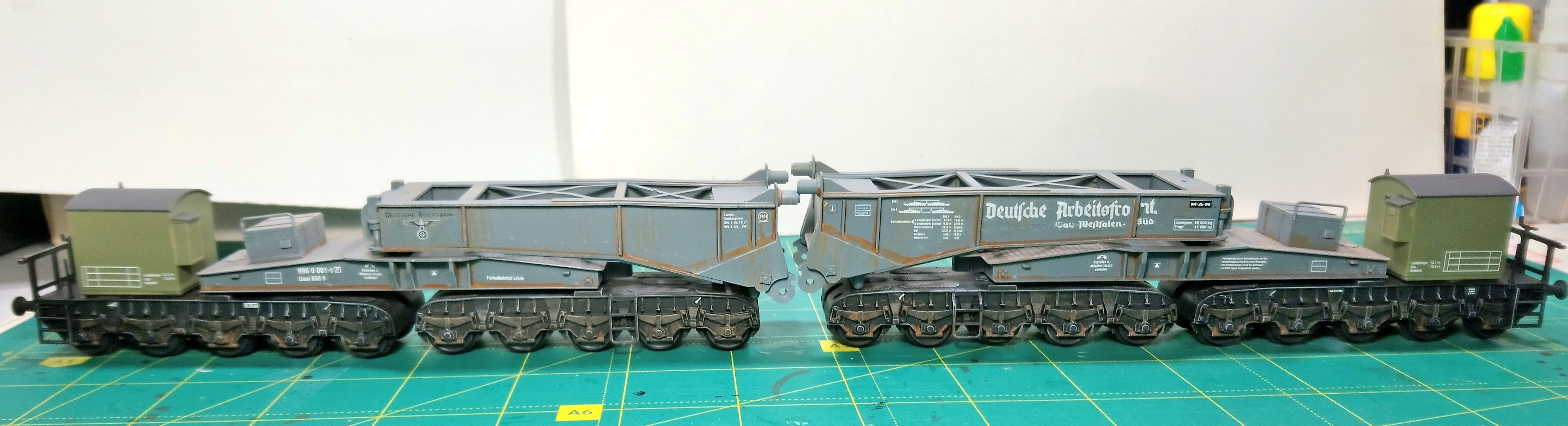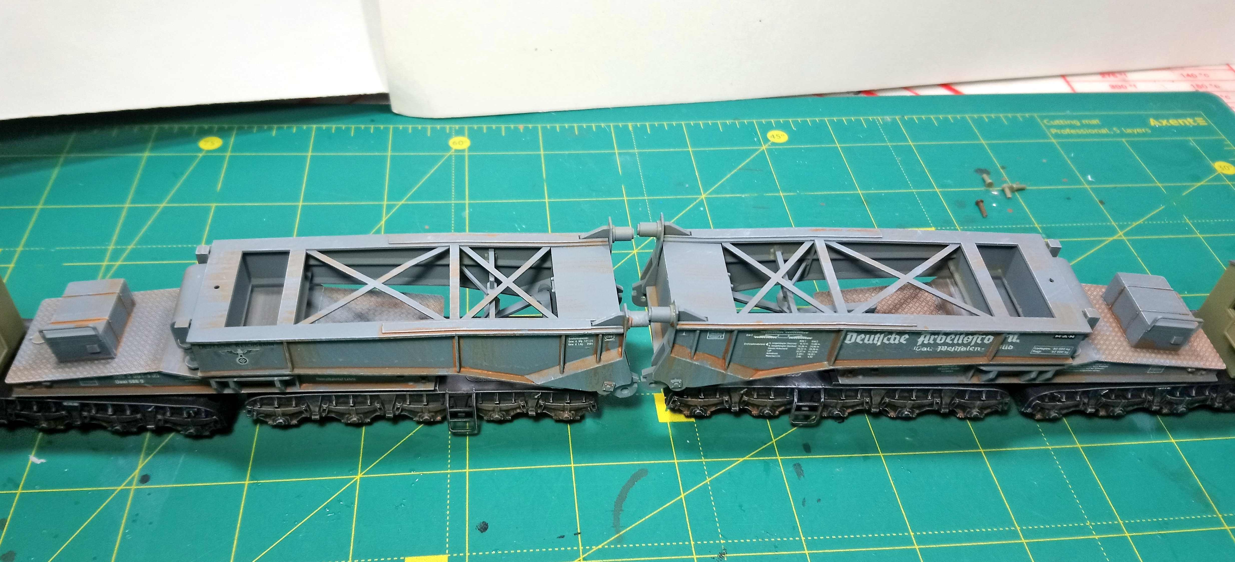 надо смазывать.Иначе будут пищать и истираться. Состаривал умеренно, ибо для 40х годов прошлого века вагон не успел сгнить.