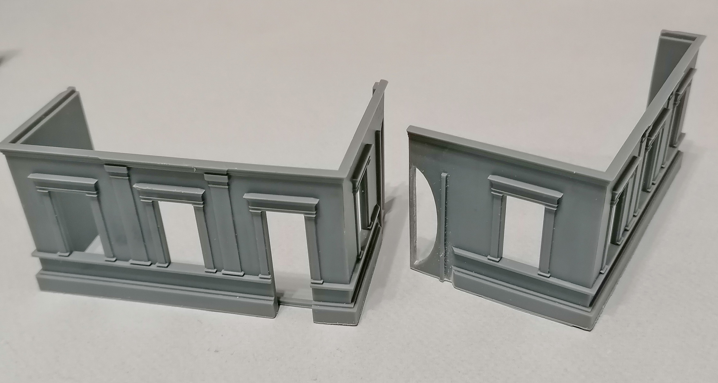 Лично я б здание с оштукатуреными стенами клеил из листового пластика. Но тут у каждого свои предпочтения и возможности. В чем я не знаю для себя альтернативы, так это в изготовлении из смолы корпуса редуктора для ходовой. Ну и мелочевку делать намного проще