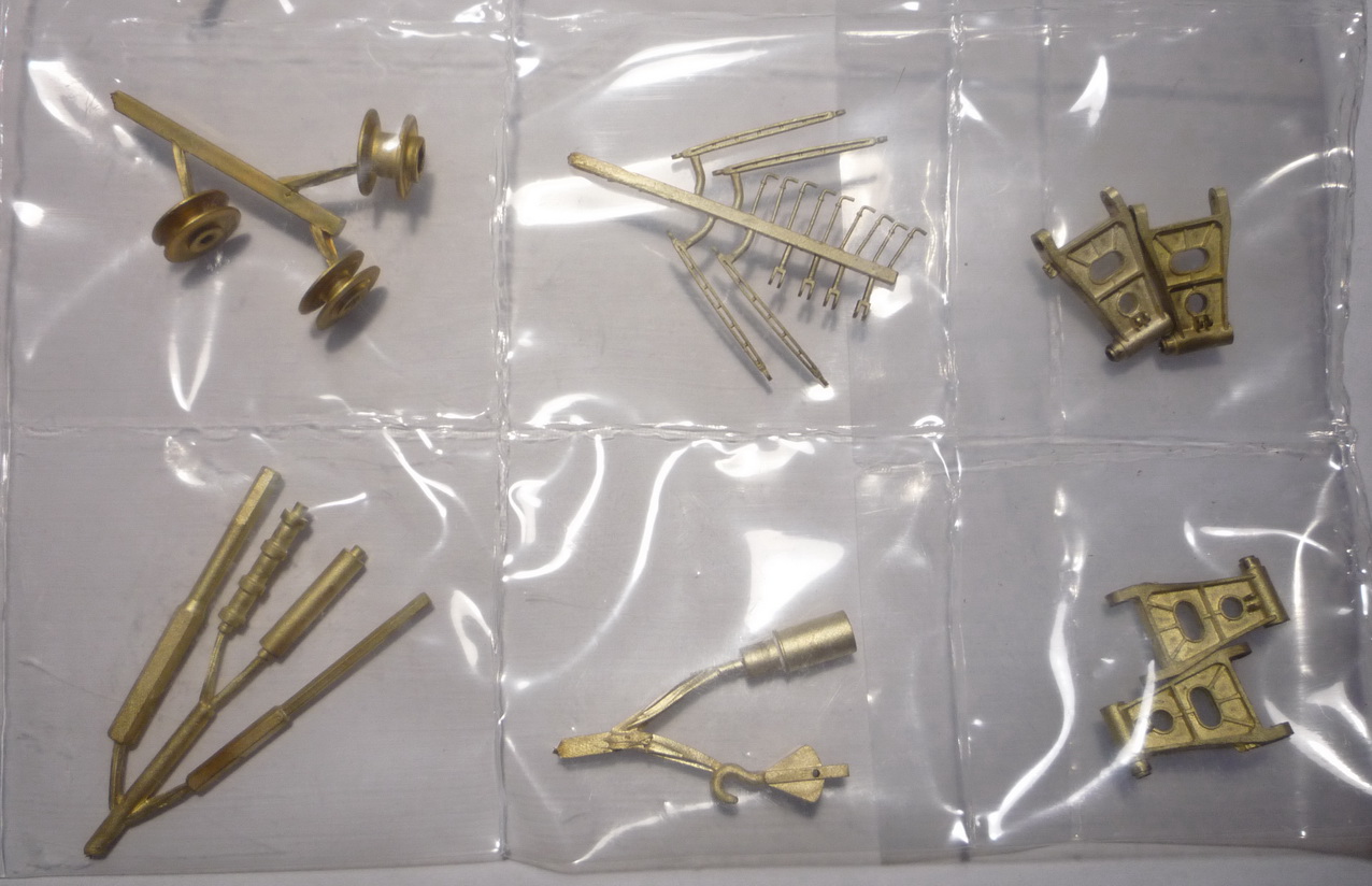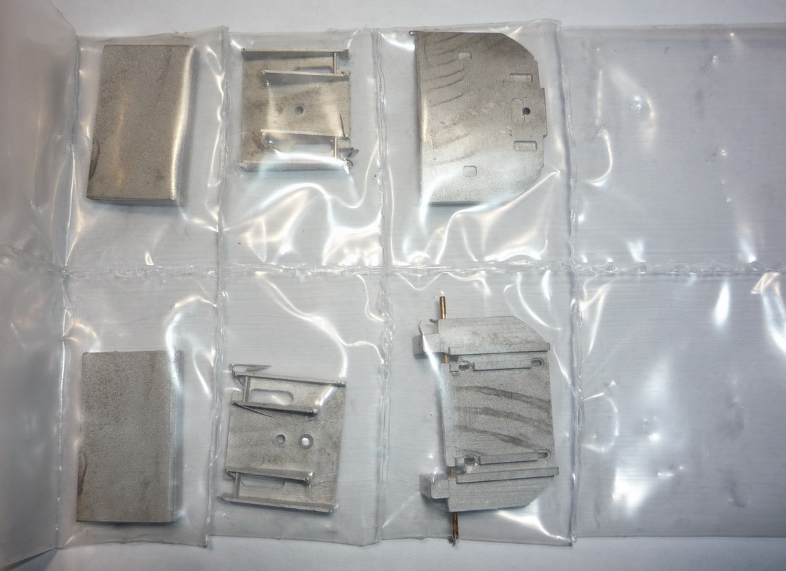 Один пакет с бронзовыми литыми деталями, один с буферами, шкивами, колпарами, NEM-шахтами и т.п.
