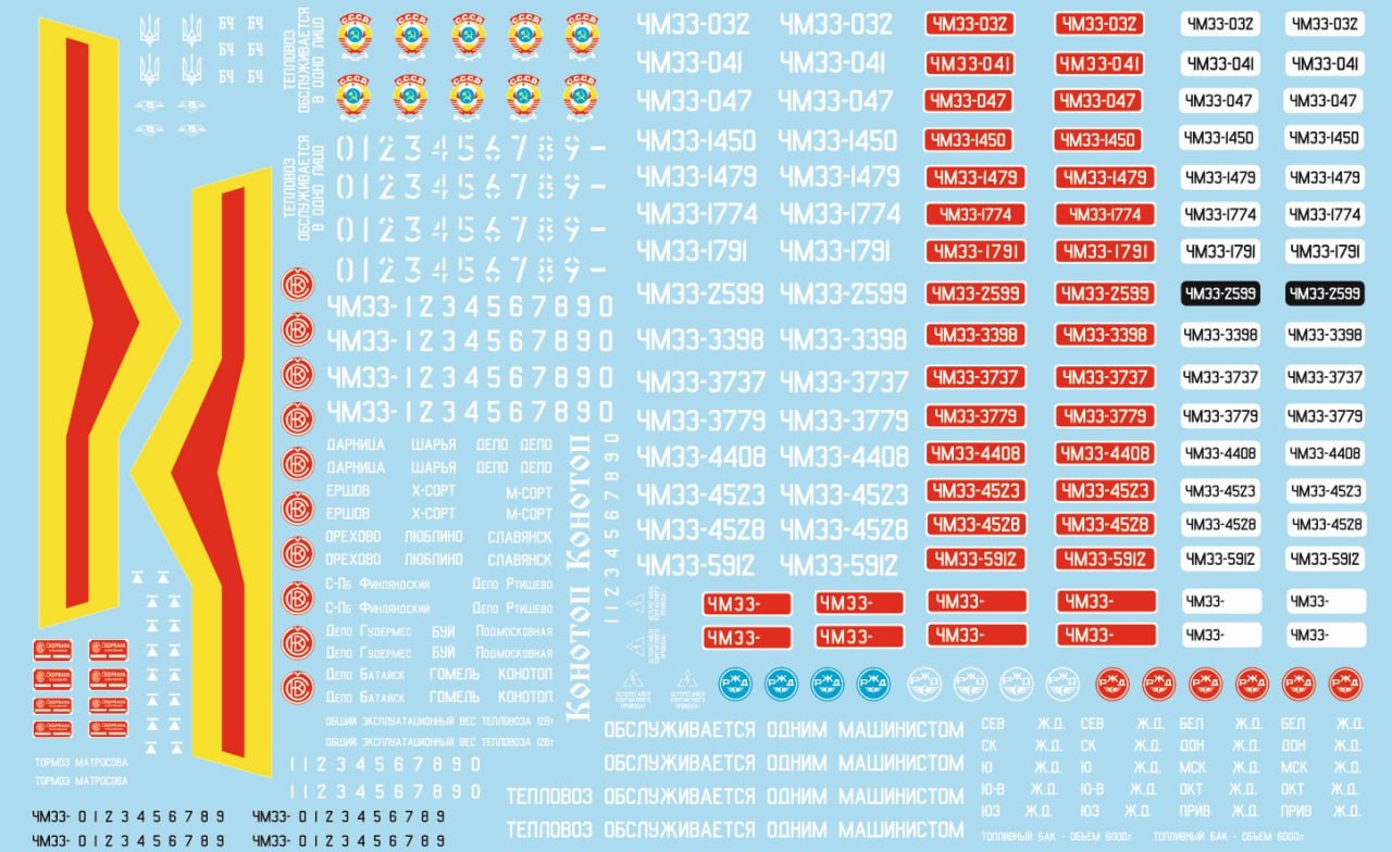 Для электровозов и тепловозов были большие универсальные наборы, но, мне кажется, стоит изменить подход в сторону более специализированного - один набор декалей для одной серии локомотивов (как были у меня для ЧМЭ3, ТЭ(П)10, ТЭМ1/ТЭМ2, ТЭ3/ТЭ7, например).