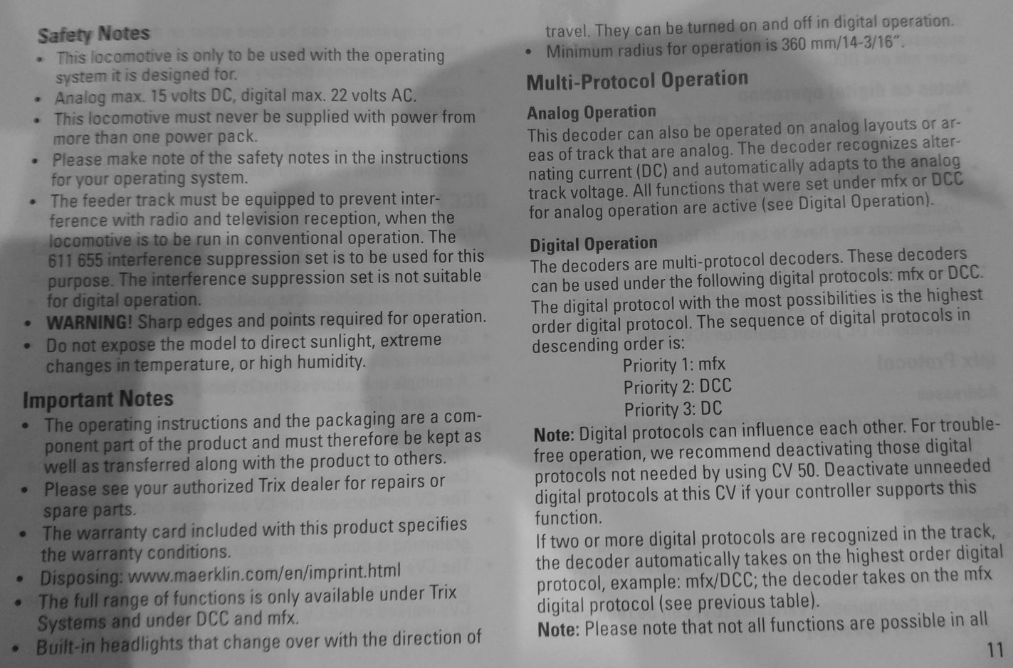 Игорь, что-то не получается.burbon писав:Не беспокойтесь, все в порядке, все будет работатьМодель на борту имеет один мультипротокольный звуковой декодер с поддержкой протаколов mfx и DCC, а так же может работать на аналоговом управлении...
