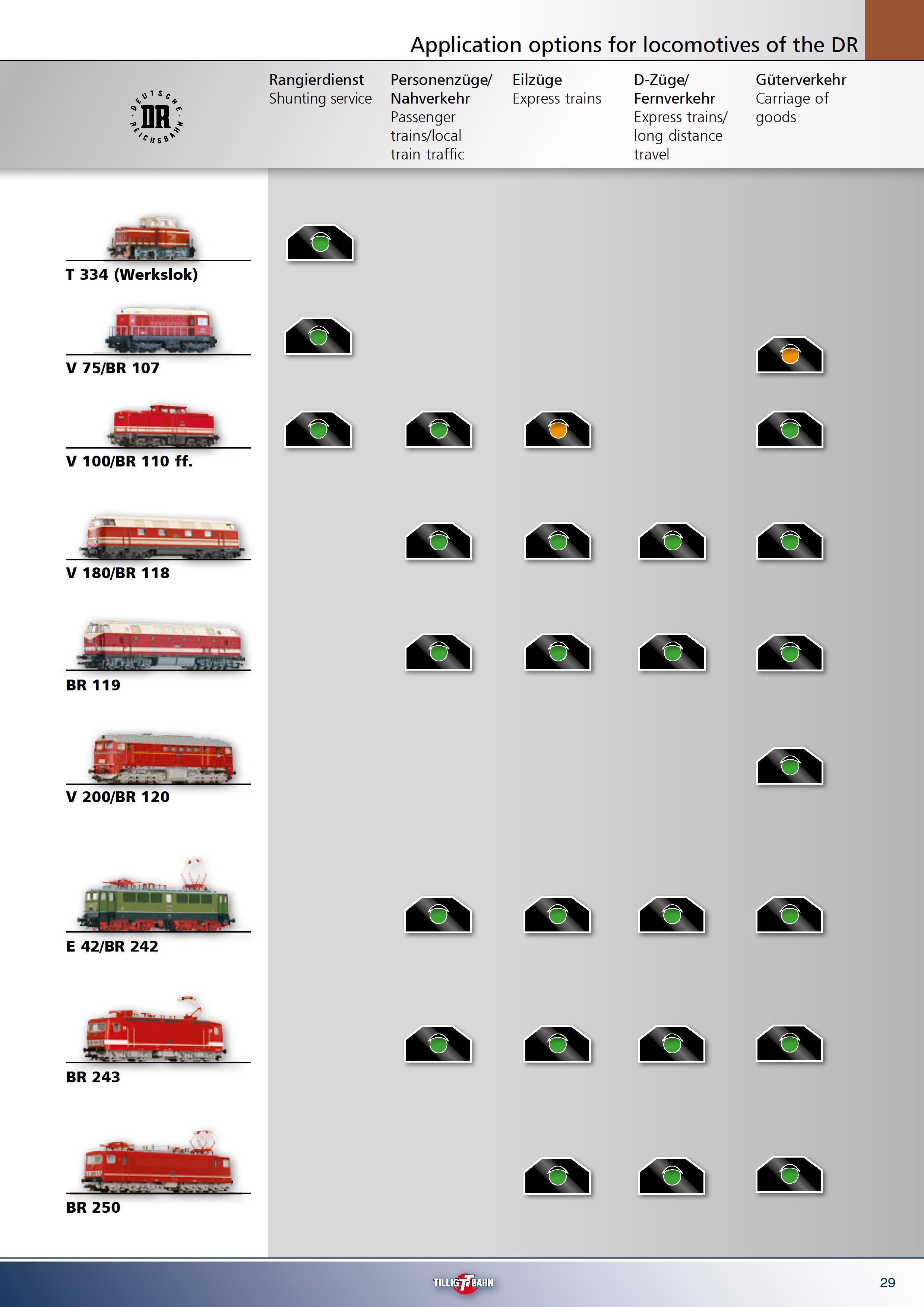В каталогах Tillig наводилась інформація про составність рухомого складу на прикладі ассортимента компанії: