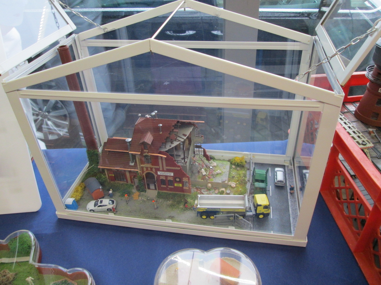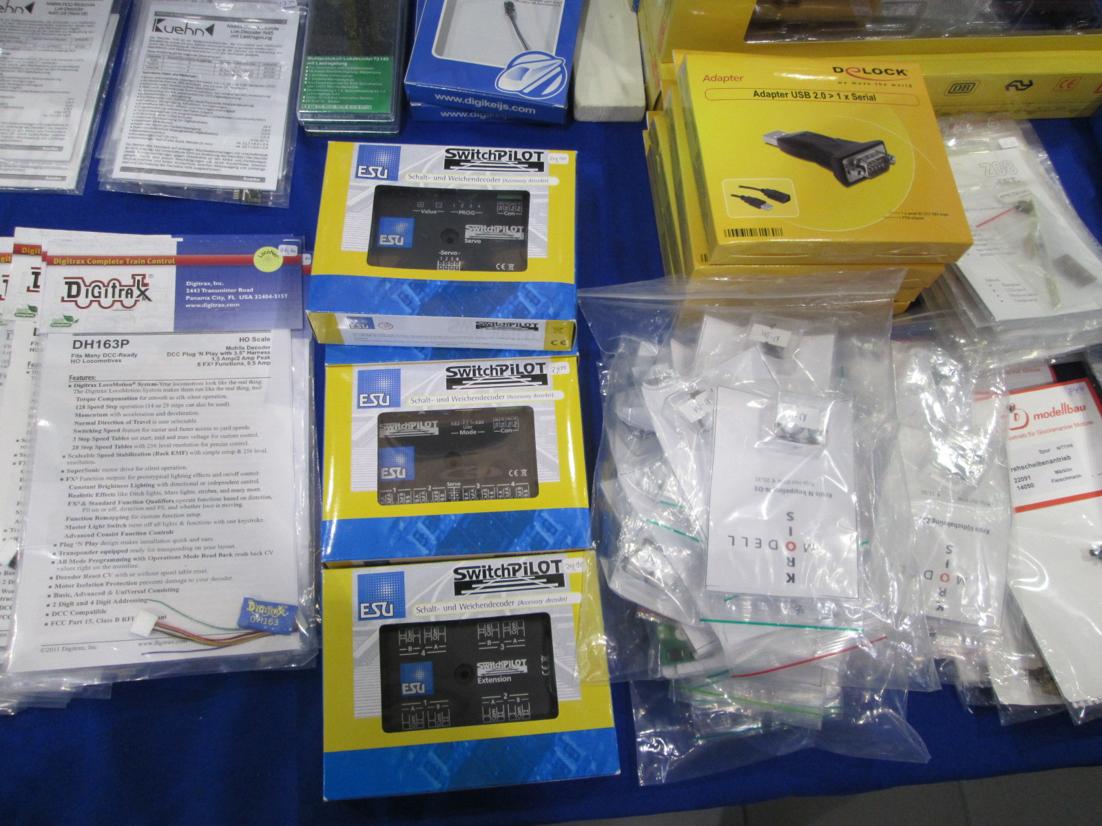 продажа там тоже шла во всю, а вот возле стола с товаром от фирмы Noch я просто залип выбирая себе потом что-то, того что не было у одних смотрел у других, например чем можно было имитировать воду. юыл вариант пленка, потом масса в баночке и последнее не понятно что двух сортов - 2 тюбика какой-то массы привысыхании становится прозрачным, или один тюьик и к нему пара маленьких баночек с красителями. Пока ничего не брал, но пленка была дешевым рещением, масса в баночке как йогурт самым дорогим, а в тюбиках средней ценой