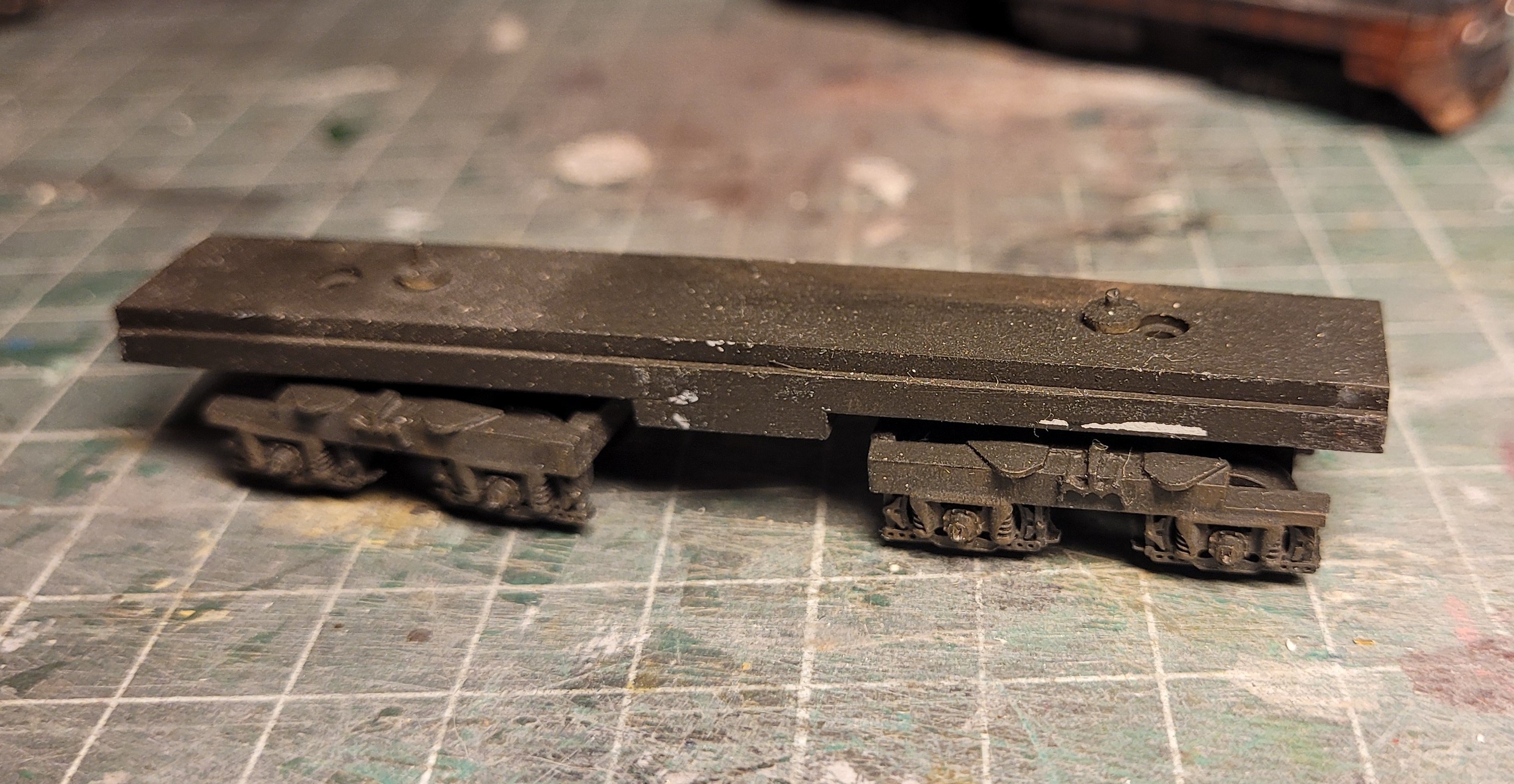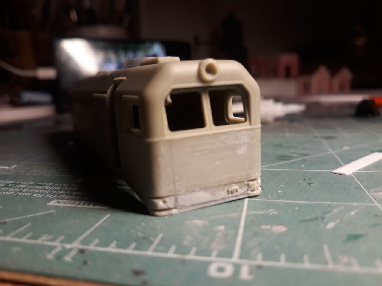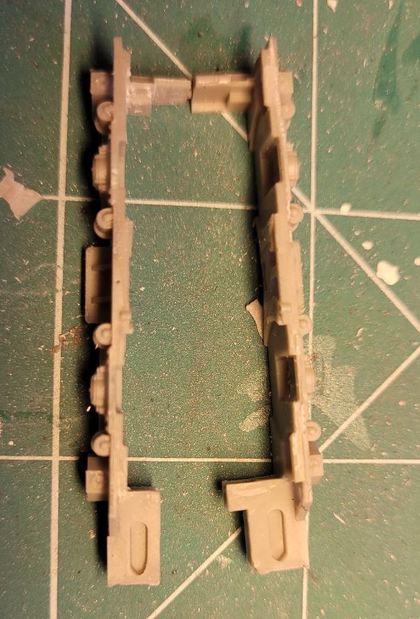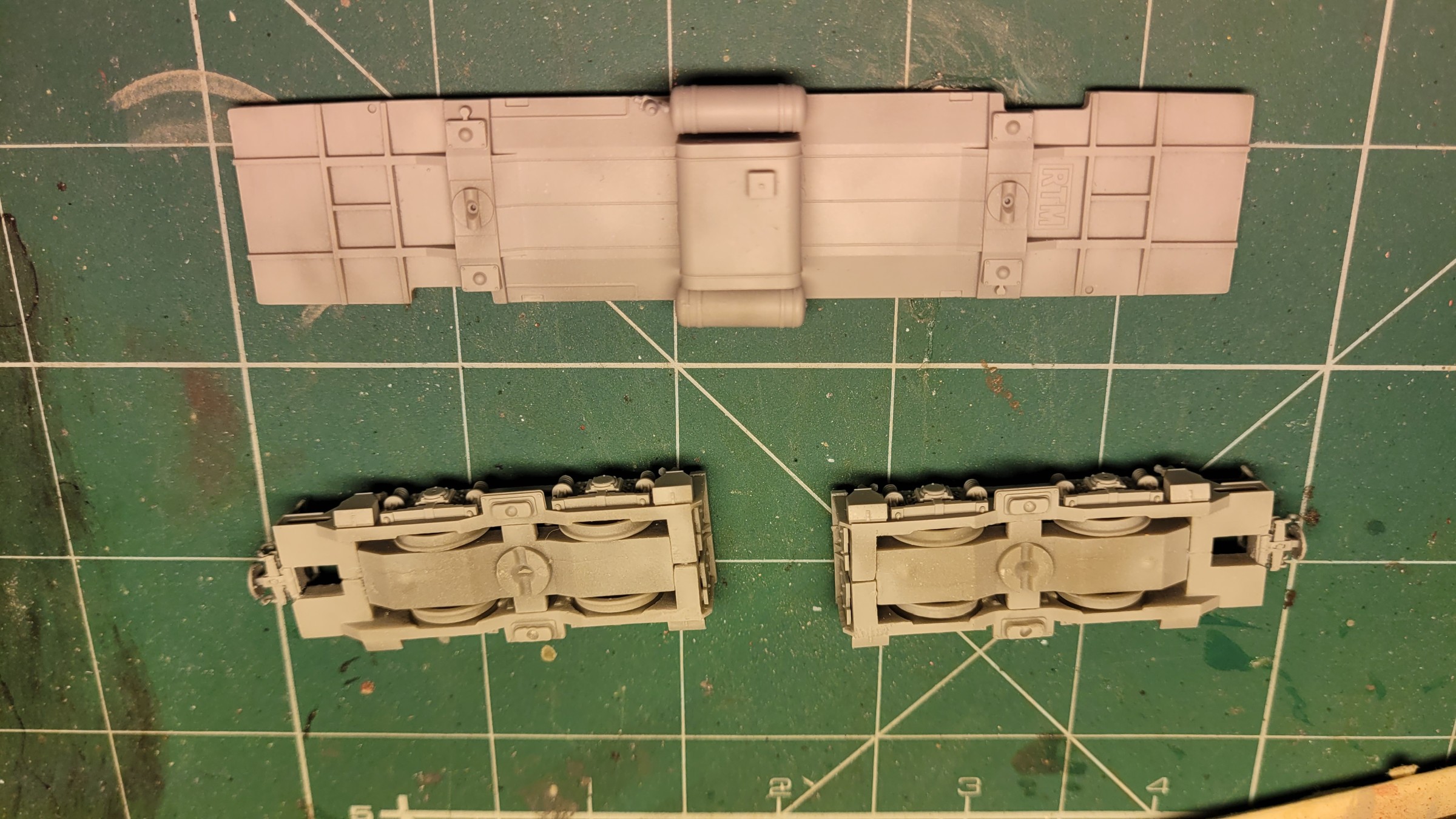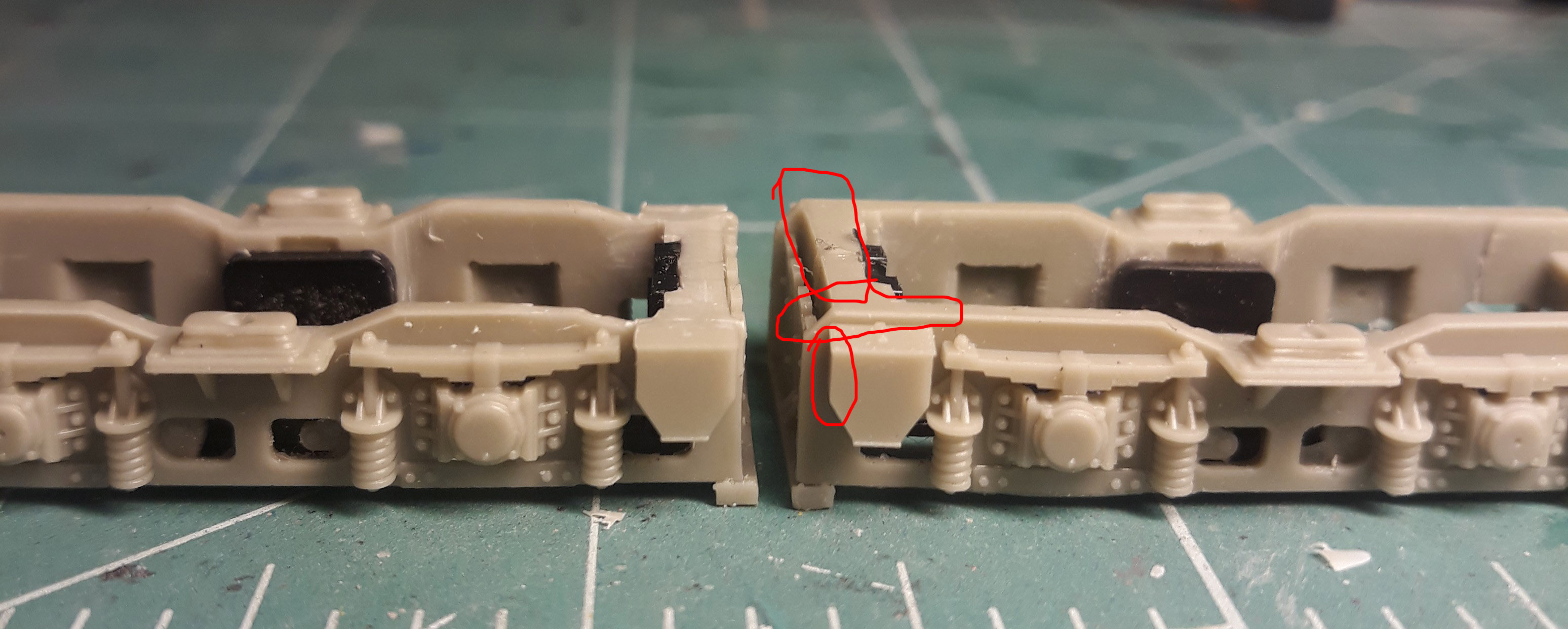 Следующий шаг - аккуратно отрезать боковины тележек и выровнять место среза - на него будут приклеиваться боковины тележек ТУ2.