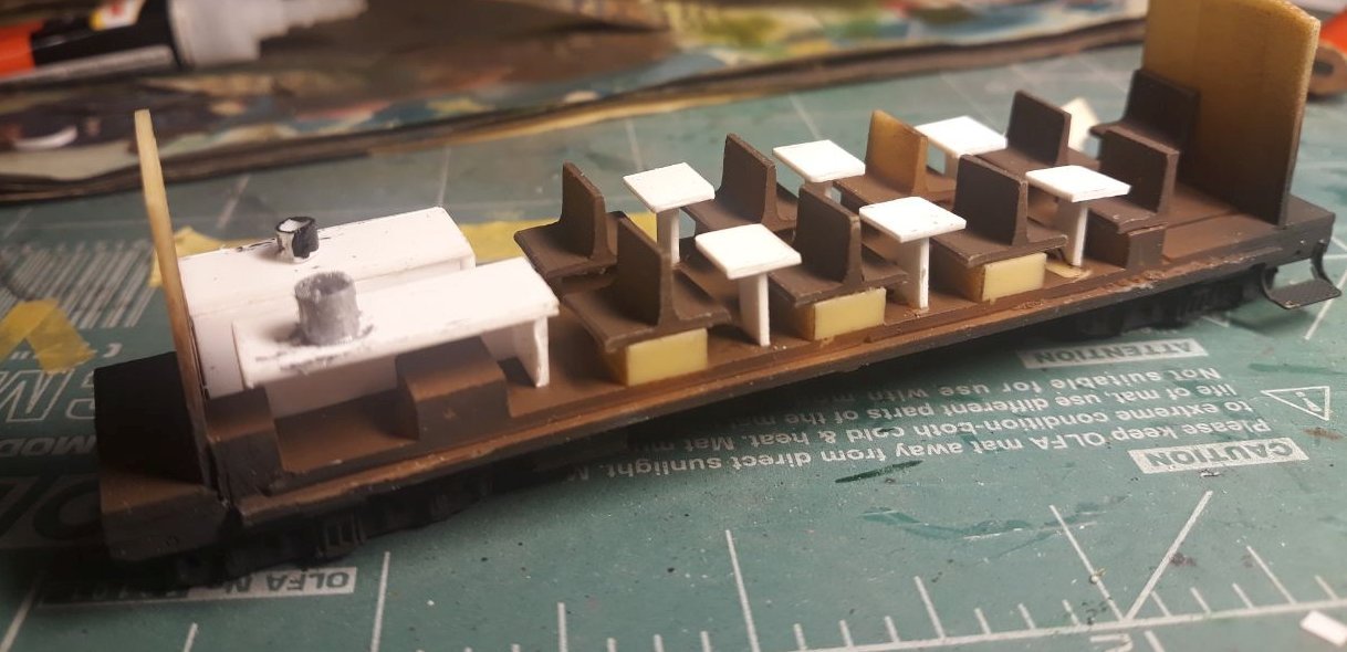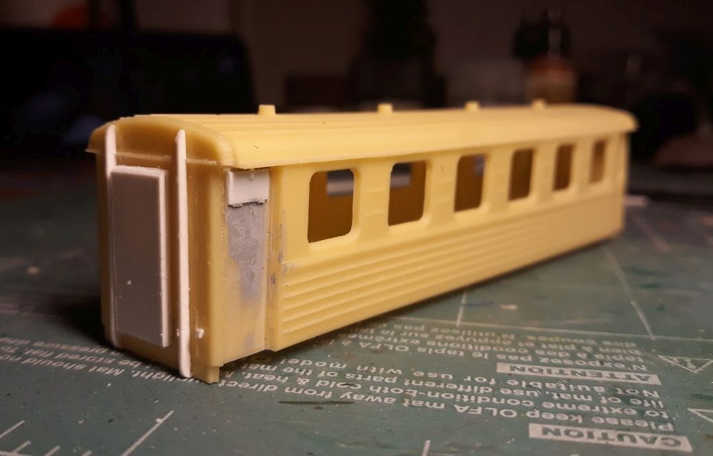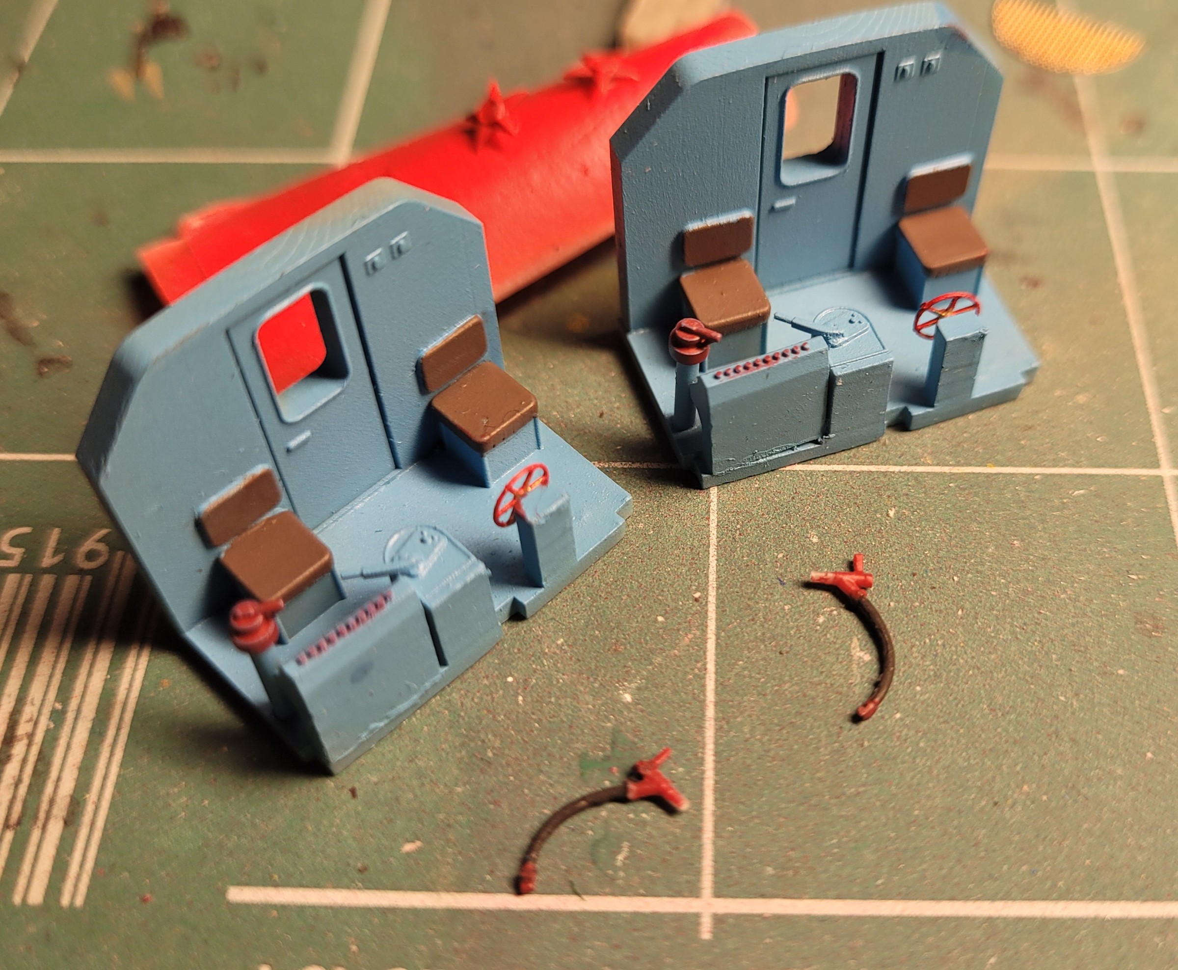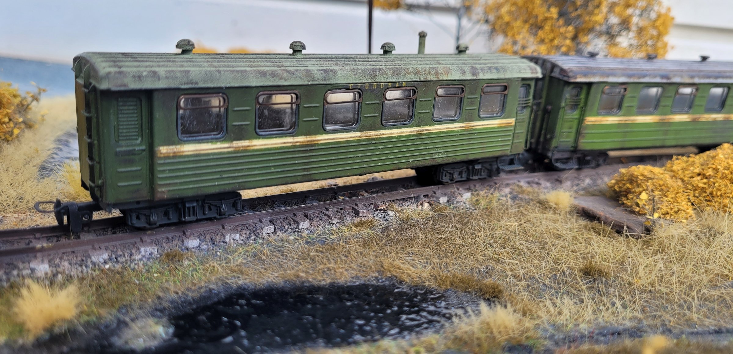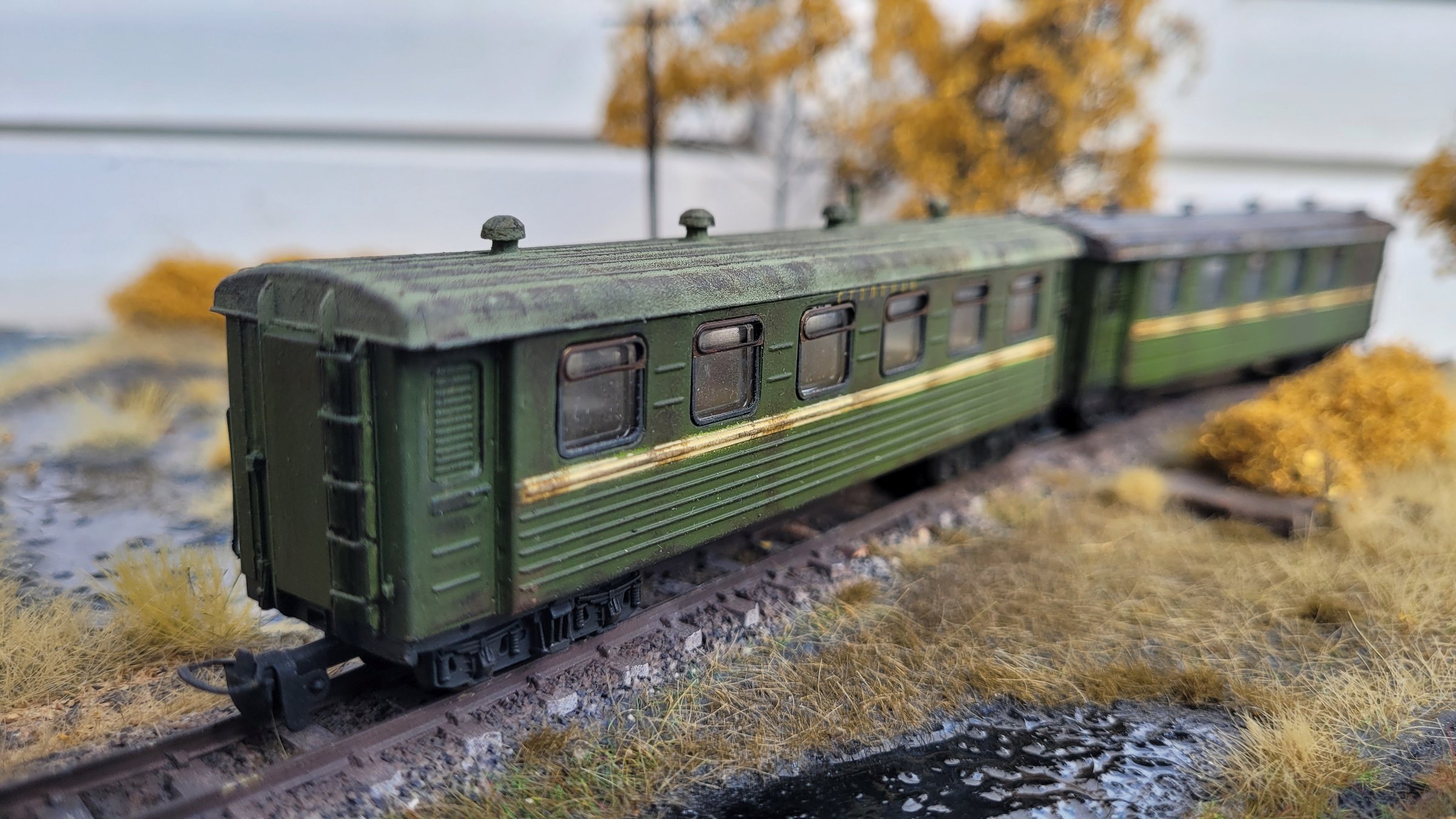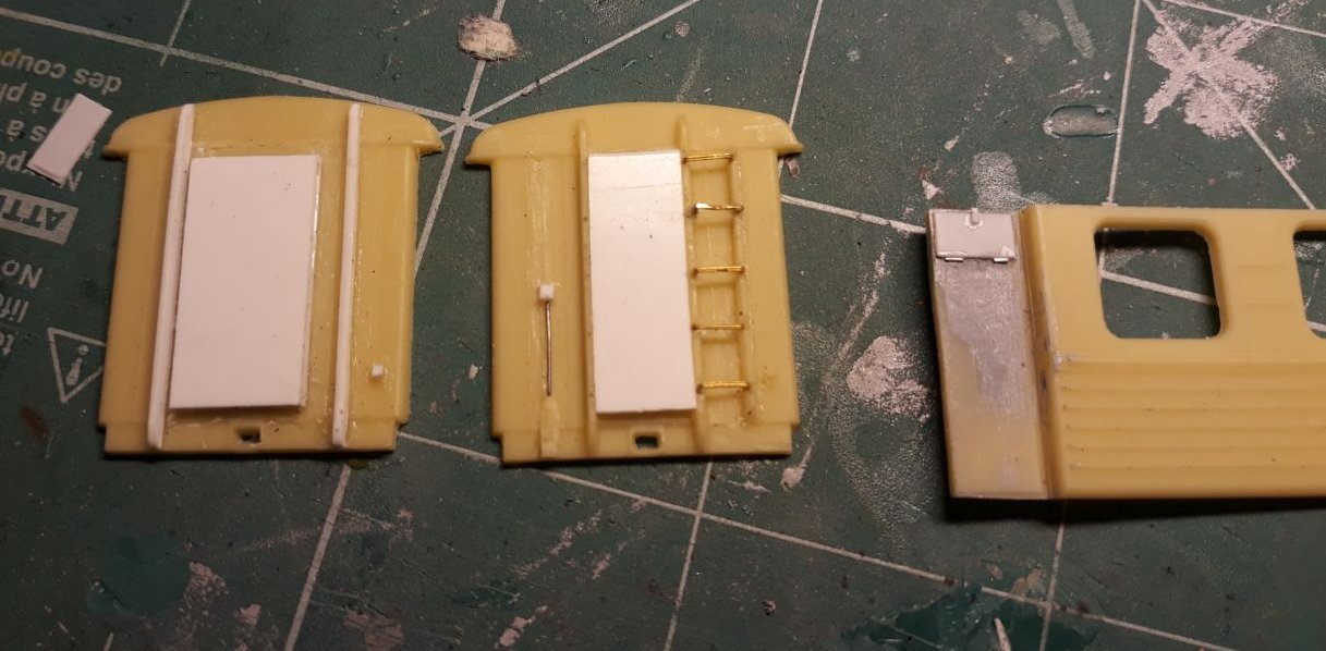Следующий шаг - аккуратно отрезать боковины тележек и выровнять место среза - на него будут приклеиваться боковины тележек ТУ2.