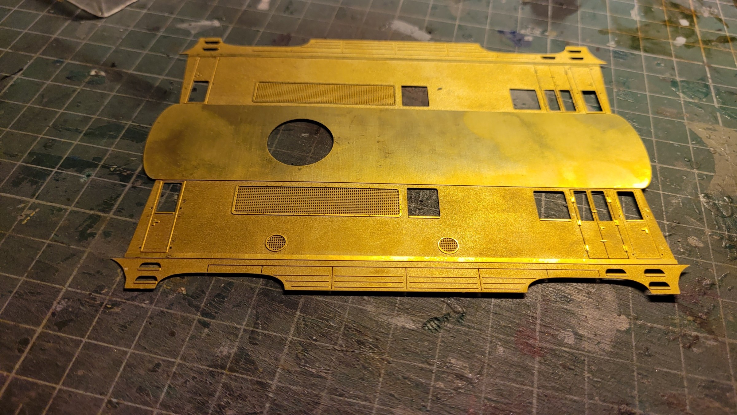 После обработки можно склеить боковины между собой в задней части. Не спешите - сперва надо приложить их к тележке и убедится, что всё подрезано точно. Скорее всего, небольшой изгиб в задней части останется. Проверьте, легко ли поворачиваются колёсные пары - в идеале они вообще не должны касаться боковин.