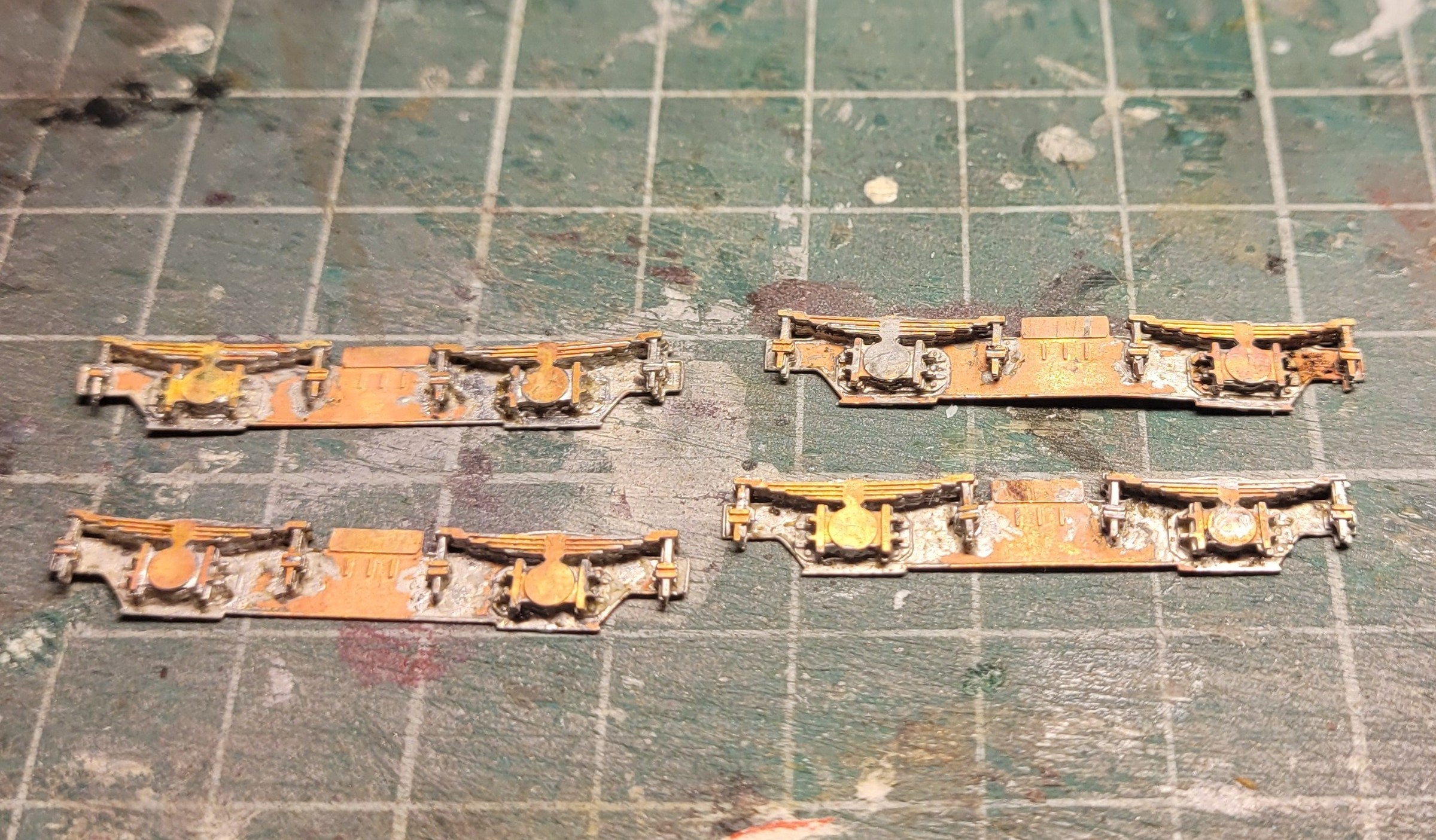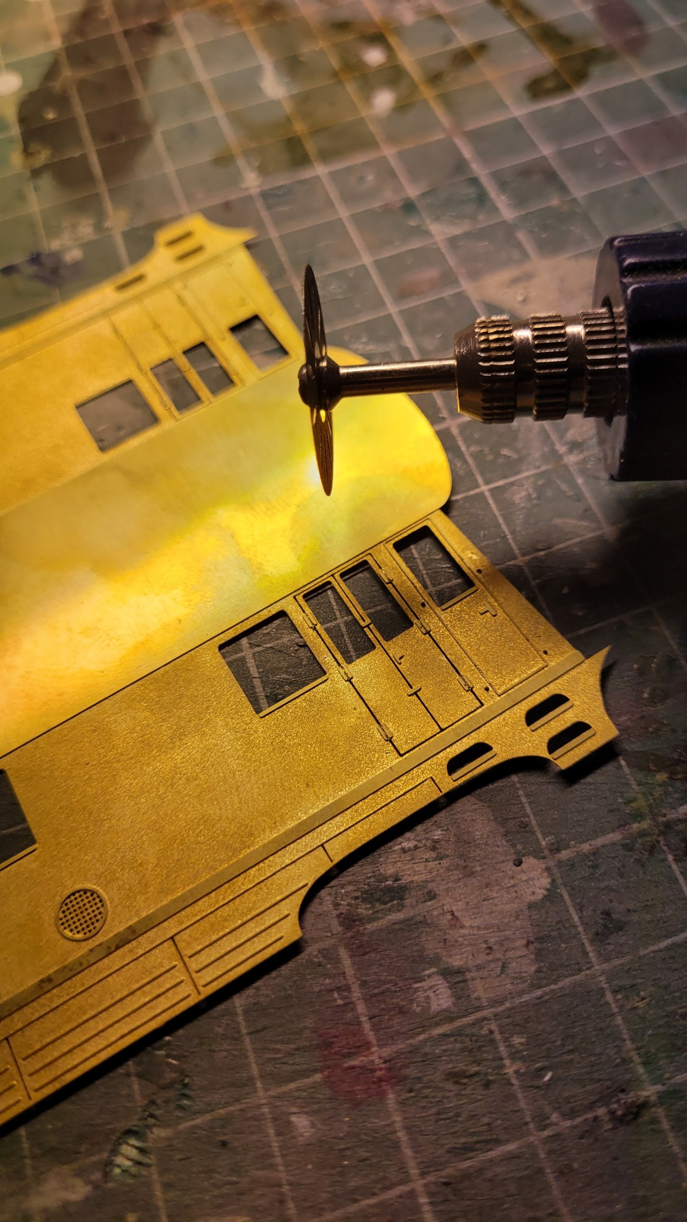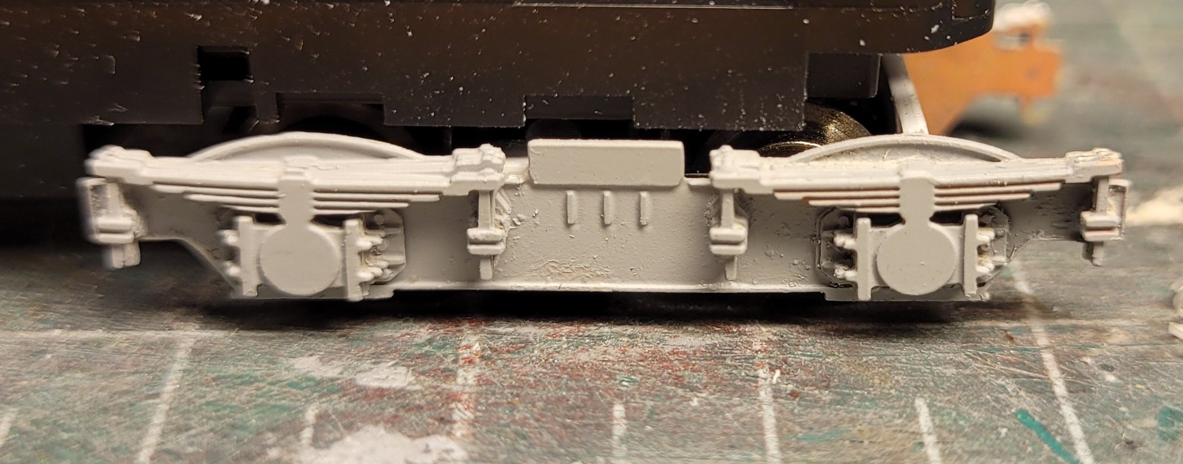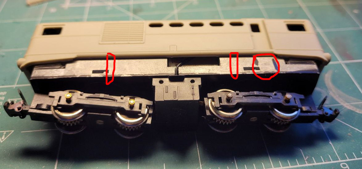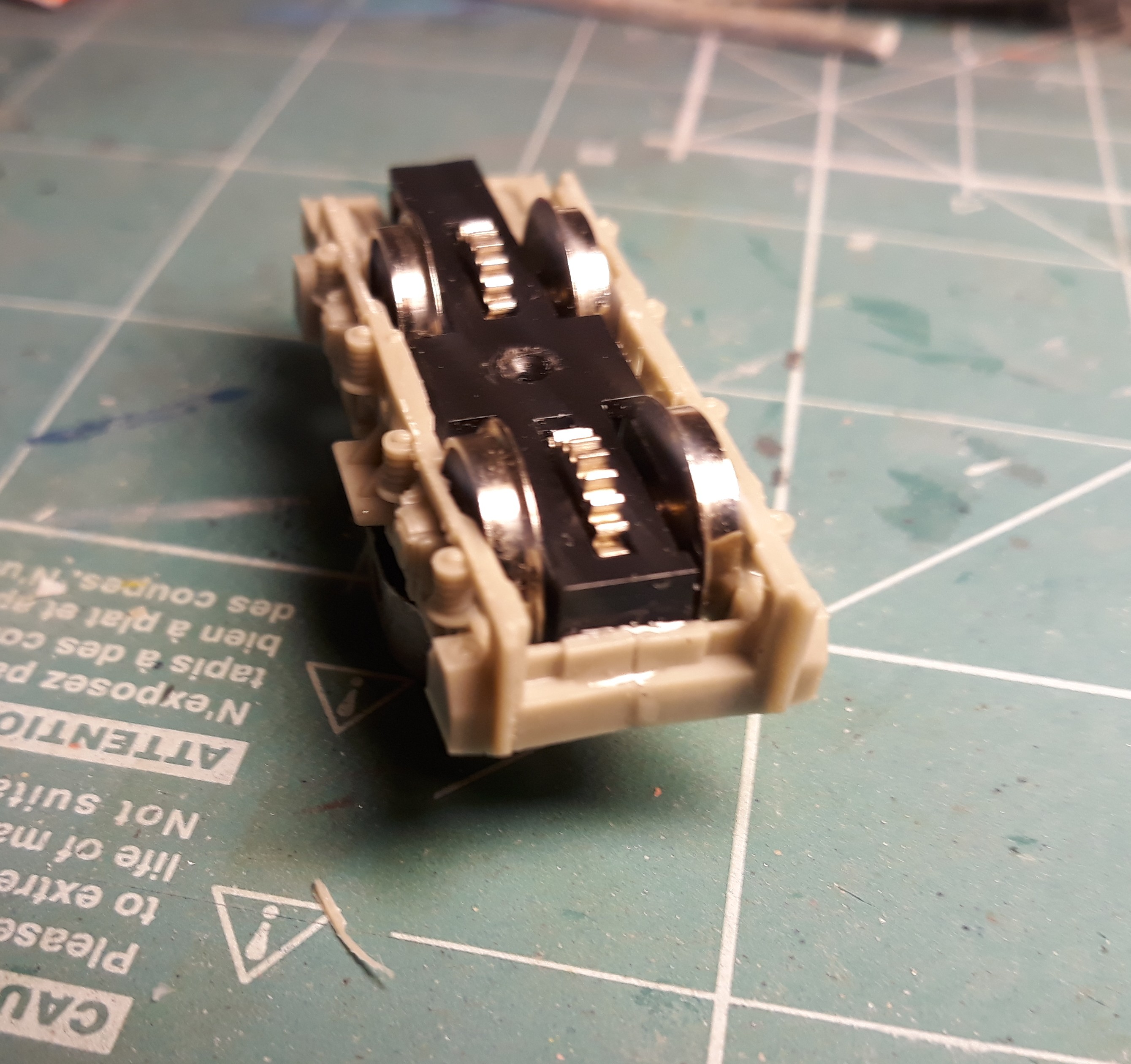 Затем нужно отрезать выступающие оси колёсных пар - я использовал микродрель с отрезным кругом, но можно отпилить их просто надфилем.