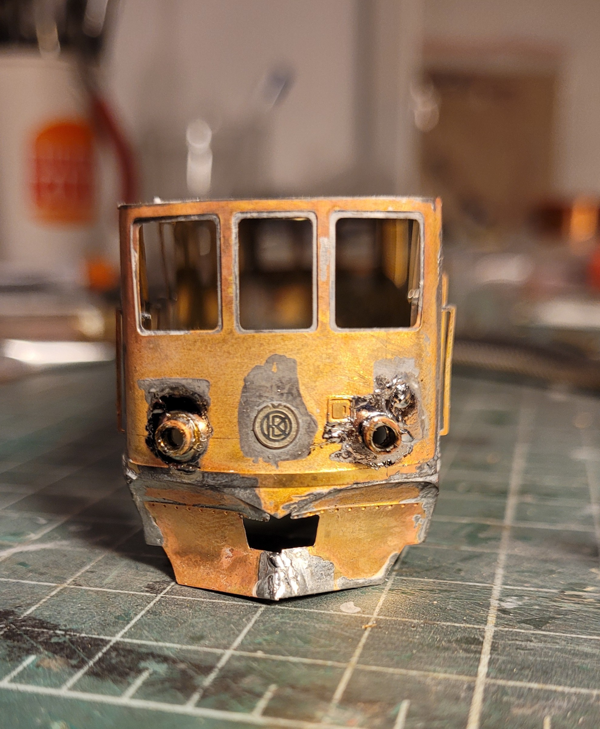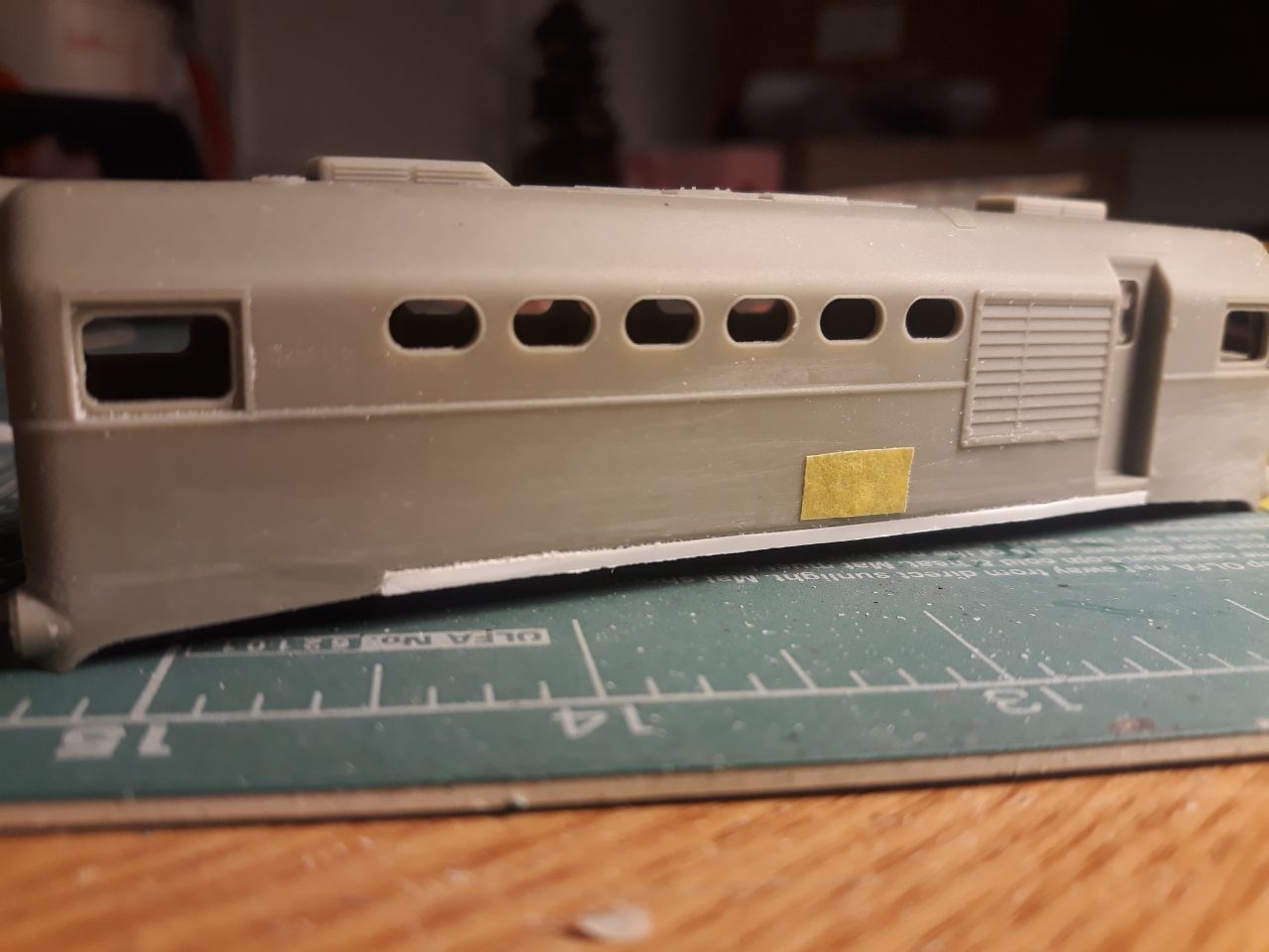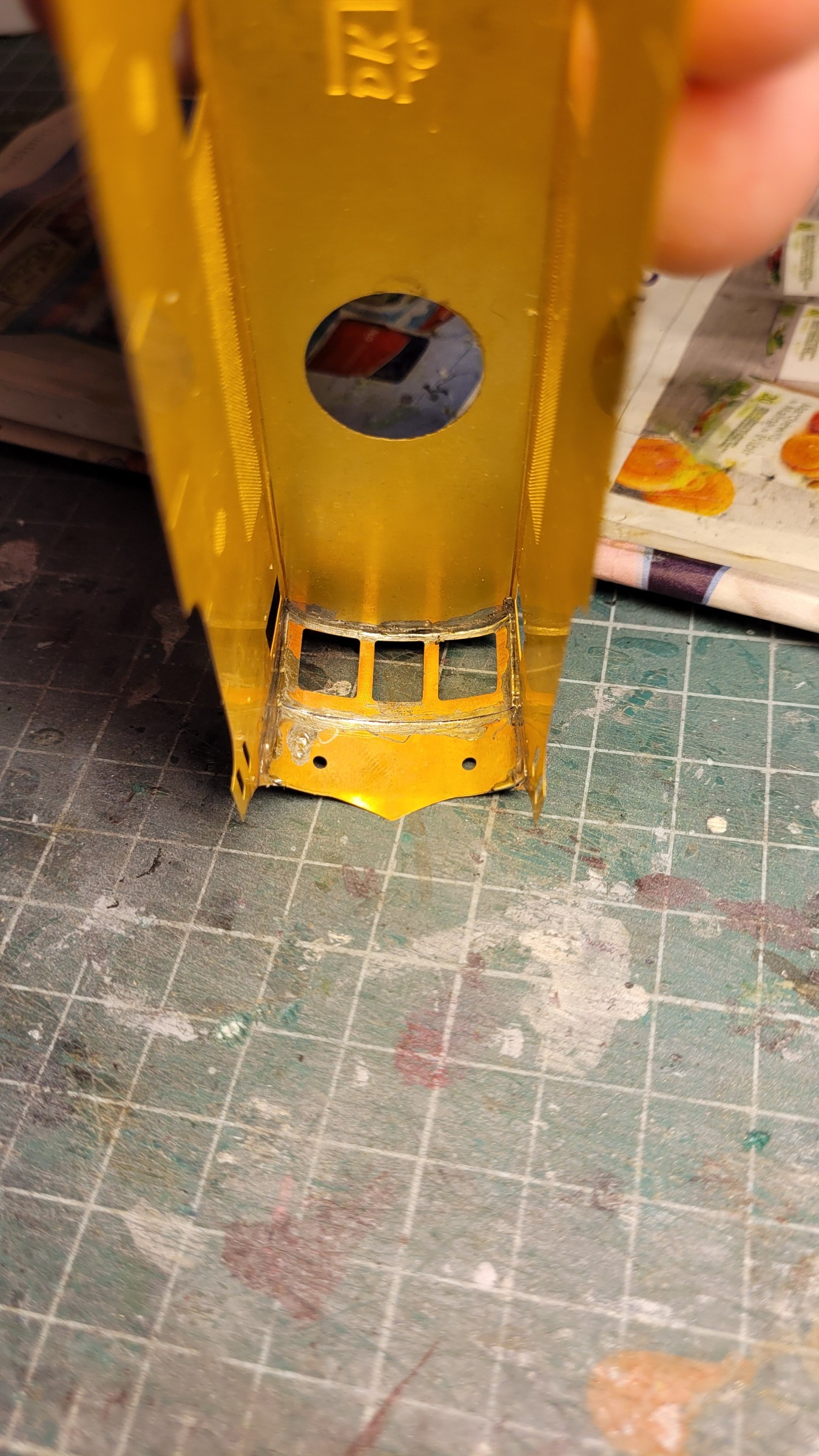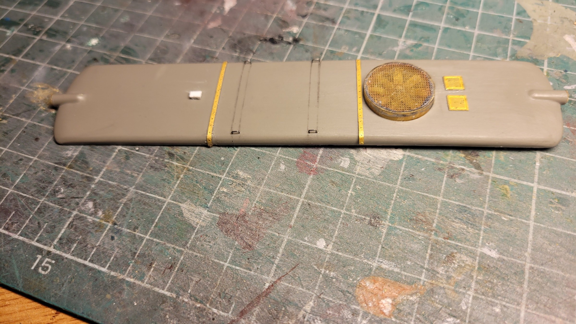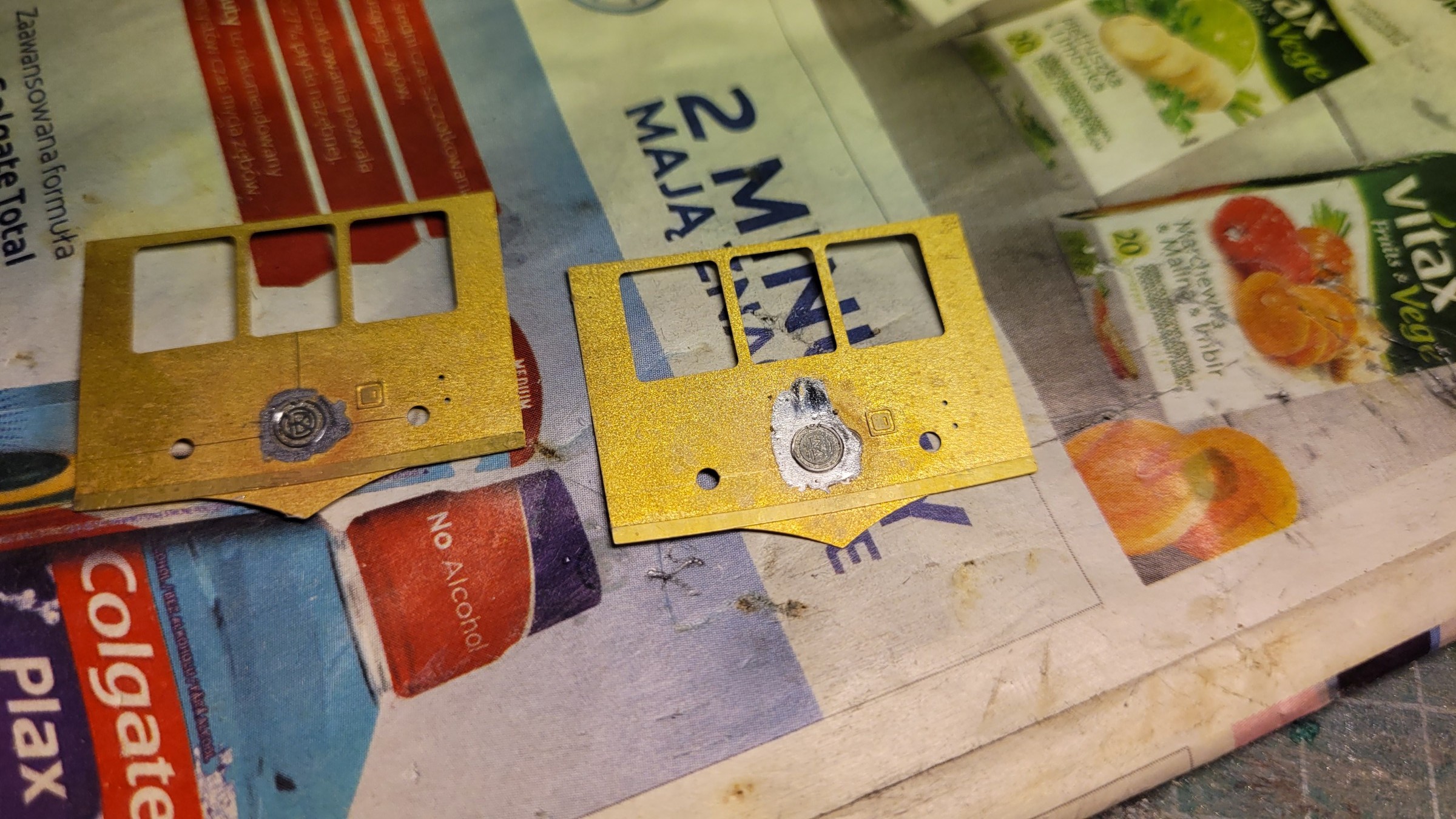 На раме нужно проточить выемки под двери, канавки под защёлки, сточить стойки для прожекторов, около 1 мм высоты топливного бака и защёлки на топливном баке.