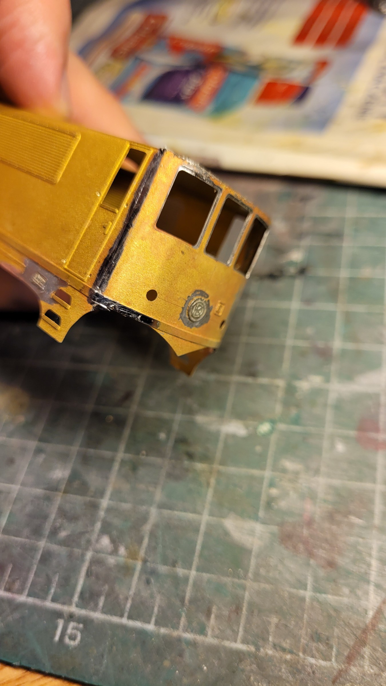 После установки сцепки можно приклеить метельник и заднюю деталь тележки.