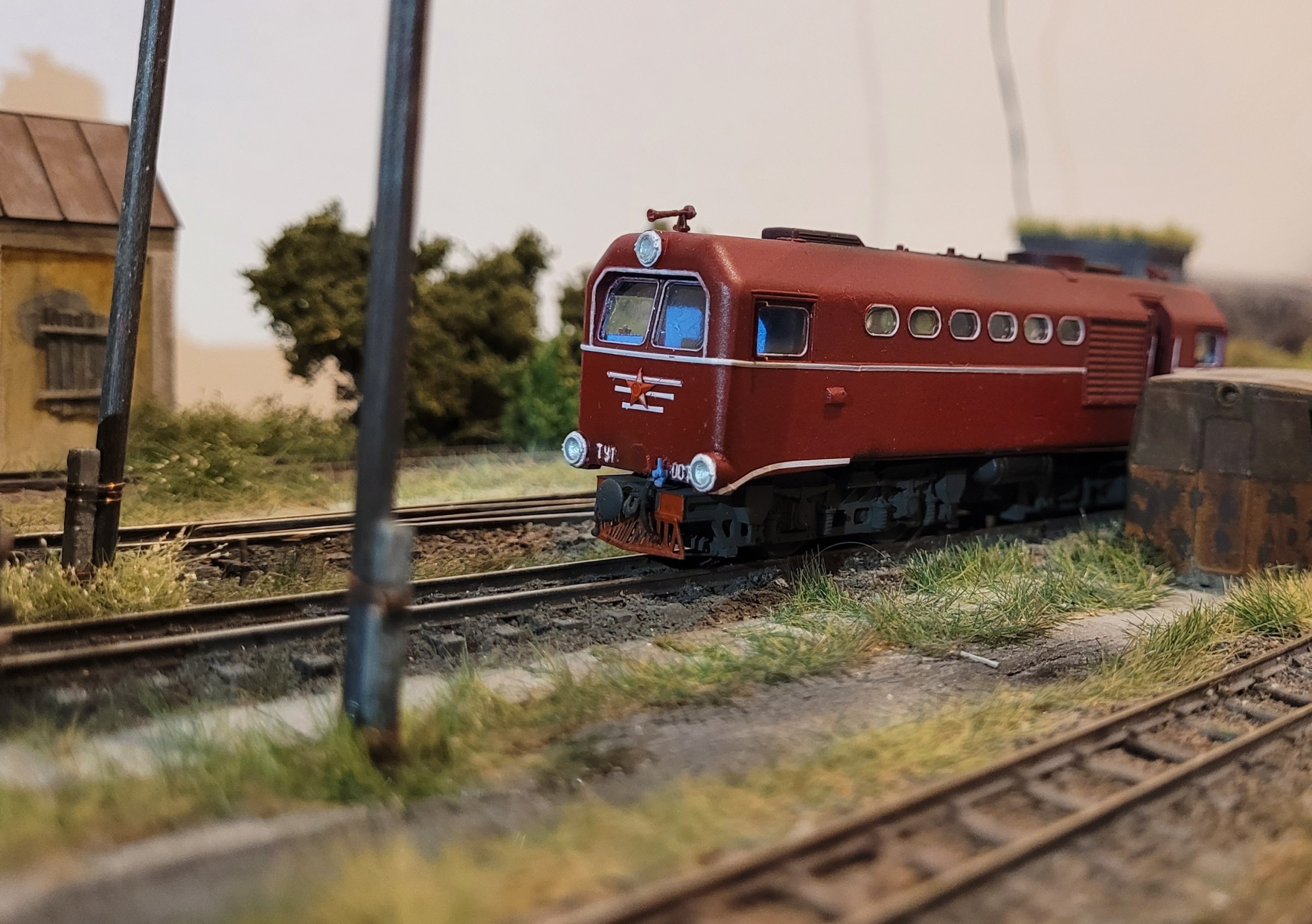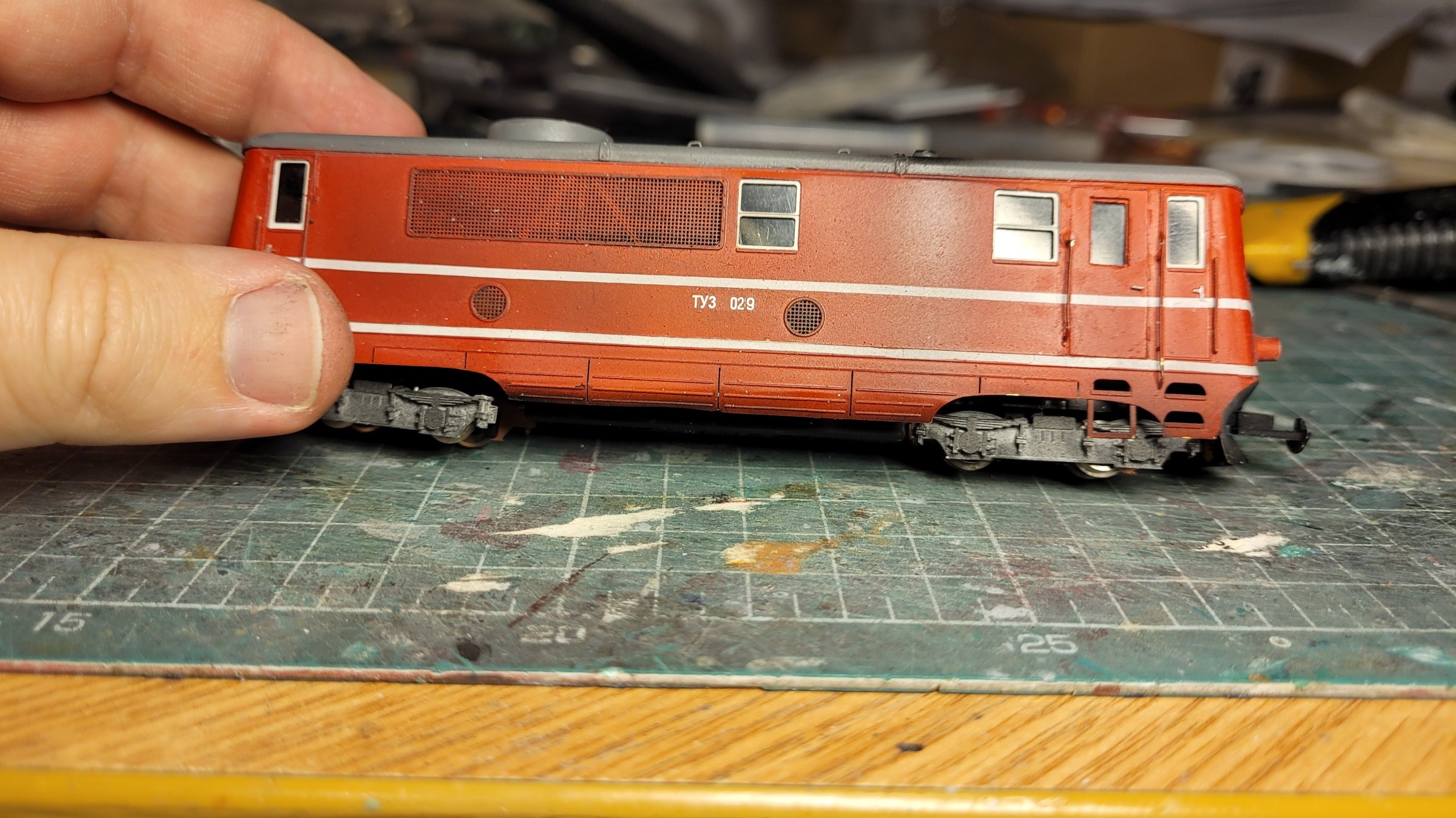 Ходовка взята от узкоколейного локомотива ÖBB 2095 производства Liliput. Она не идеальна - не совсем совпадают межосевые расстояния, двигатели достаточно шумные, локомотив слегка раскачивается при движении (впрочем, настоящий ТУ2 на большой скорости тоже шатает будь здоров).