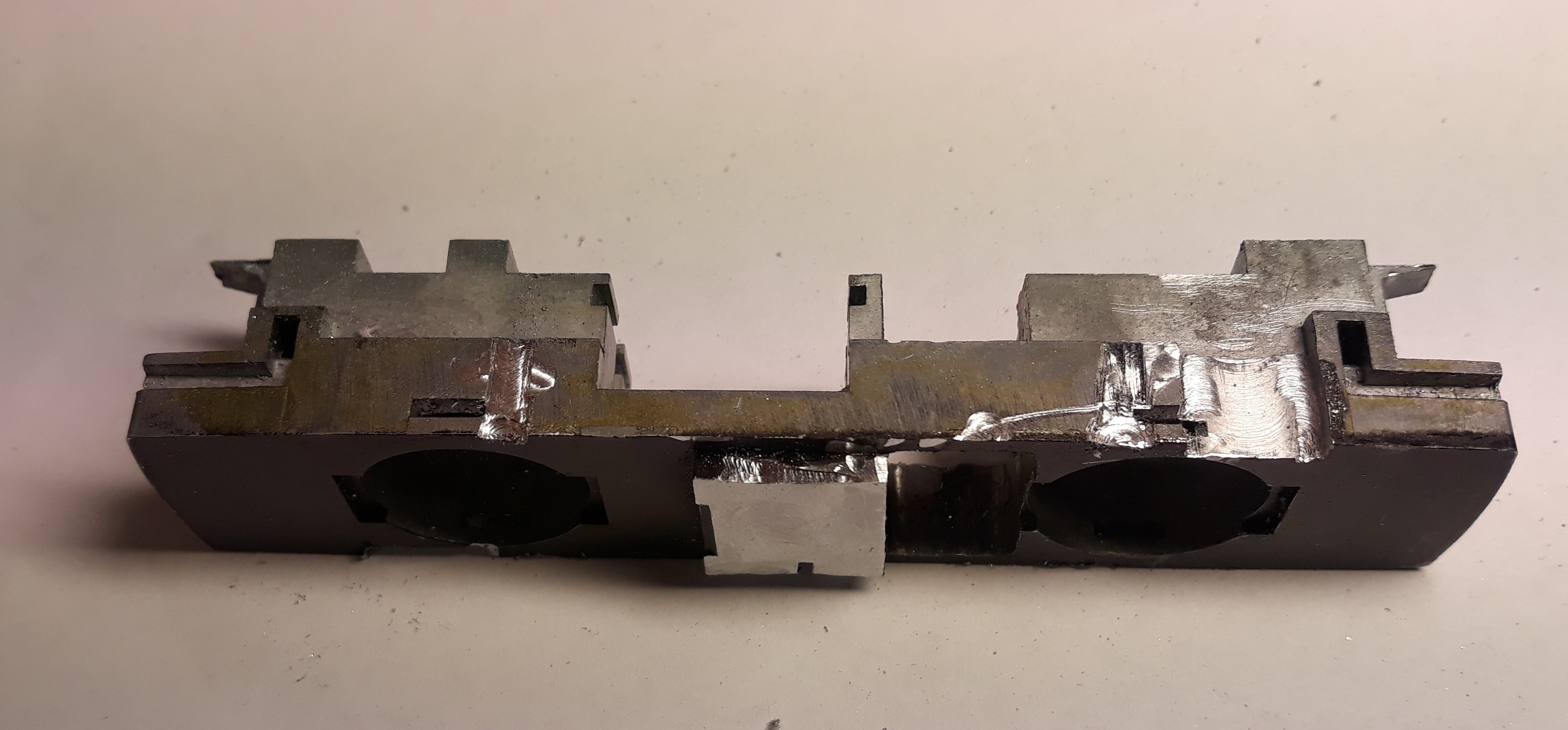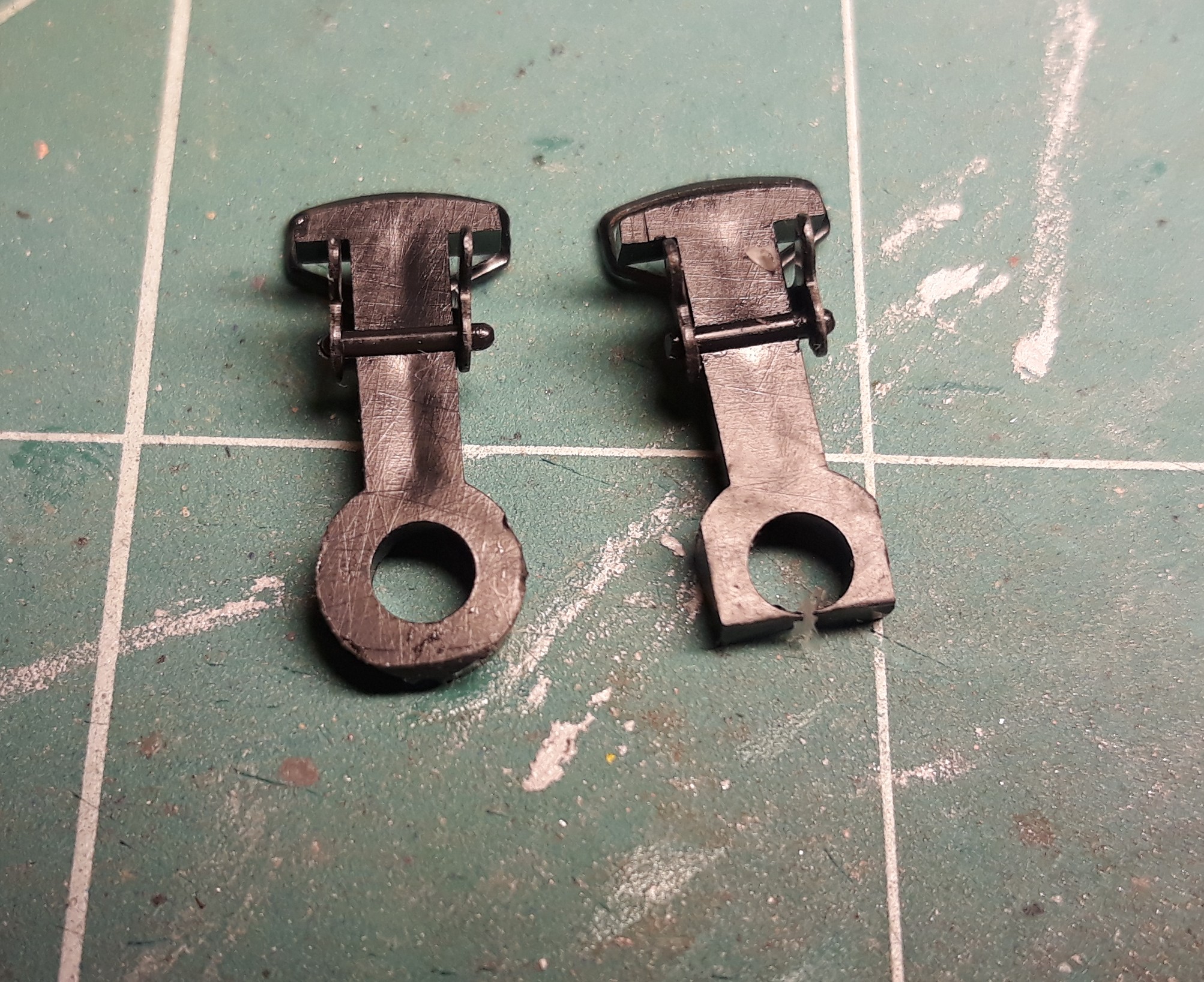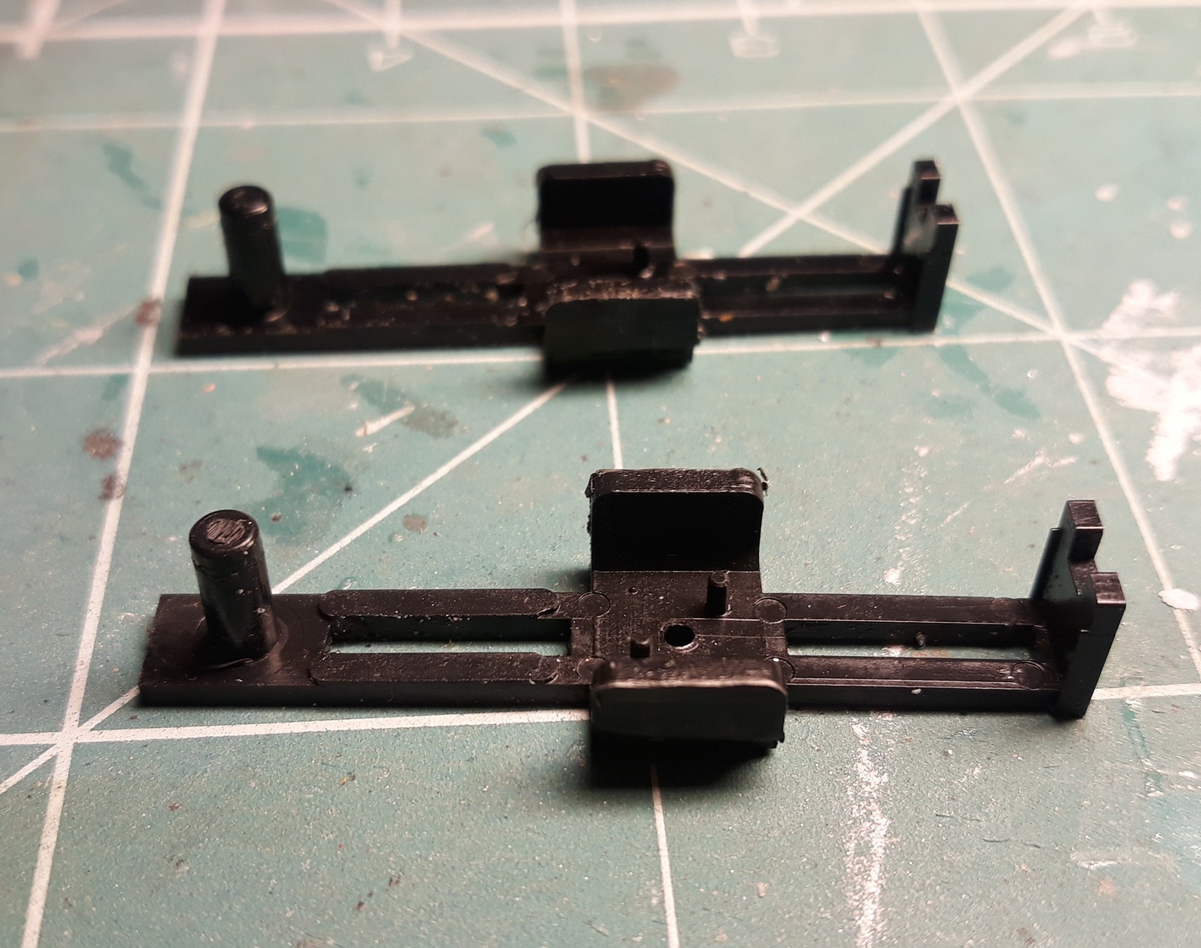 Боковины тележек надо значительно подпиливать: сточить заднюю внутреннюю часть, срезать места под колёса, срезать крепления передней части.