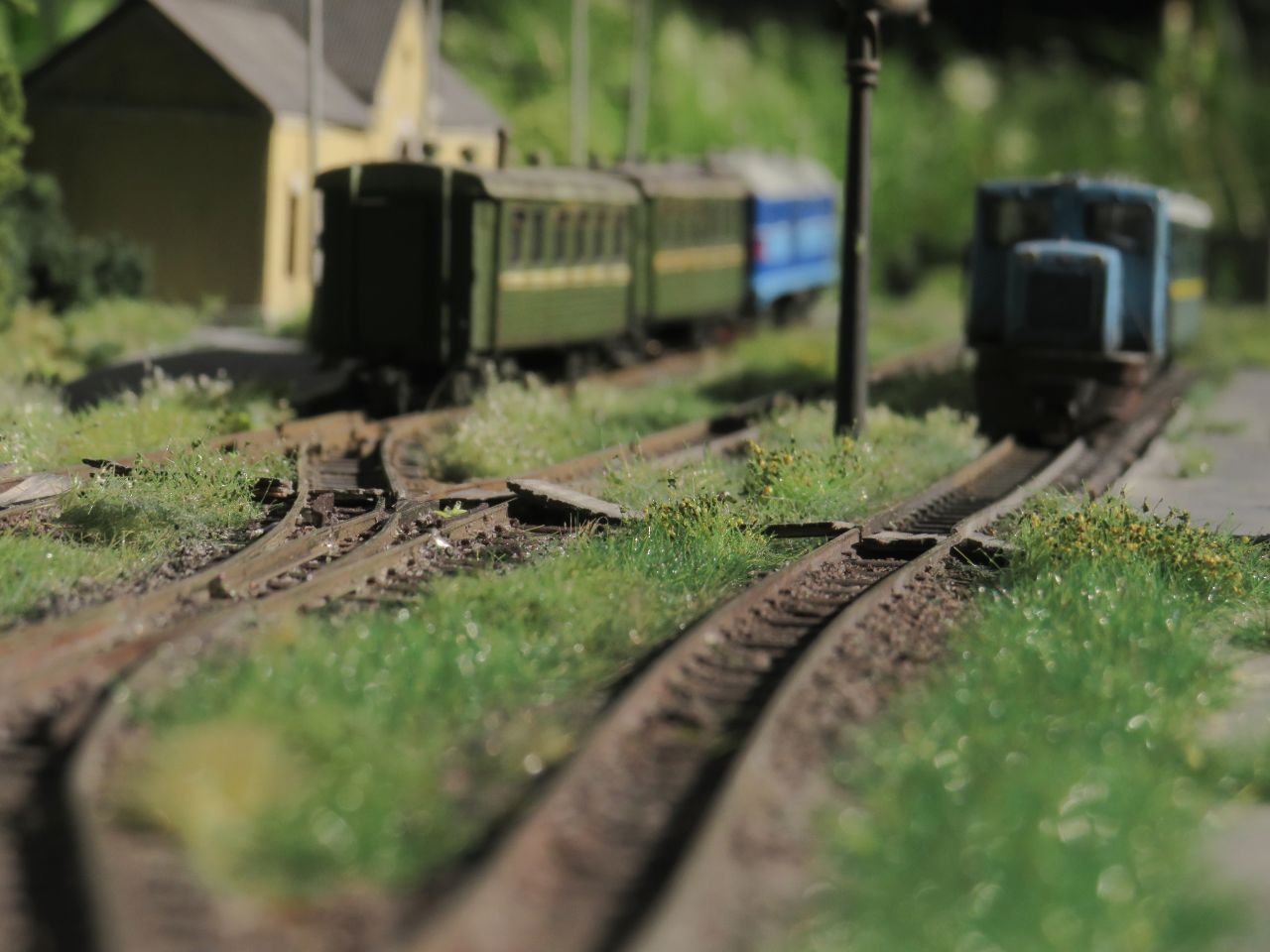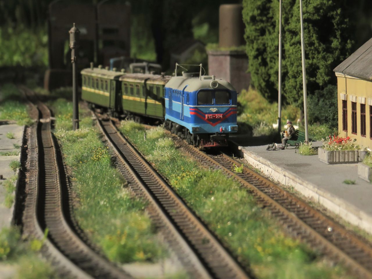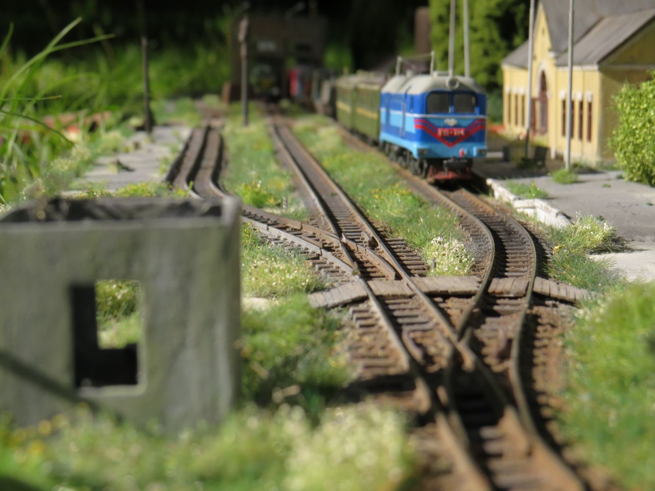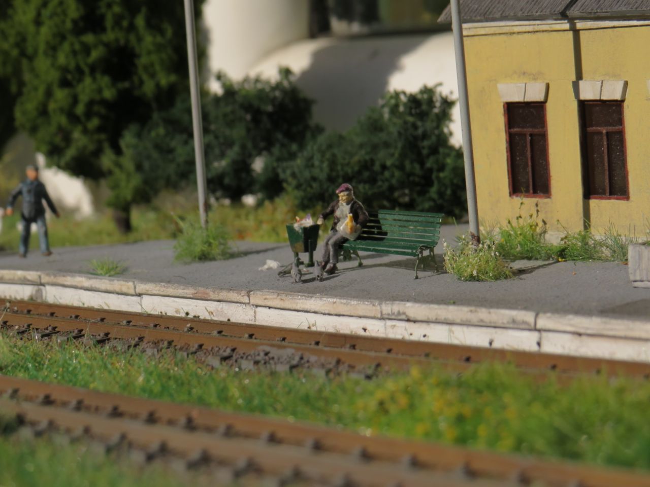 Большая часть мелочёвки - столбы с проводами, столб с громкоговорителем, деревянные лавки, урны, мусор, шпалы, предельные столбики и т.п. тоже сделана вручную.