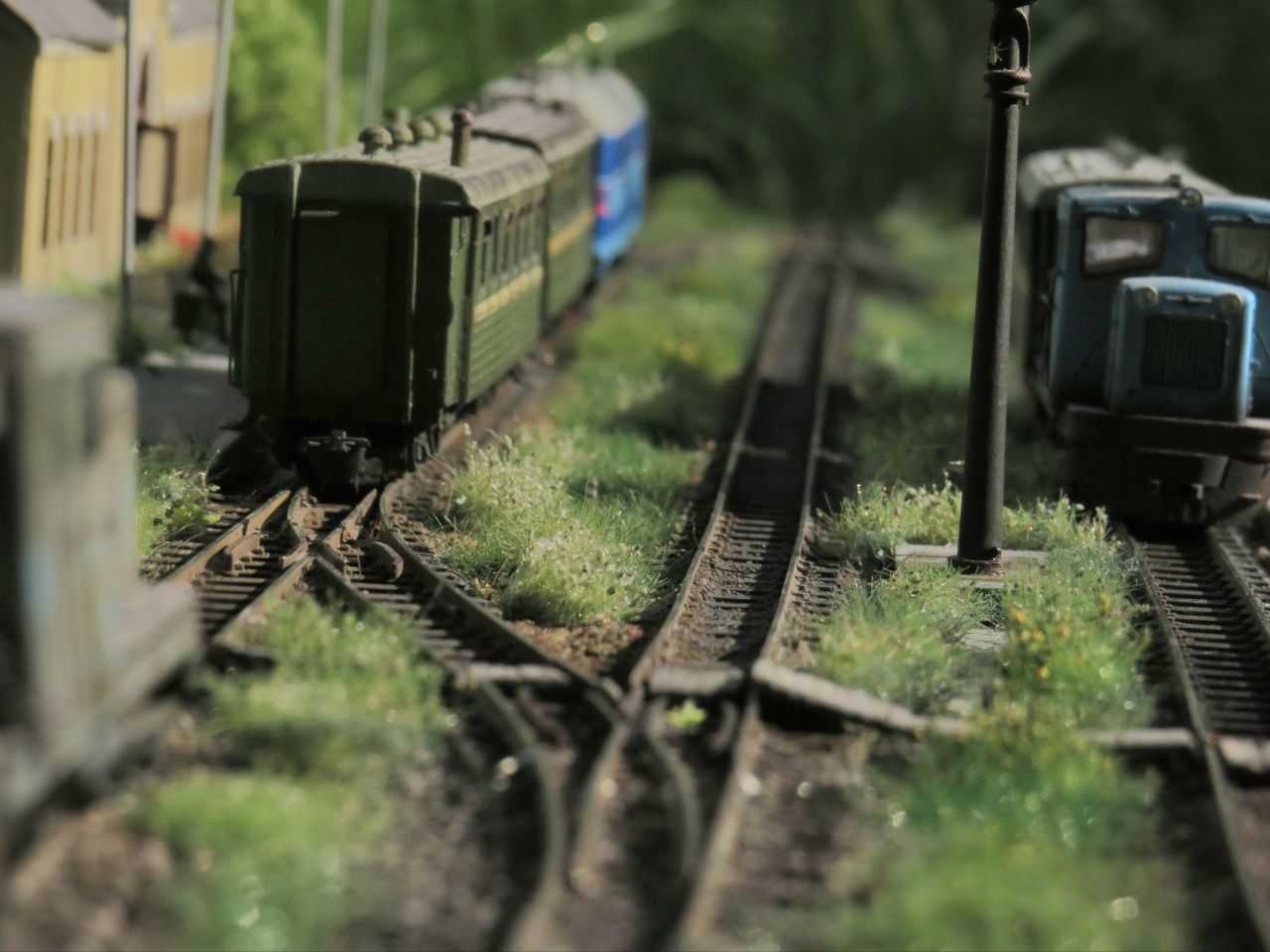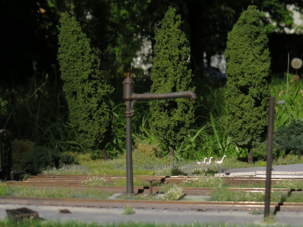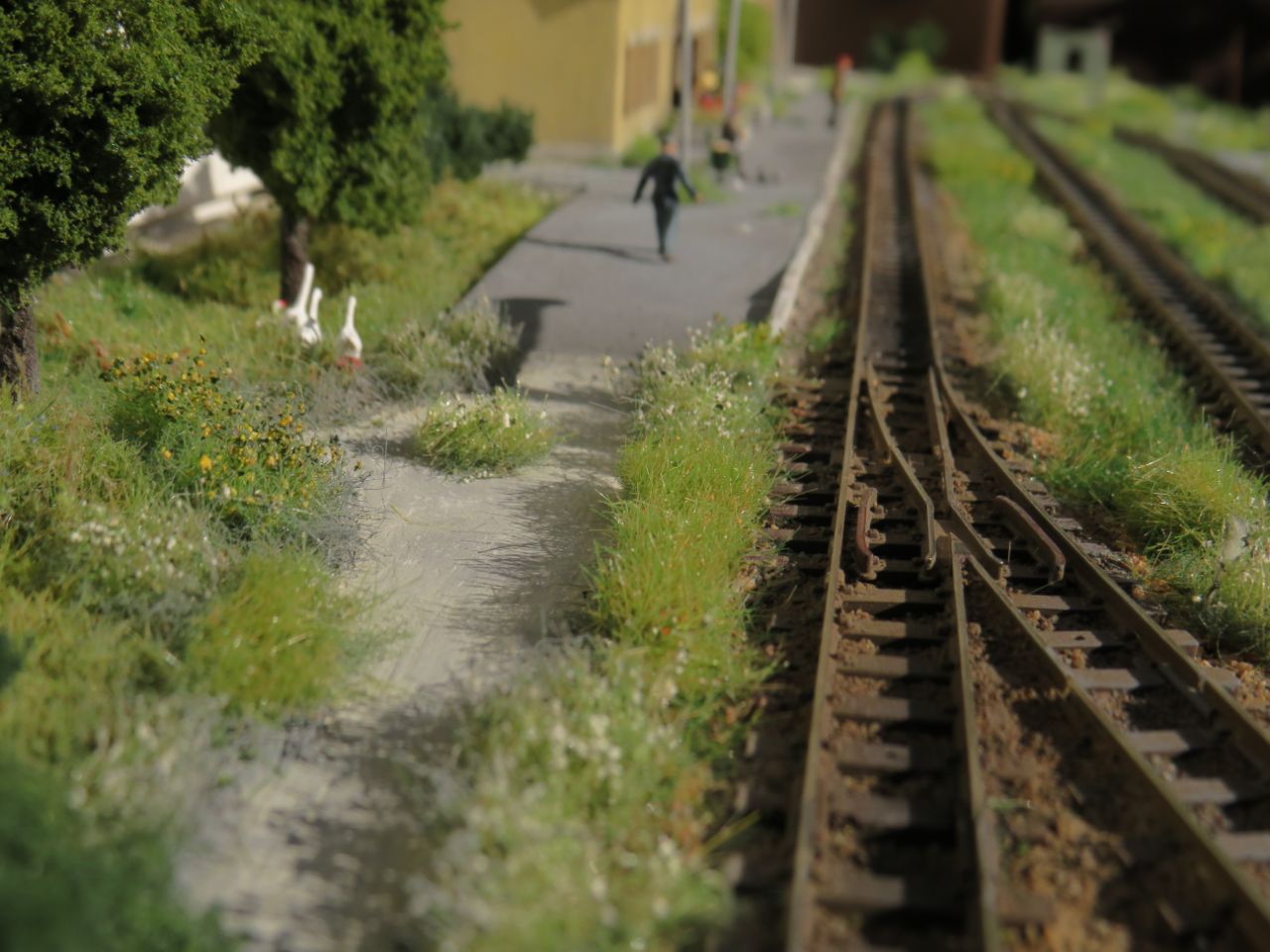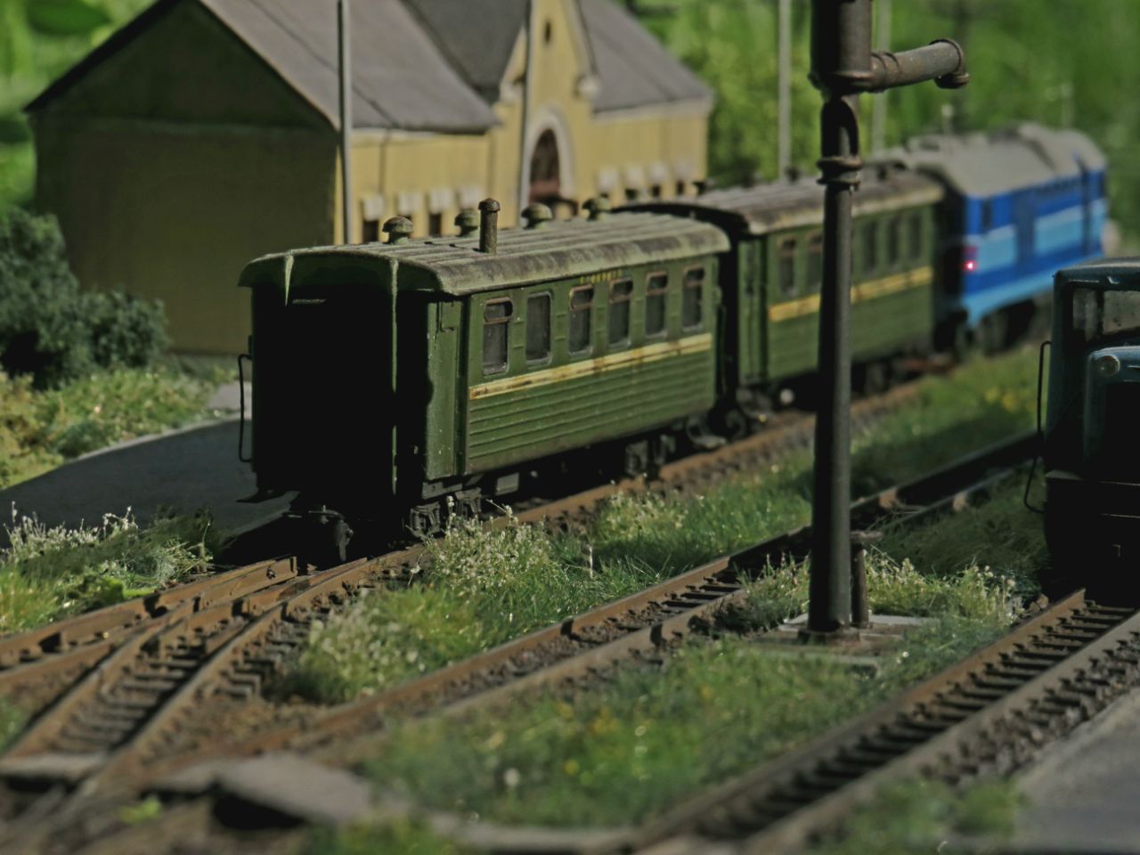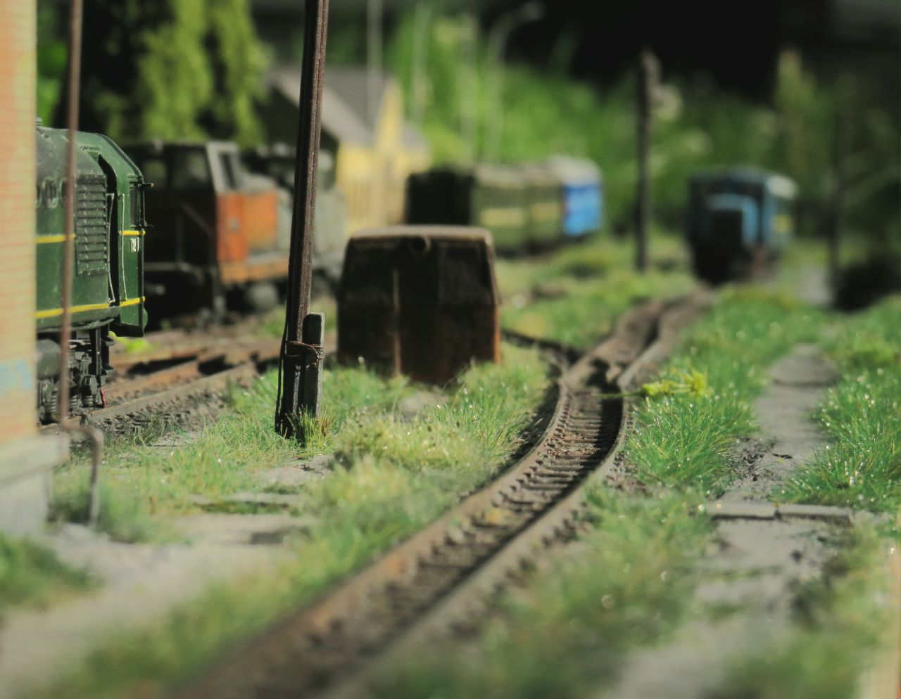 Большая часть мелочёвки - столбы с проводами, столб с громкоговорителем, деревянные лавки, урны, мусор, шпалы, предельные столбики и т.п. тоже сделана вручную.