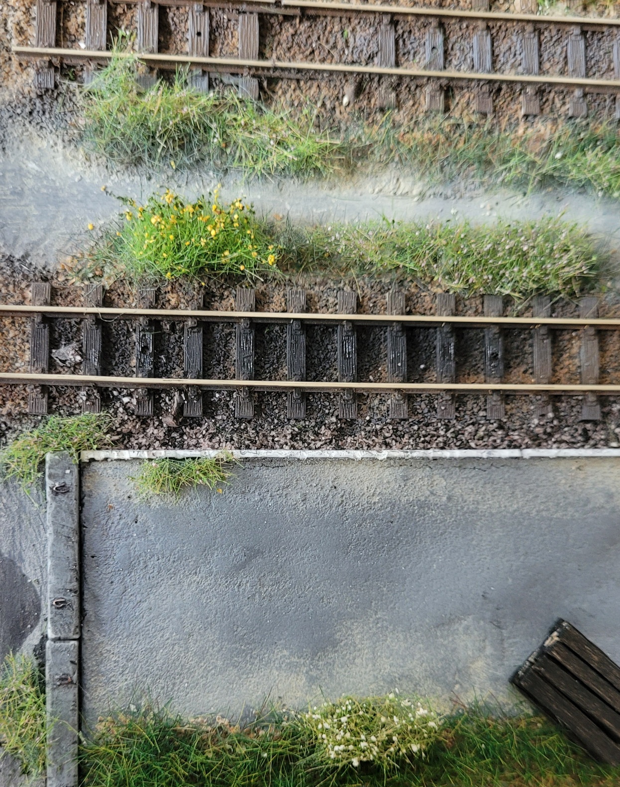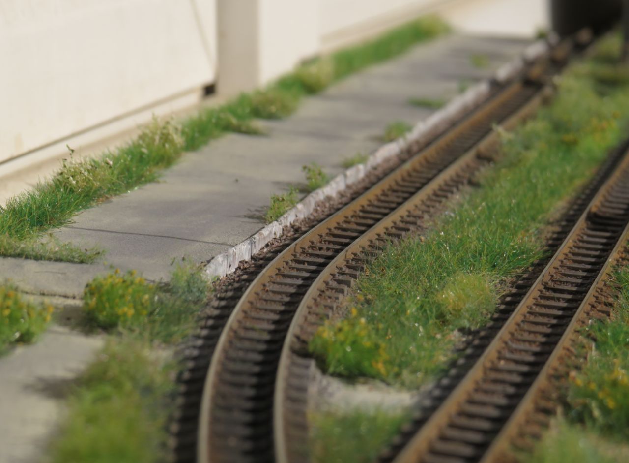 Второй перрон: попроще, чем главный, и подзаросший. На нём пока ничего нет, пытаюсь придумать, что бы такого разместить, чтобы не было скучно: