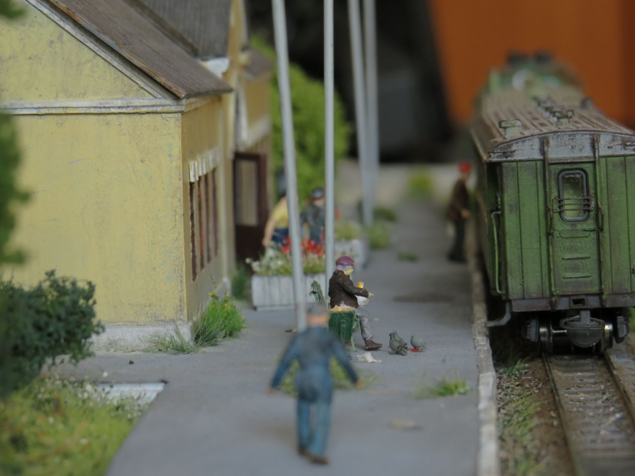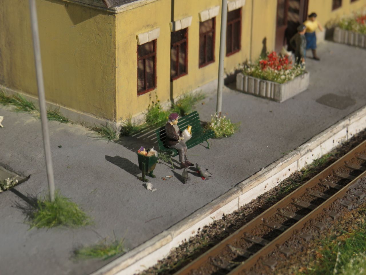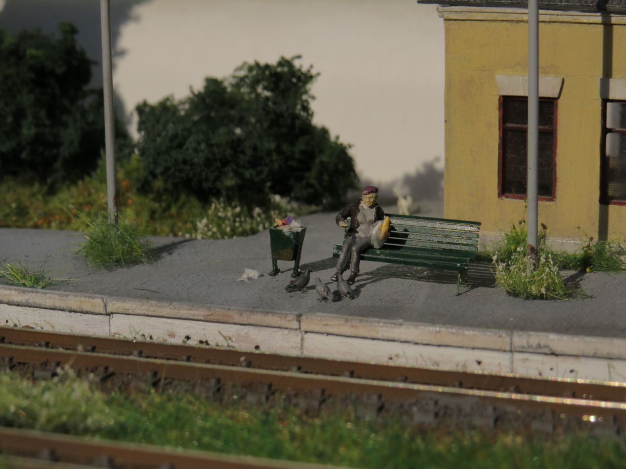 [ Сценки на модуле все временные, фигурки не закреплены - макет должен жить и меняться. Все фигурки окрашены вручную, бабка-голубятница ещё дополнительно доработана (изменена поза). Фигурки ещё будут разные, надо только сесть и покрасить...