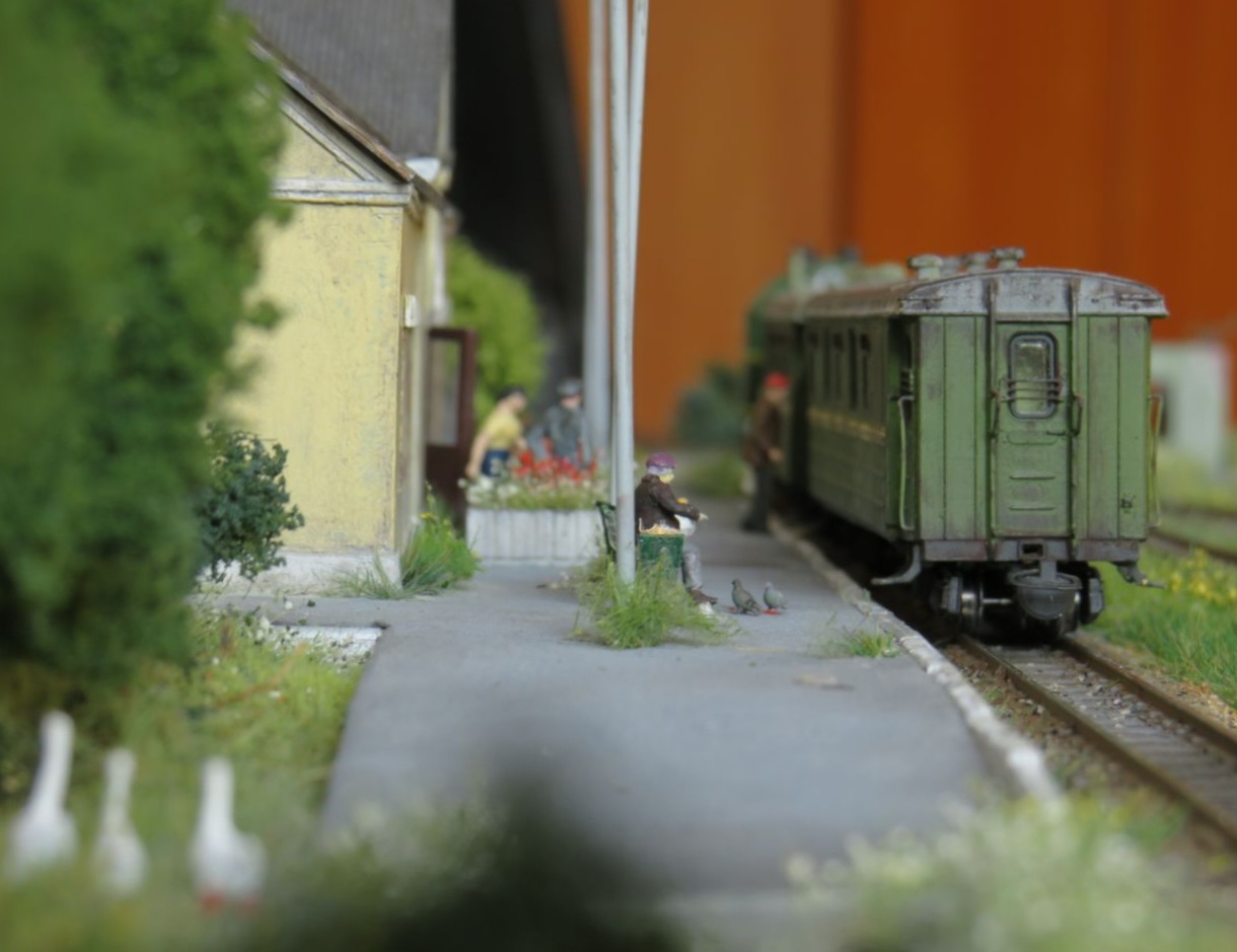 [ Сценки на модуле все временные, фигурки не закреплены - макет должен жить и меняться. Все фигурки окрашены вручную, бабка-голубятница ещё дополнительно доработана (изменена поза). Фигурки ещё будут разные, надо только сесть и покрасить...