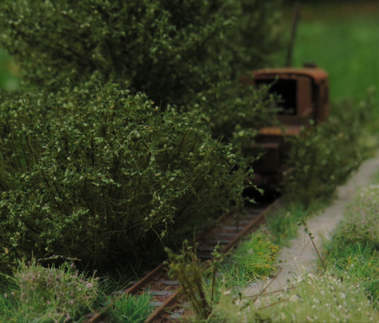 Тупик основательно зарос, однако, как видно, любители ж.д. и местные алкаши протоптали дорожку к раритету.