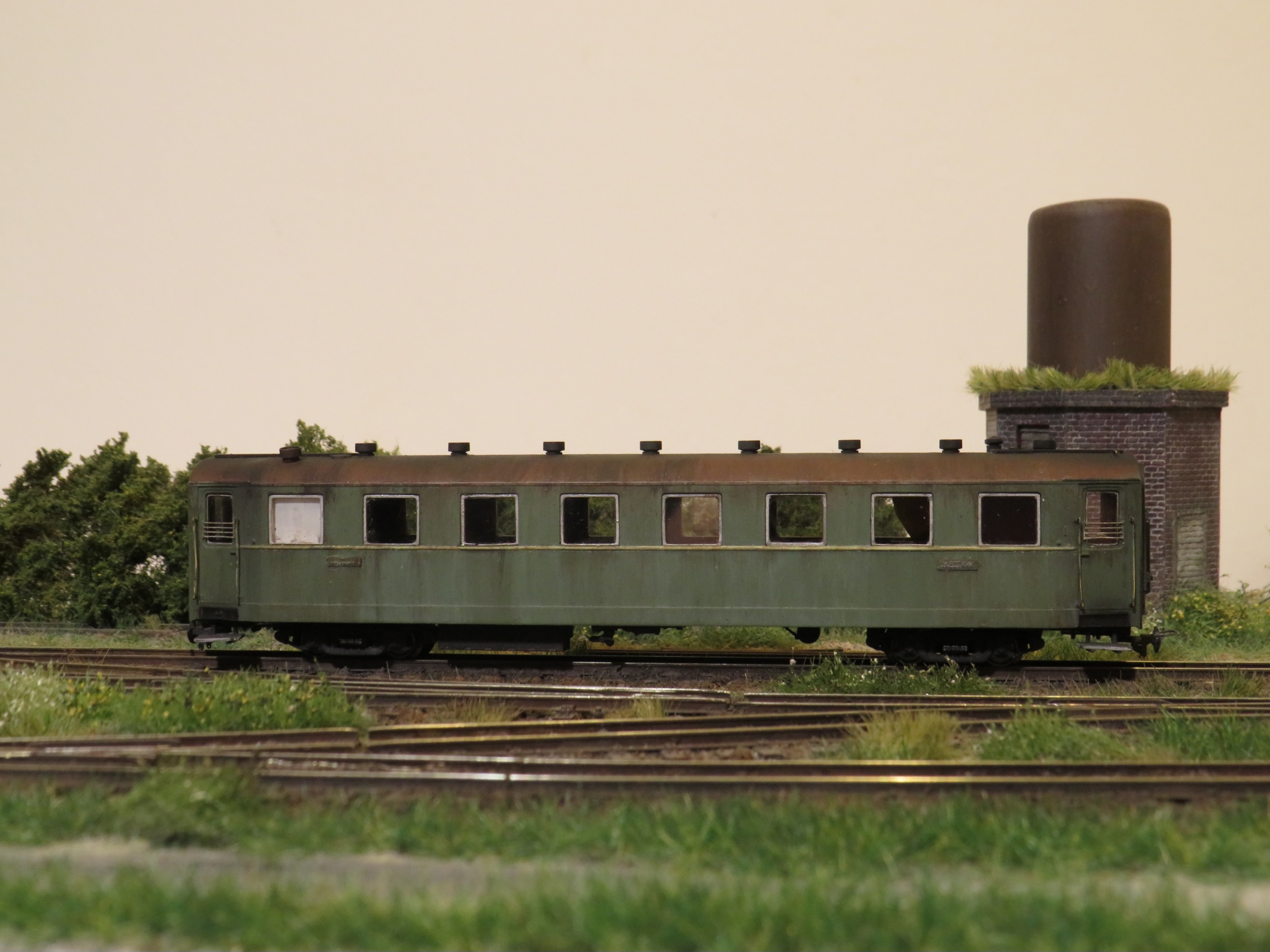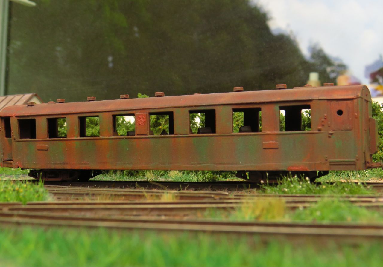 Ниже - фото того, что получилось. Узкоколейная классика: вагон Pafawag 3Aw в классической окраске, 60-е годы, не-МПС-овская узкоколейка.