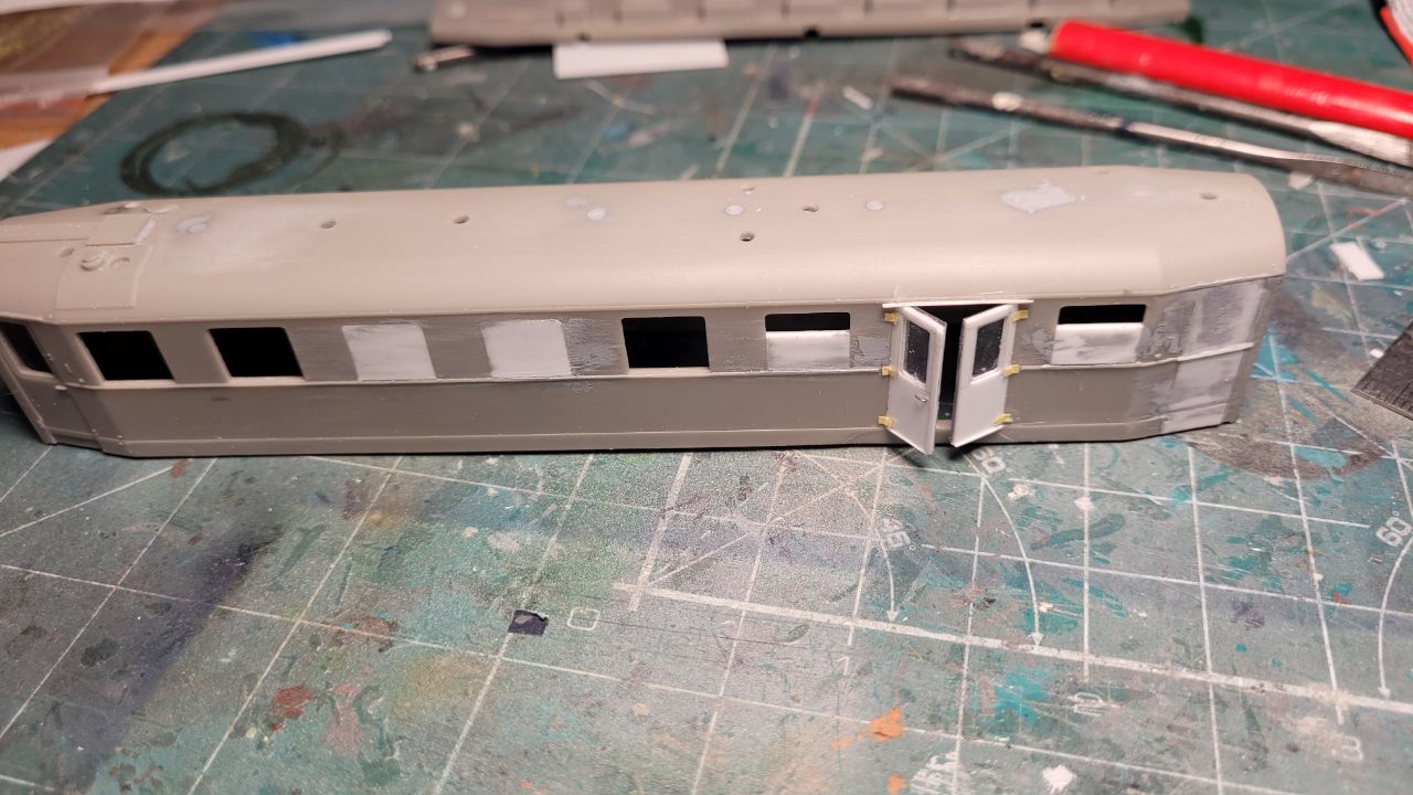 Крышу вагона нужно было сперва грунтовать, потом красить серебрянкой и только потом красить в желаемый цвет - иначе просвечивает.