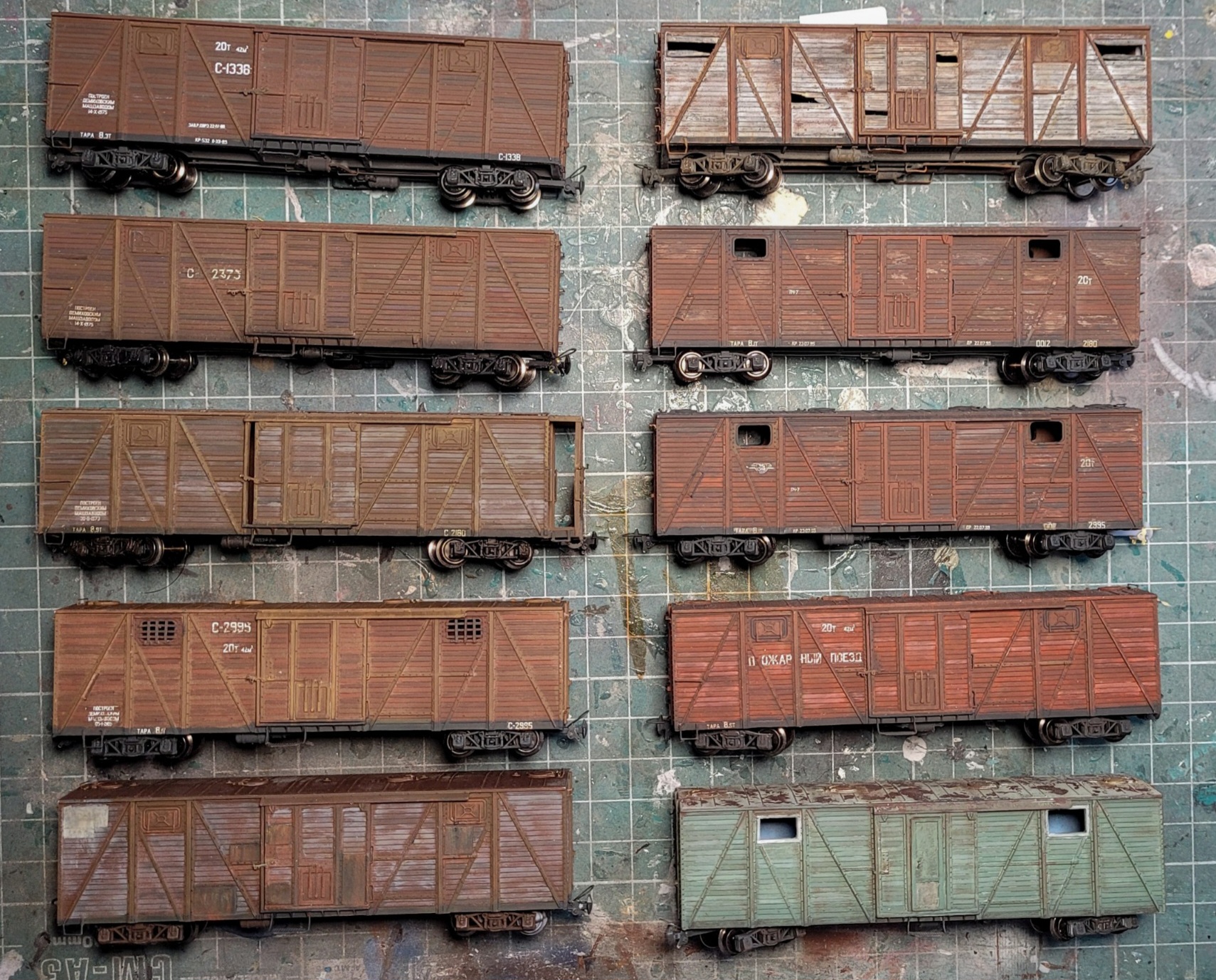 А крытых вагонов ДМЗ я собрал 10 штук: Вагон легко собирается, у меня в общей сложности уходило 5-6 часов на полную сборку: от зачистки до декалей.
