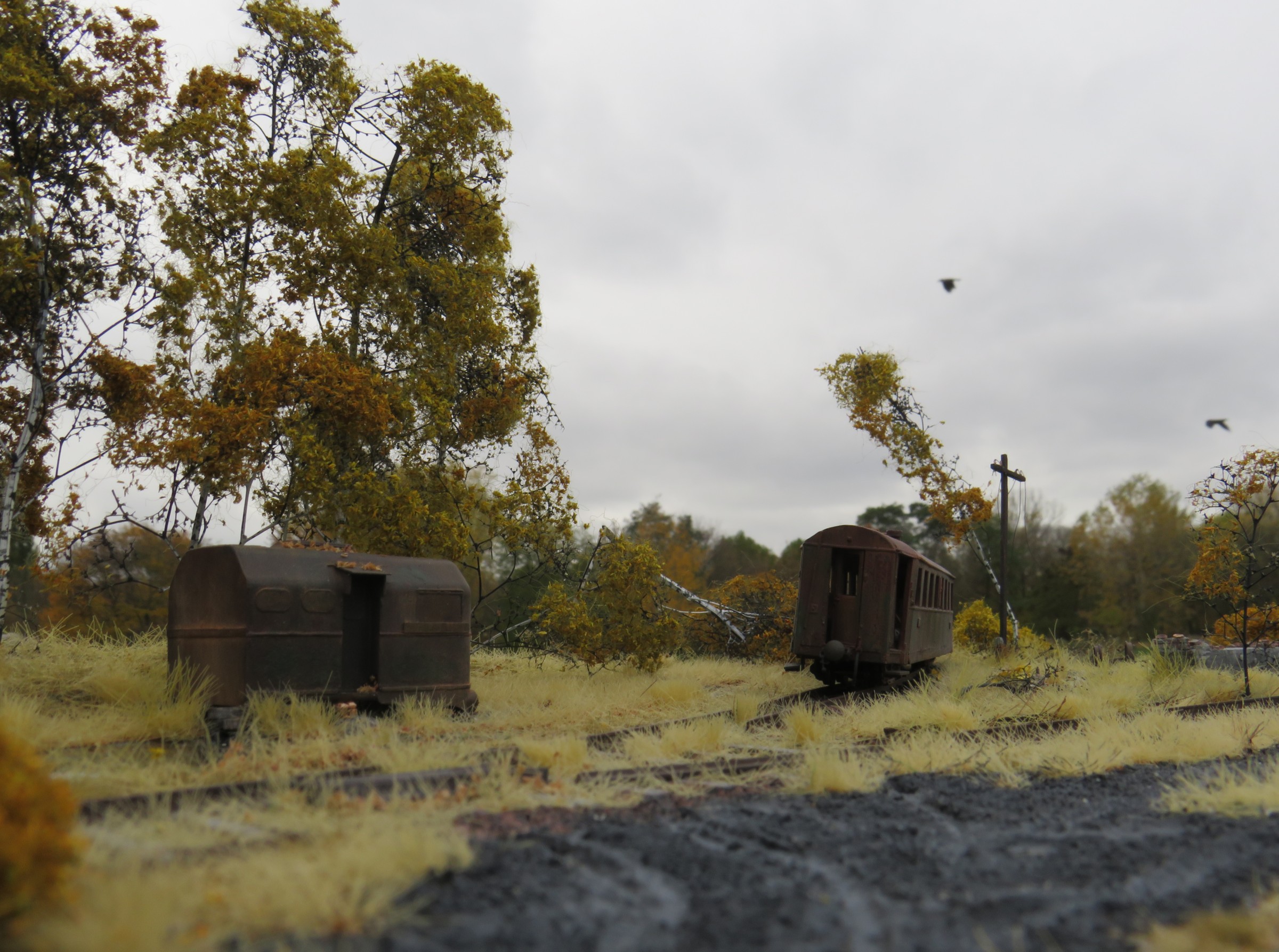 Диорама представляет фрагмент заброшенной узкоколейки.