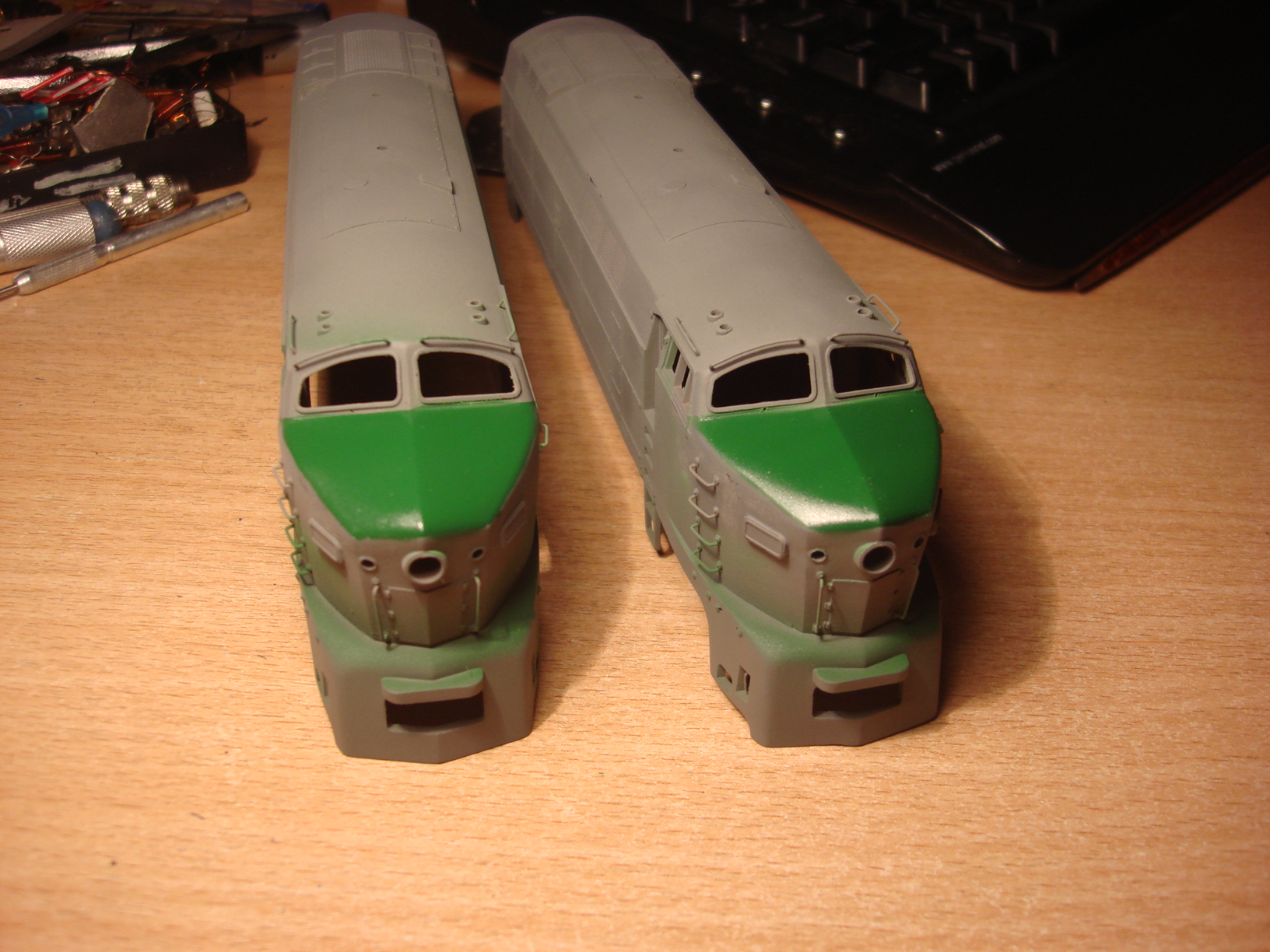 Едем дальше... На очереди Baldwin RF-16 'Sharknose'. Покупал такого зверя под донора для ходовки ВЛ10. Хотя ходовые качества этого девайса очень хорошие, рука не поднялась убить ее под Вольдемара. Вольдемар перетопчится, потом получит новую ходовую с нуля. Теперь дадим новую жизнь локомотиву, уж очень это "Шарко" колоритный на мой взгляд. Первоначальный окрас был дороги -SantaFe- в красном варианте, но после линьки родных деколей и косяков покраски ( Роко блин ), решился на перекрас. :arrow: