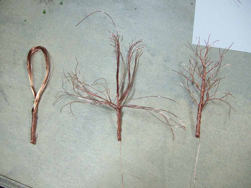 Обычная проволока на катушке с базара 0,3-0,35мм намотанная на руку в количестве 25-35 витков в зависимости от планируемого дерева.