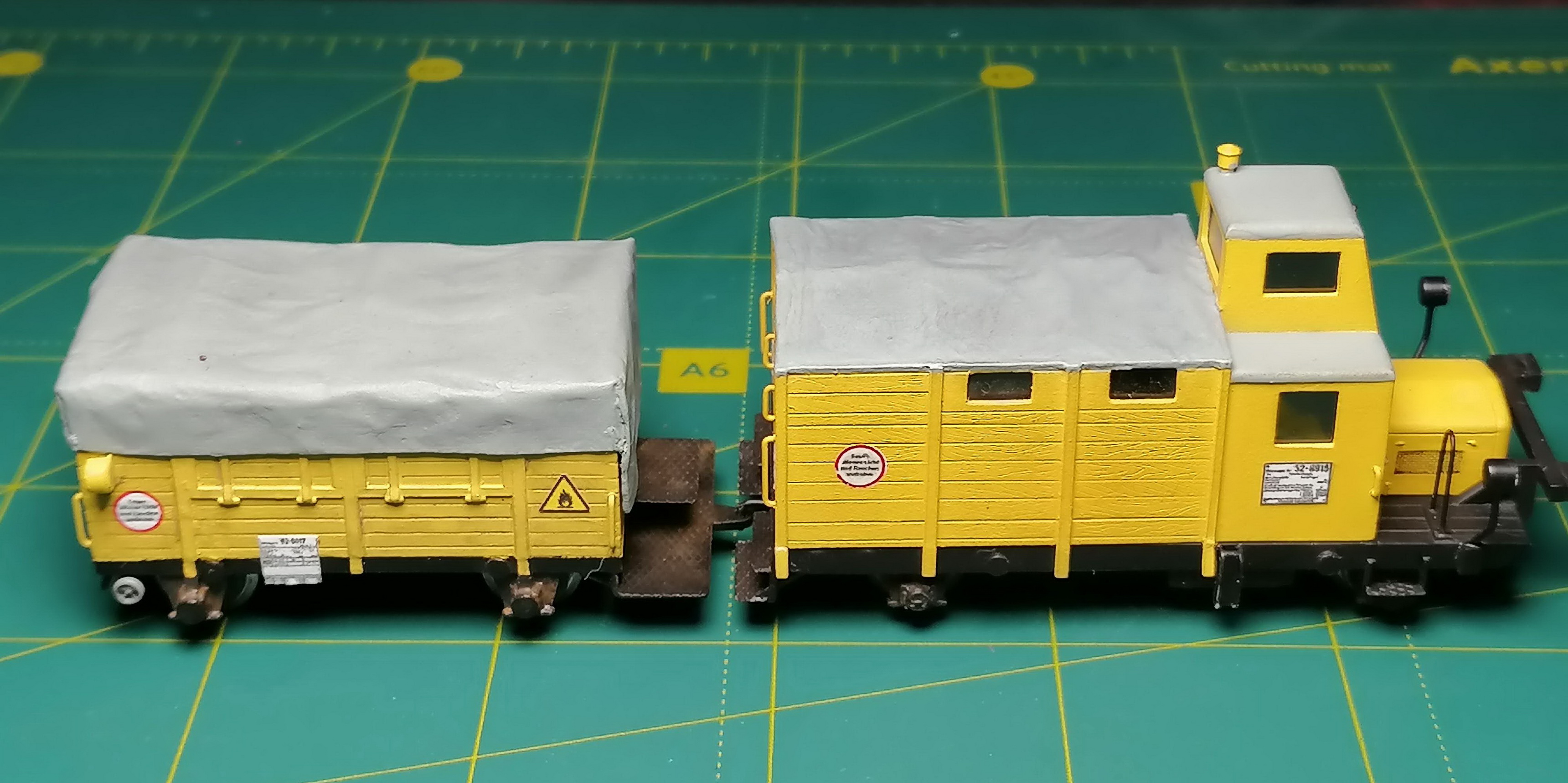 На фото обычно Klv52 используется в сцепе с вагончиком Kla 02. Долго стояла заготовка в виде корпуса без колес, тента и подножек на полке, пока не дошли до неё руки. Или муза прилетела. В общем, доделал его. Почему то не сохранилось старых фото заготовки. Ну да ладно.