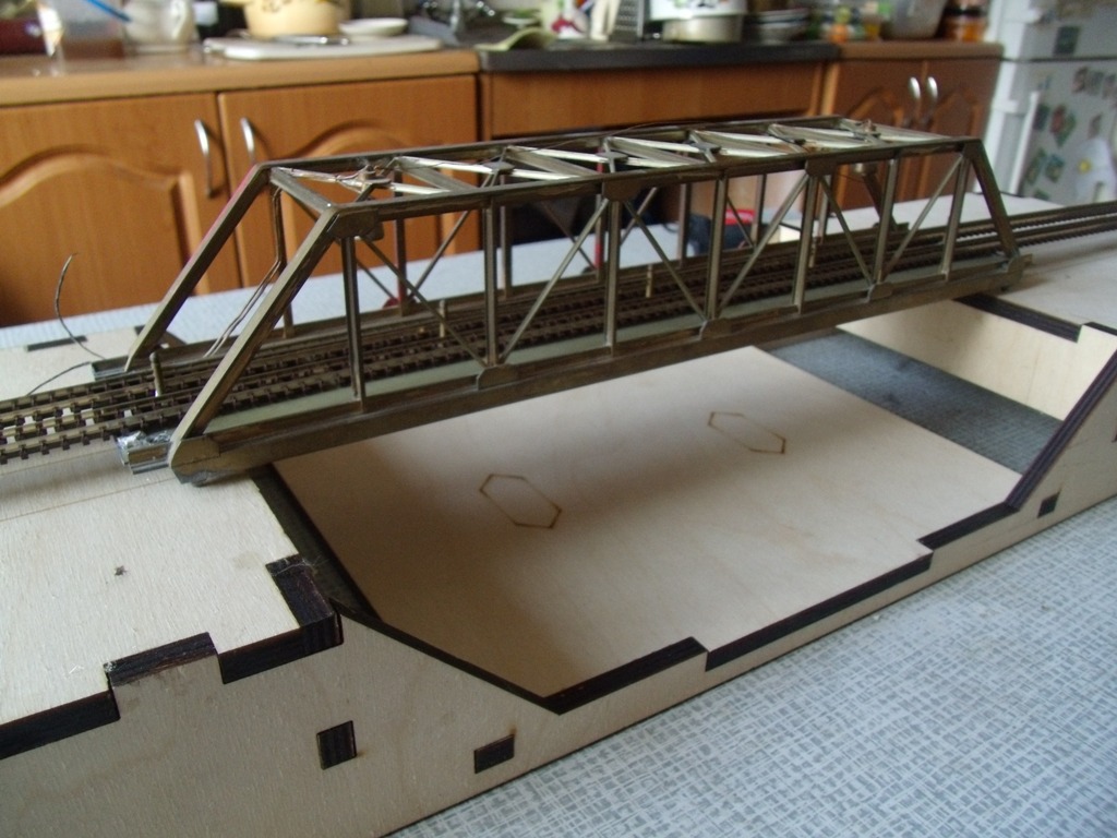 Для совсем железнодорожности ему нужно бы заменить «палубу» на ферменную конструкцию. Хотя, если уложить мостовые брусья, которые потом закрыть настилом, то будет малозаметно, что «пол» сплошной.