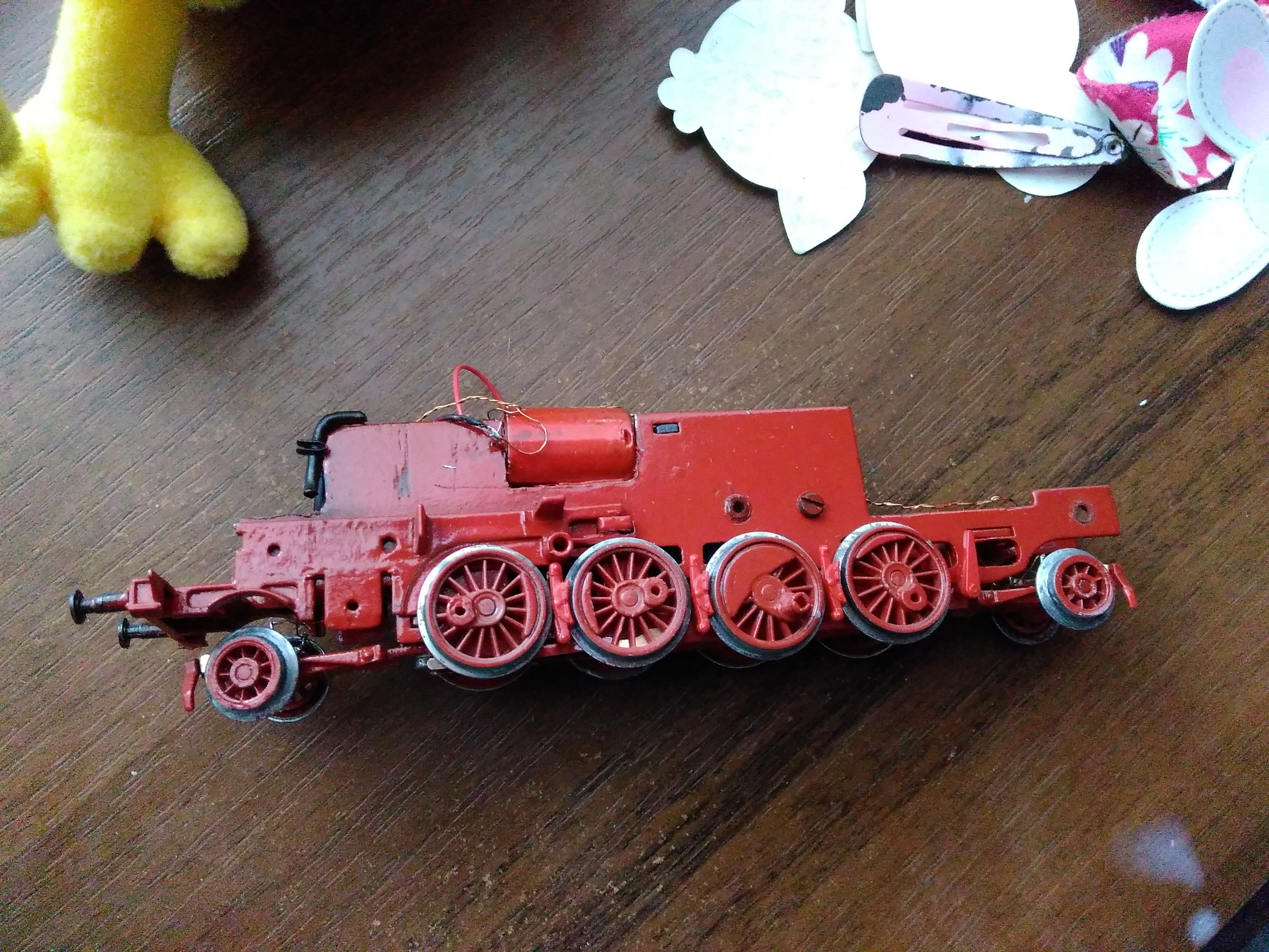 Да мотор впихнул, привод на последние две колпару, тк. вторая , а точней шестерня повреждена, проскакивает. Сделал токосьем с 1-2 пары и бегунков. Сказывается нехватка маховика и повреждения от ржавчины на колесах. Также присутствует нехватка веса, колеса буксуют. Счас думаю как утяжелить, особенно зад. Сцепки влеплю в балки, без железок, портящих весь вид.