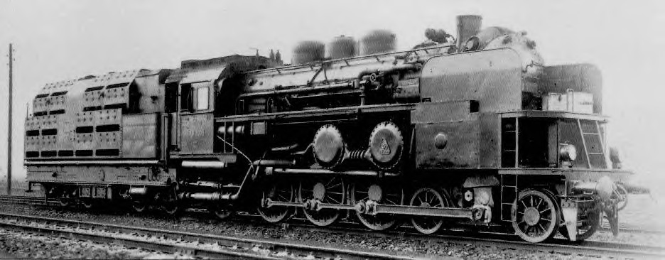 больше всего он мне напоминает американский триплекс Erie, только без тендера, то есть вместе с тендером будет такая осевая формула 1-4-4-4-1 (или по европейски (1D)D(D1)) и морда как у американских