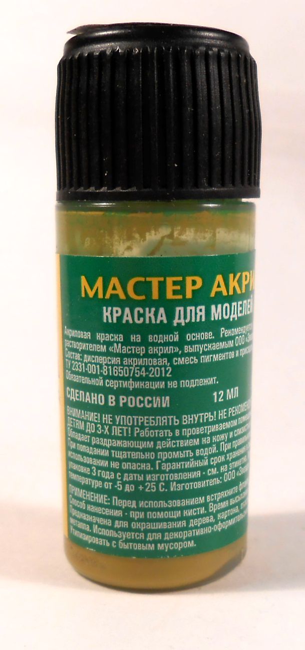 И кстати, краска от фирмы Звезда с чёрной крышкой, есть не что иное, как разлив краски Vallejo в свои бутыльки. А стоит в два раза дешевле чем Vallejo.