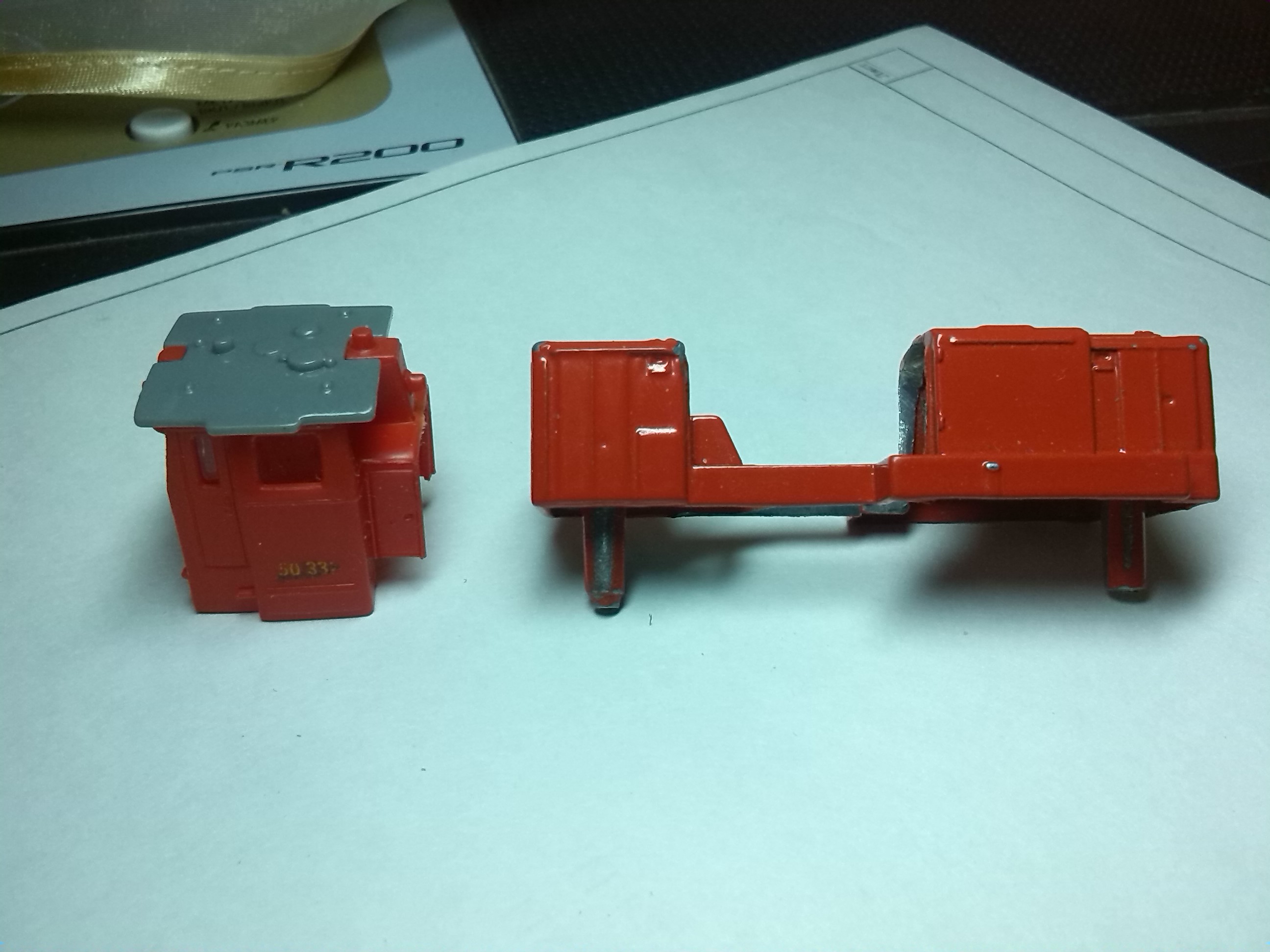 Свет тоже не делал,так как у тепловоза фары расположены на раме и туда ничего не вставить. Можно попробовать сделать верхнюю фару. Также можно детализировать крышу. Но пока эти не занимался.