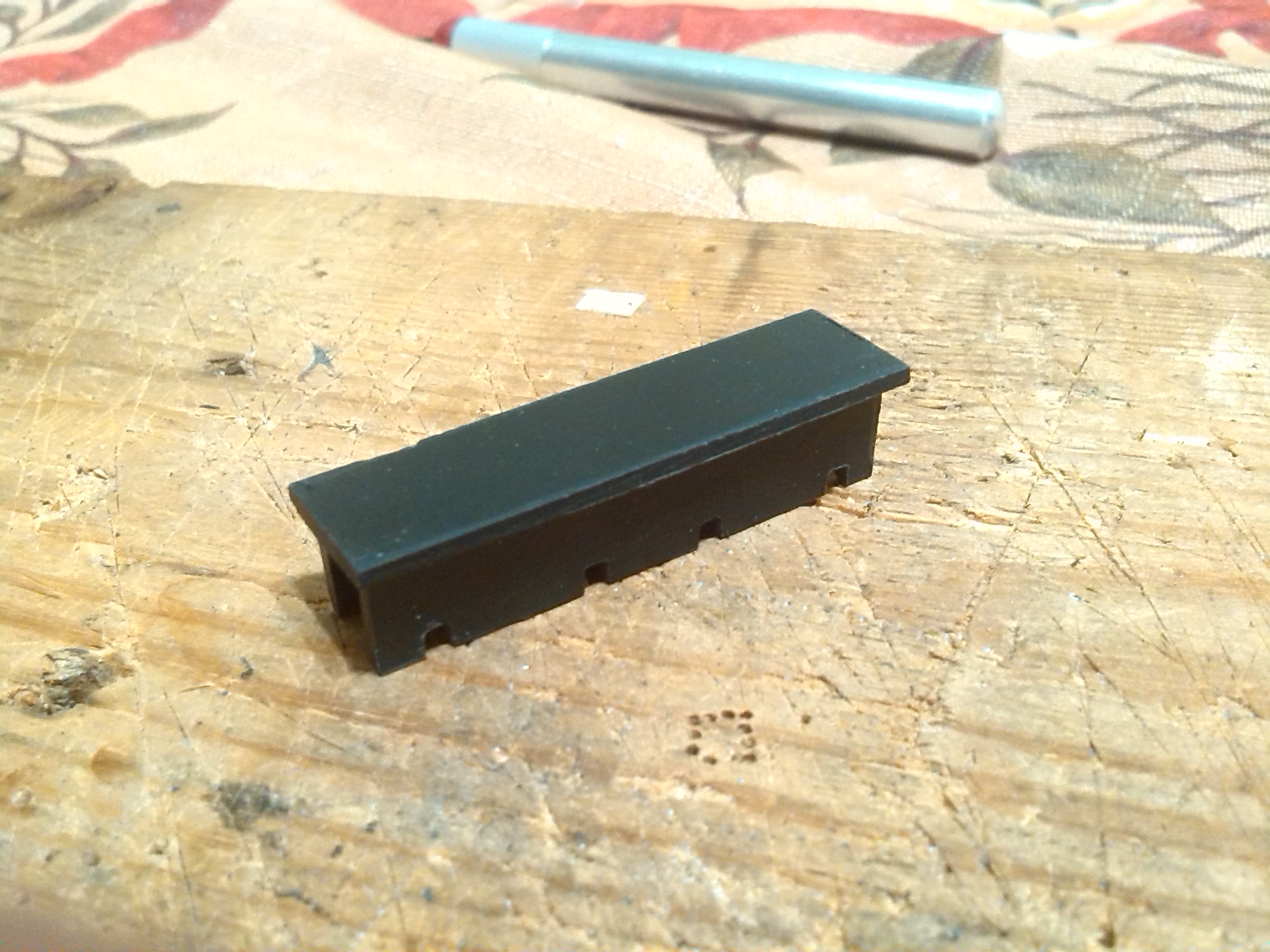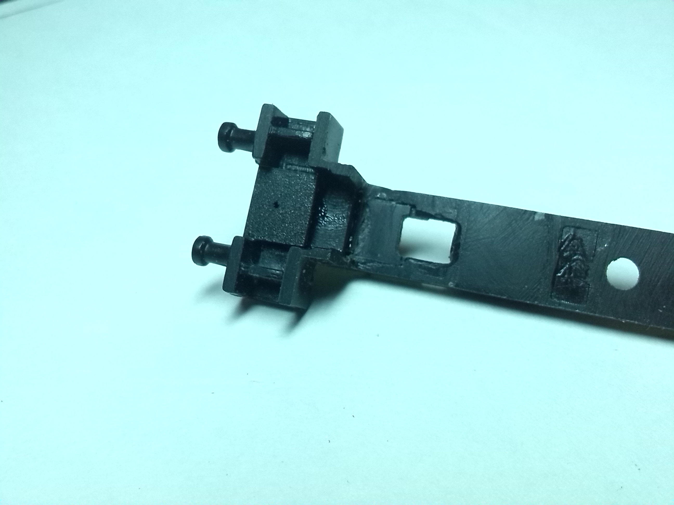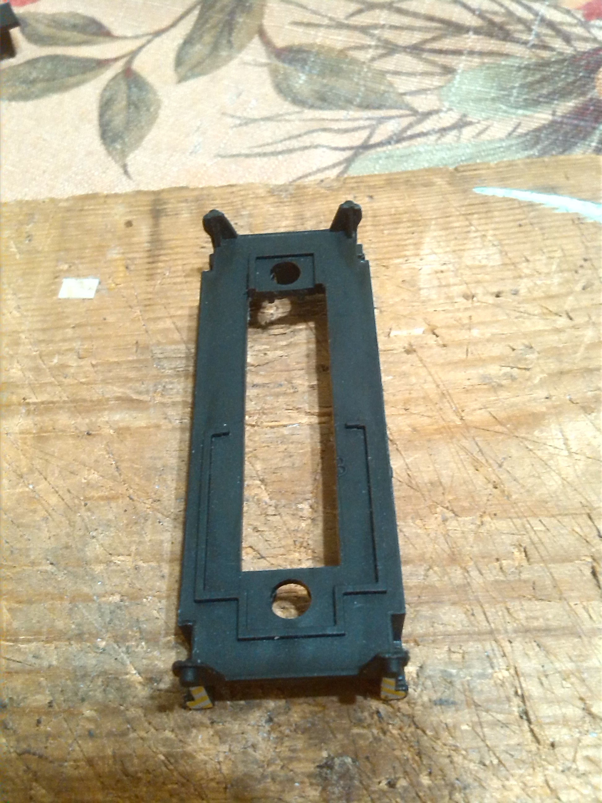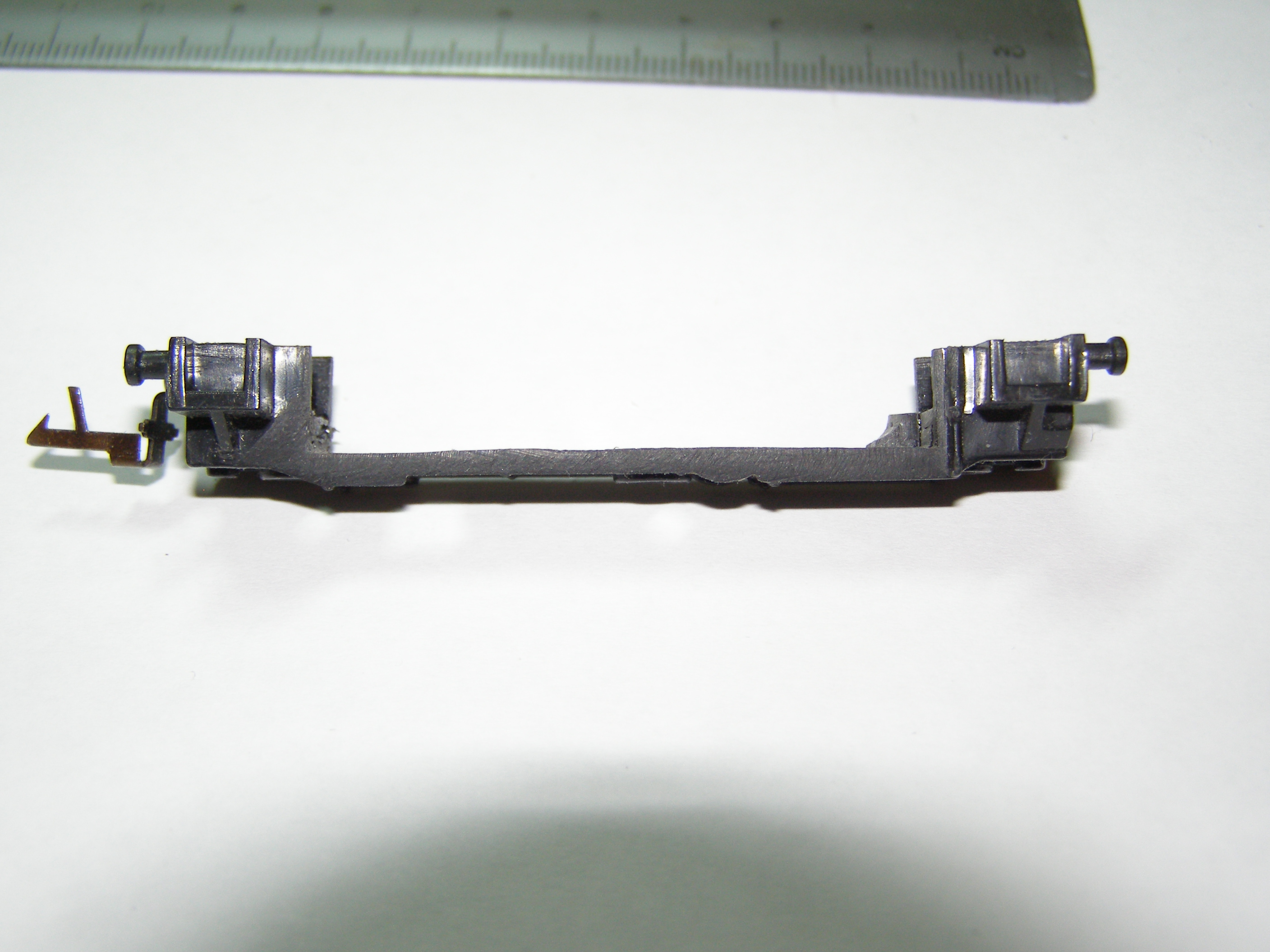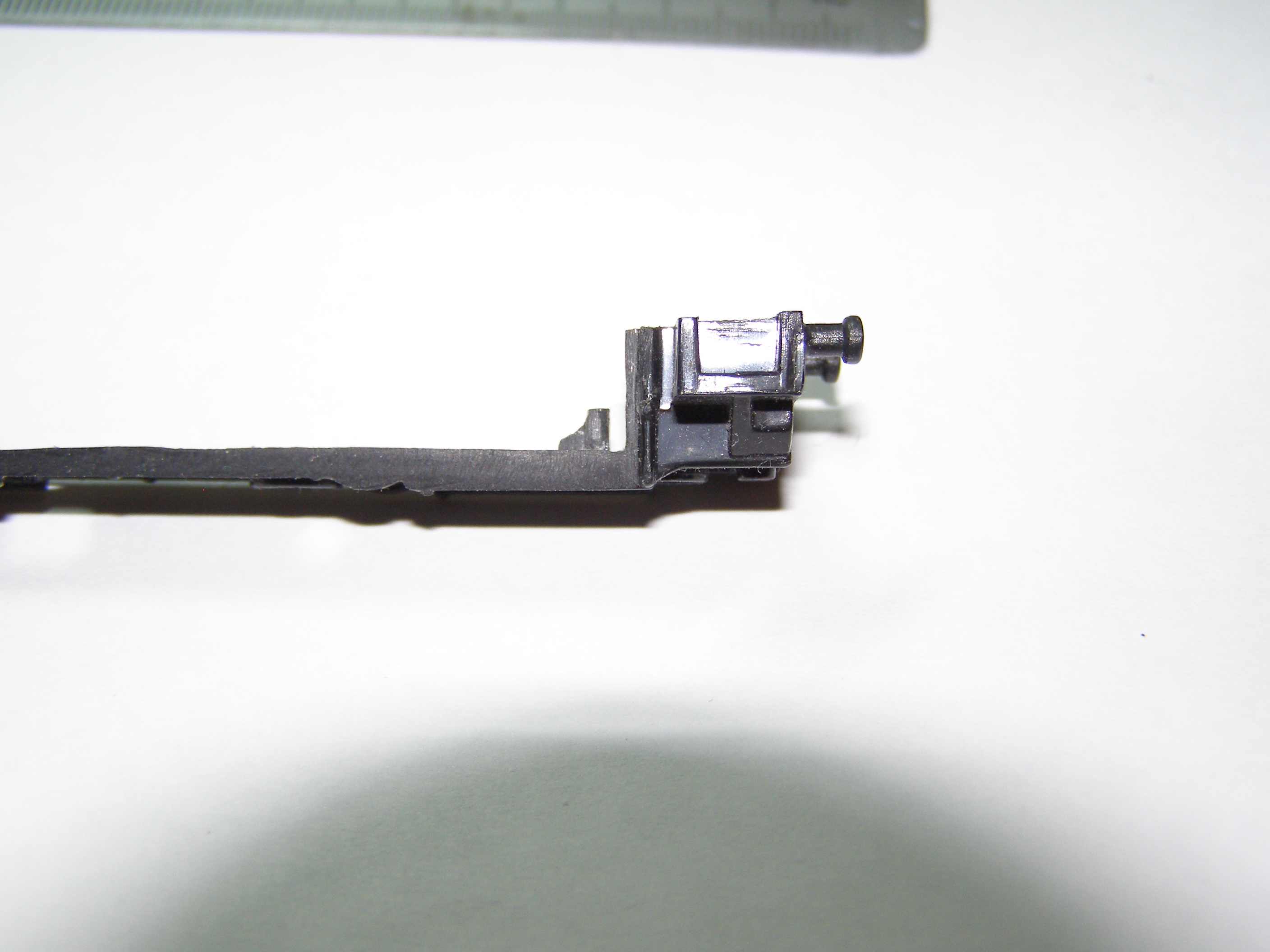 Из-за того, что рама локомотива сделана из поливинилхлорида, который дихлорэтаном ничем не клеется, пришлось в ней вырезать отверстие для установки тележки, на которой будет крепиться двигатель, редуктор, привод на колеса, контакты. Еще одна причина - сохранить текстуры рамы.