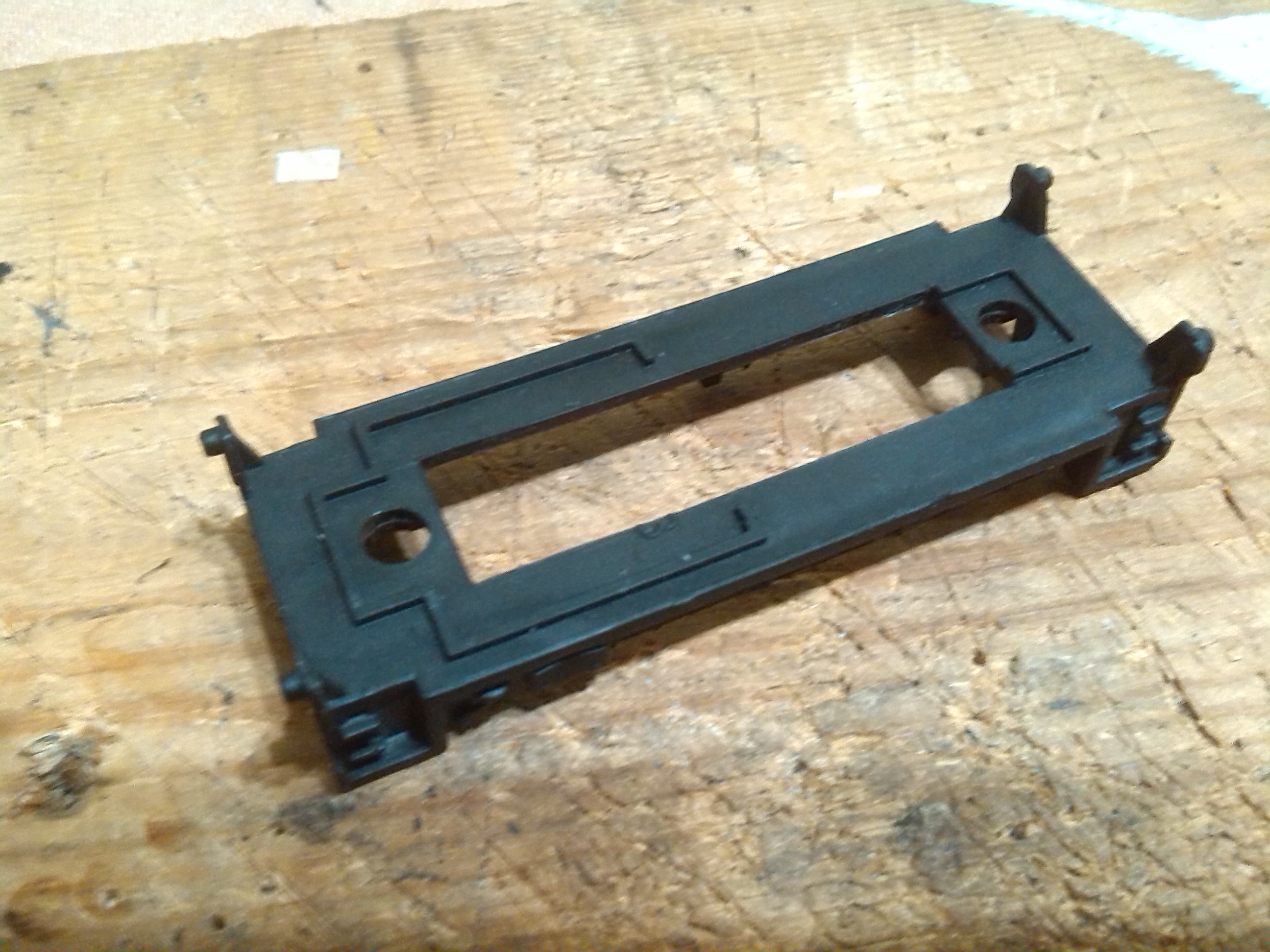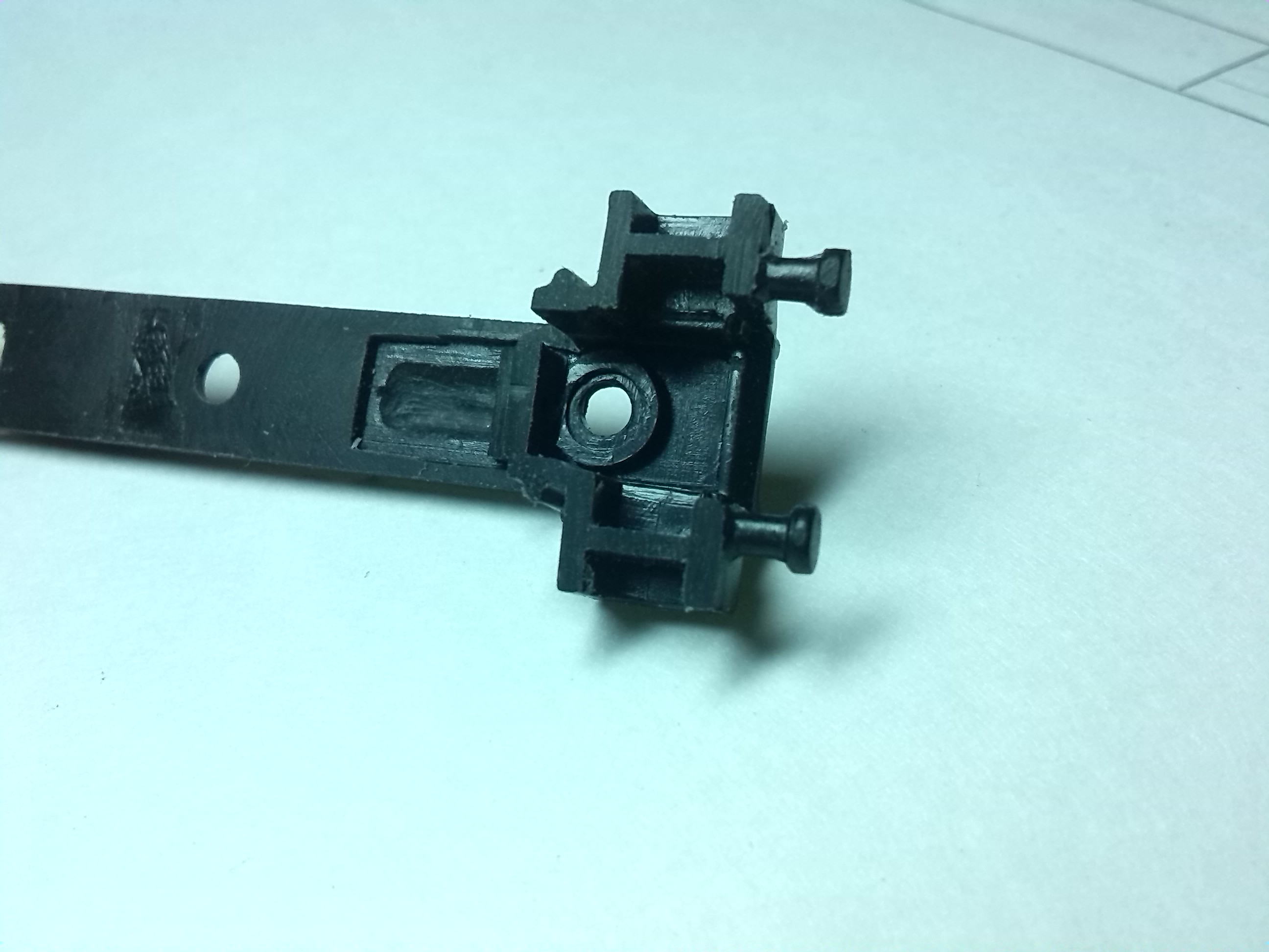 Разобрал его по частям: корпус был приклепан к раме, как и все подобные машинки. Заклепки высверлил, потом в этих стойках просверлил отверстия и нарезал резьбу под болт М2. Это для крепления всех частей.