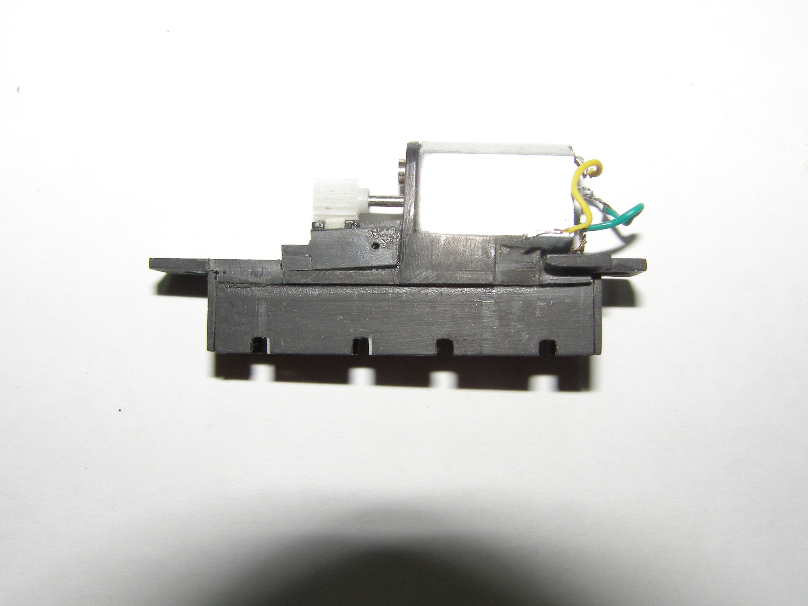 Забыл одну вещь: перед тем как надеть корпус надо проложить между мотором и контактами, где припаяны провода от мотора какой-нибудь изолятор,чтобы не замкнуло.