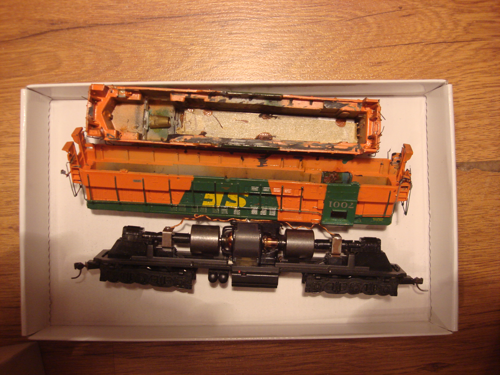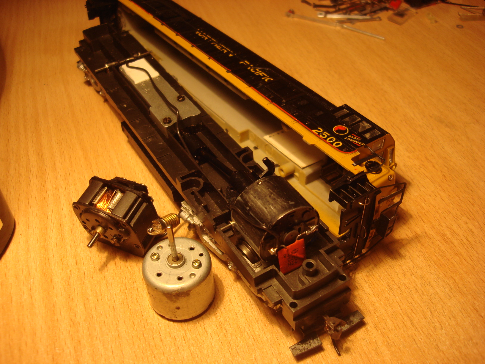 Rivarossi U25C - выполнил замену жутко громкого двига, установил маленькие глазки по краям капота, шлаги тд...