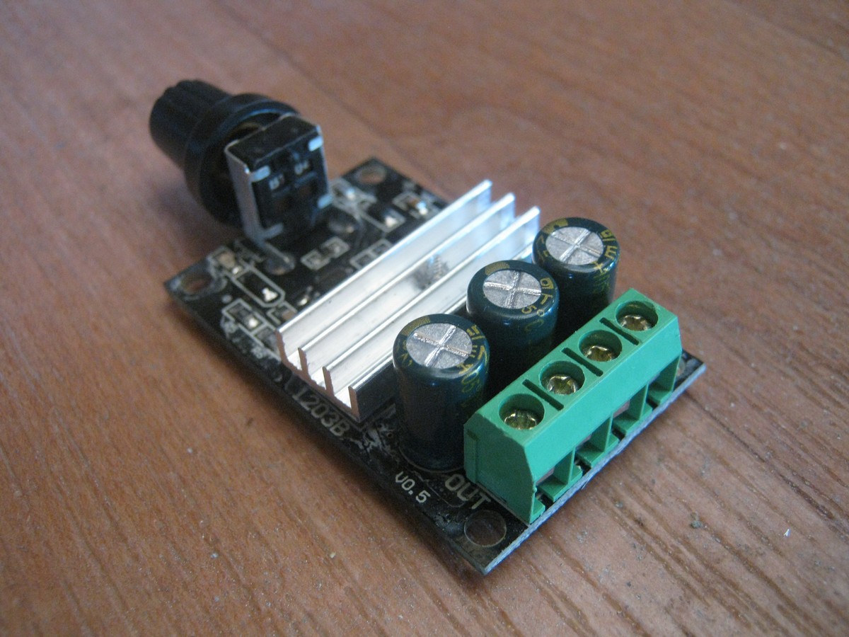 При выборе исходил из того, что 3А вполне соответствуют нашим потребностям, частота 22 кГц выходит за звуковой диапазон и не будет столь часто упоминаемого при обсуждения ШИМ свиста. Скважность 0-100% обеспечивает полную регулировку от стопа до максимального хода. Следует заметить, что есть аналогичные устройства со скважностью, например, 20-95% и проч. Для наших потребностей они не подходят.
