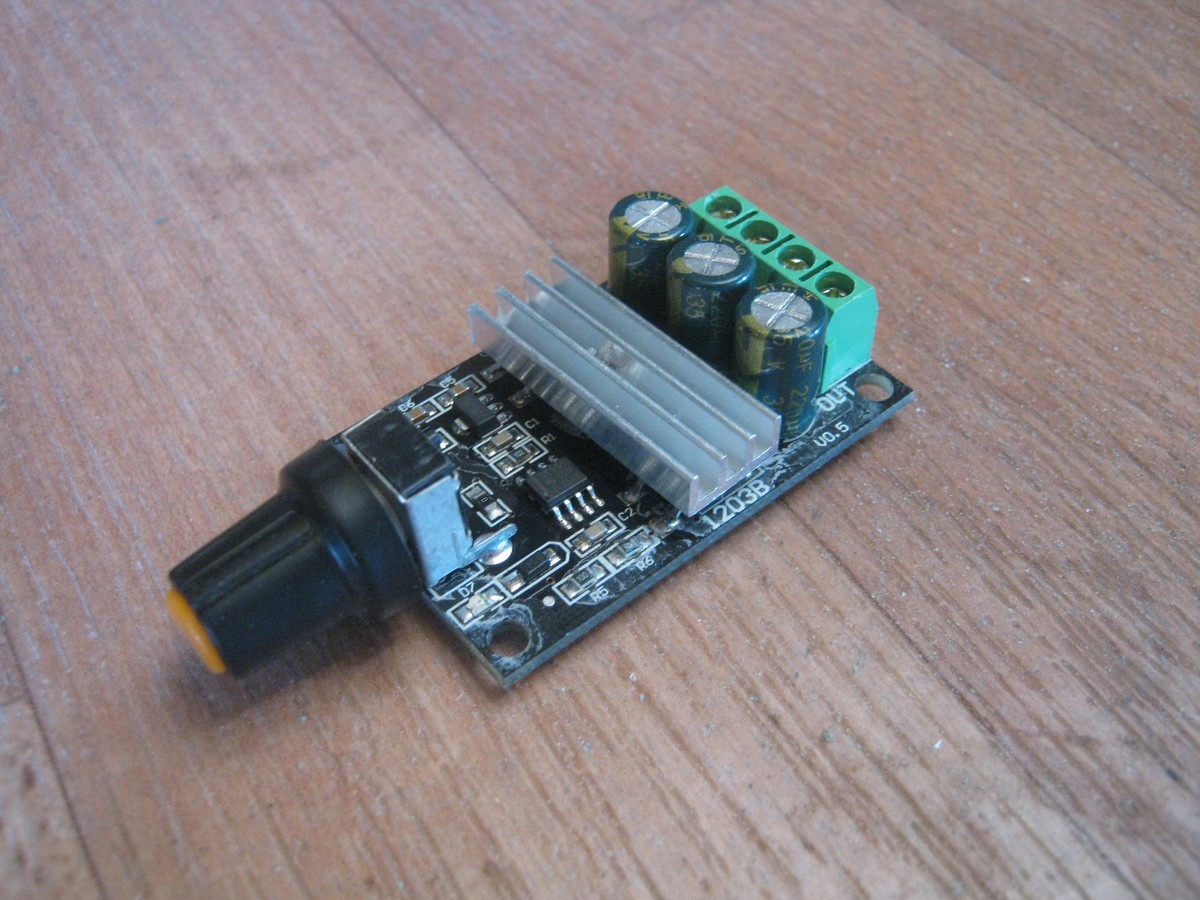 При выборе исходил из того, что 3А вполне соответствуют нашим потребностям, частота 22 кГц выходит за звуковой диапазон и не будет столь часто упоминаемого при обсуждения ШИМ свиста. Скважность 0-100% обеспечивает полную регулировку от стопа до максимального хода. Следует заметить, что есть аналогичные устройства со скважностью, например, 20-95% и проч. Для наших потребностей они не подходят.